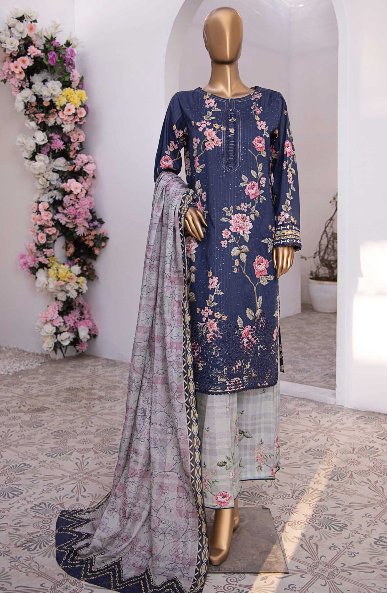 Home Nayab by HZ Textile Embroidered Lawn Unstitched 3 Piece - NPE-09 - HZ25NL - Navy Blue - Summer Collection