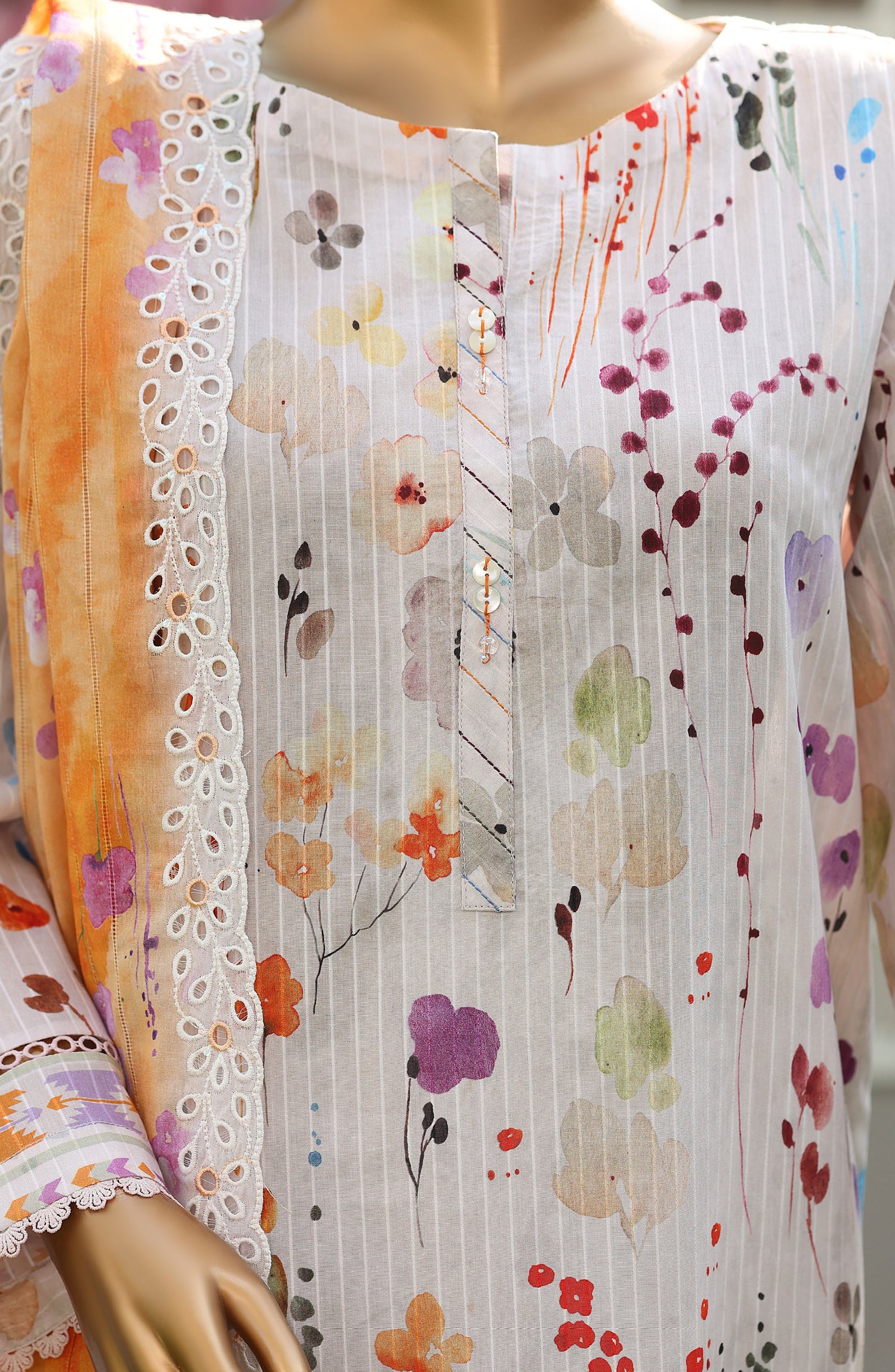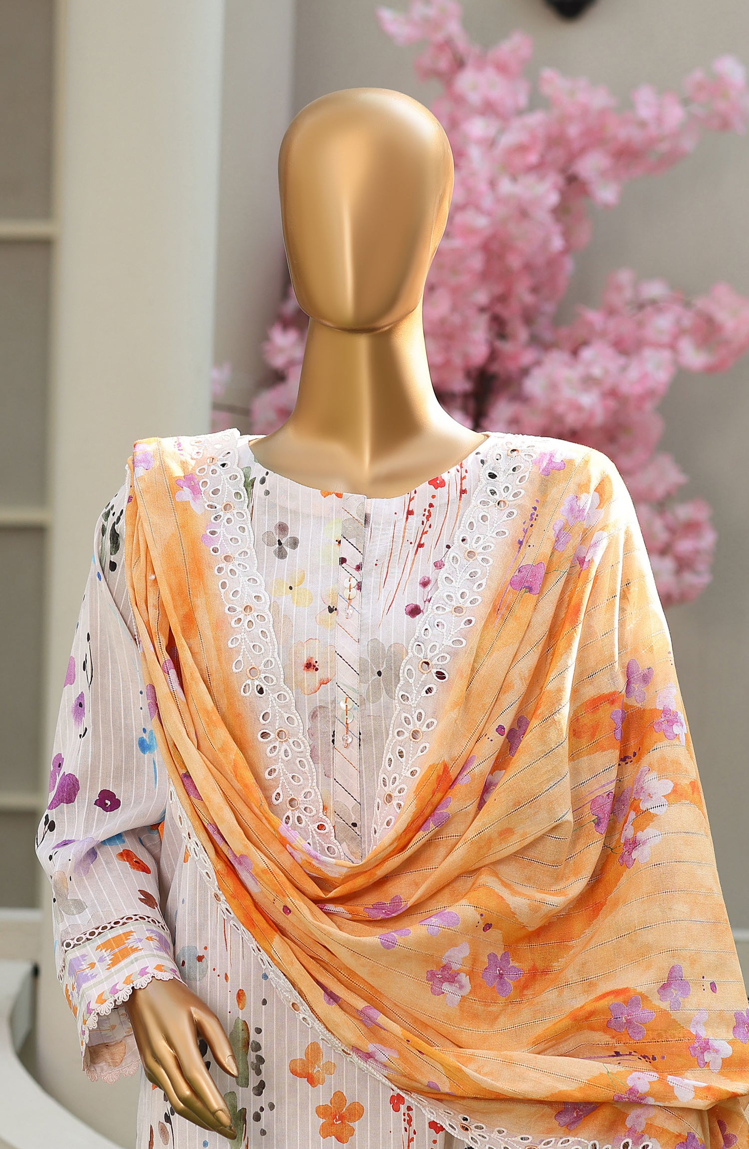 Digital Printed Linokara Embroidered Cutwork Lawn Dupatta