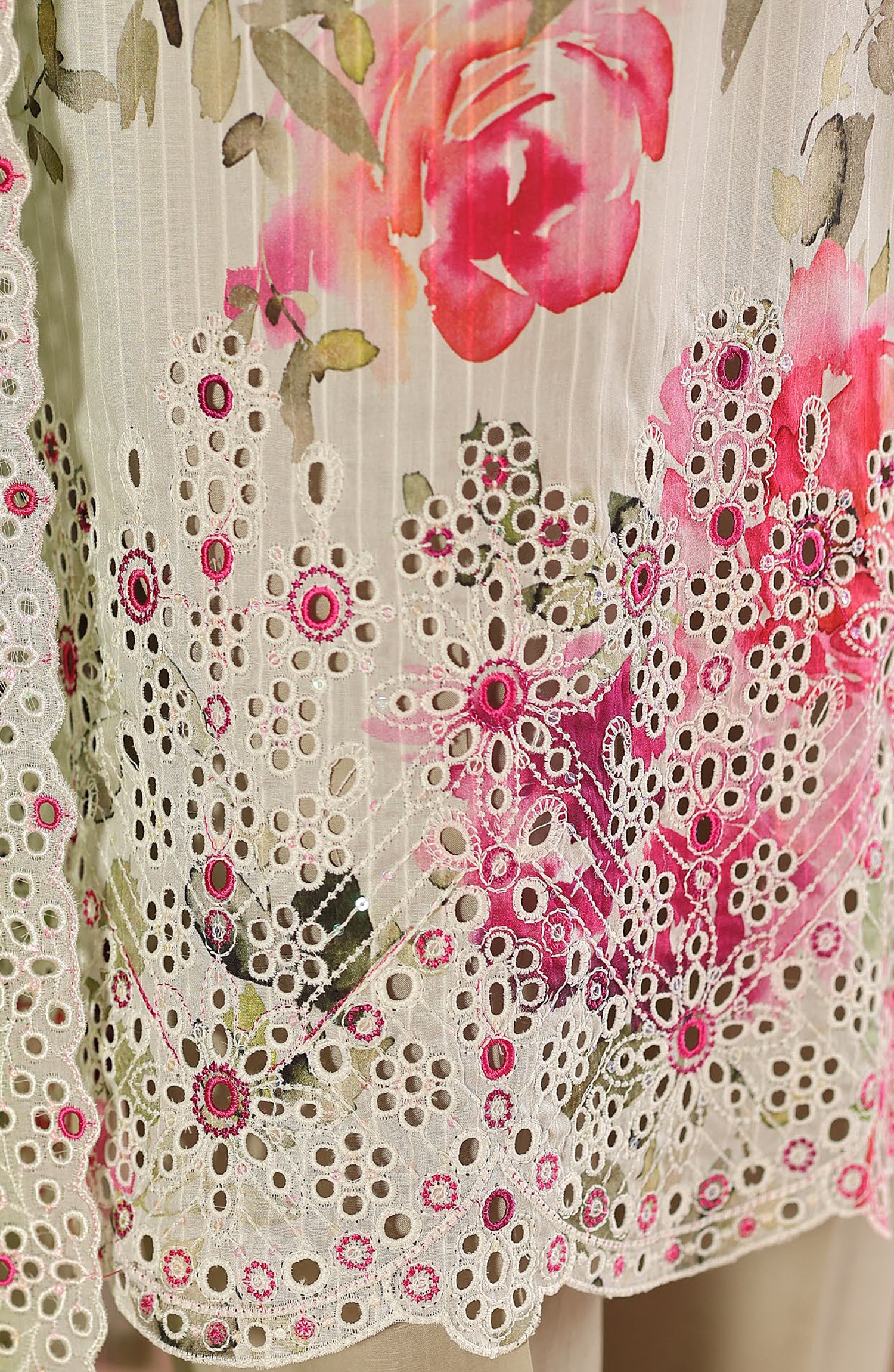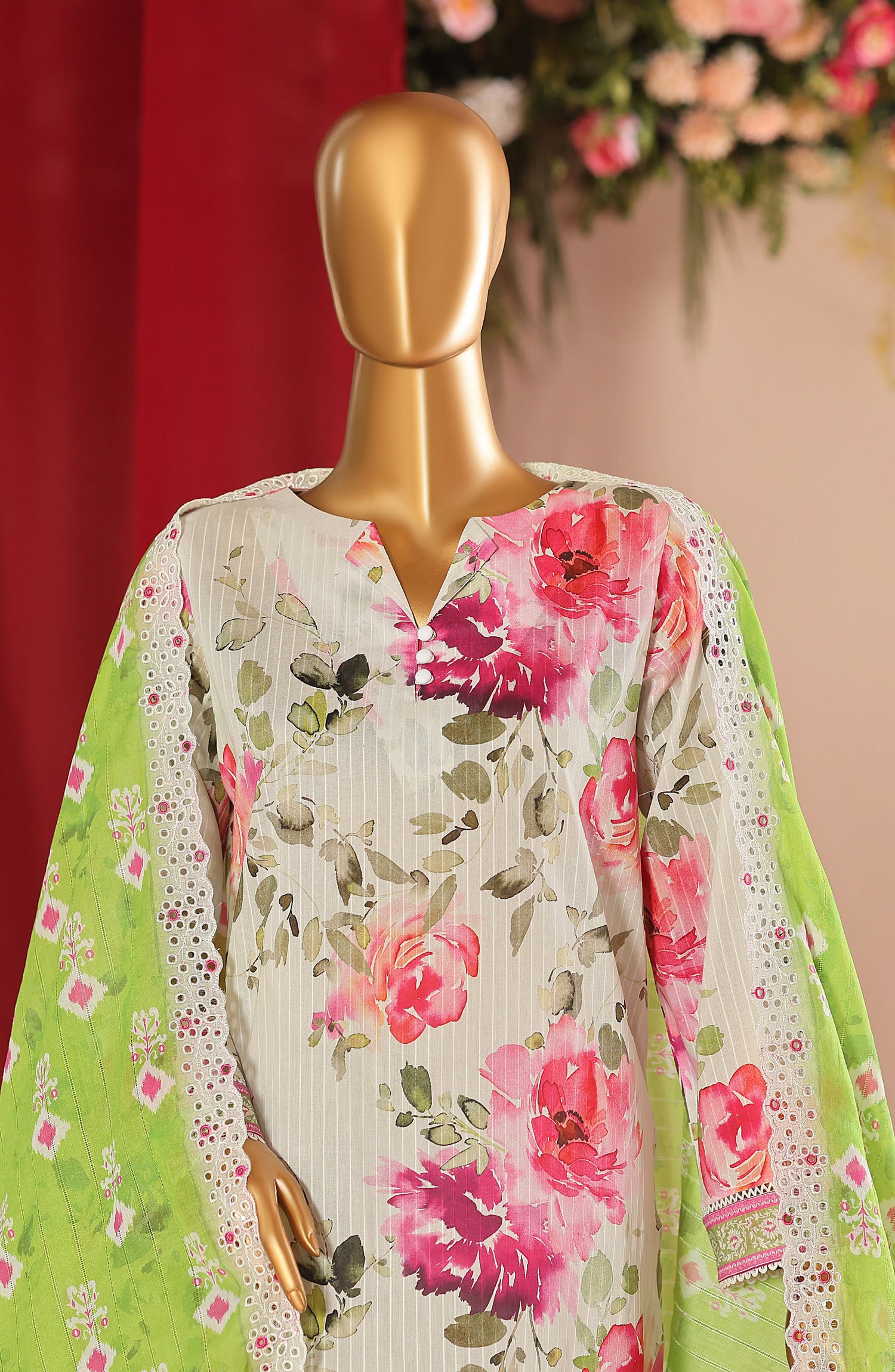Digital Printed Linokara Embroidered Cutwork Lawn Dupatta