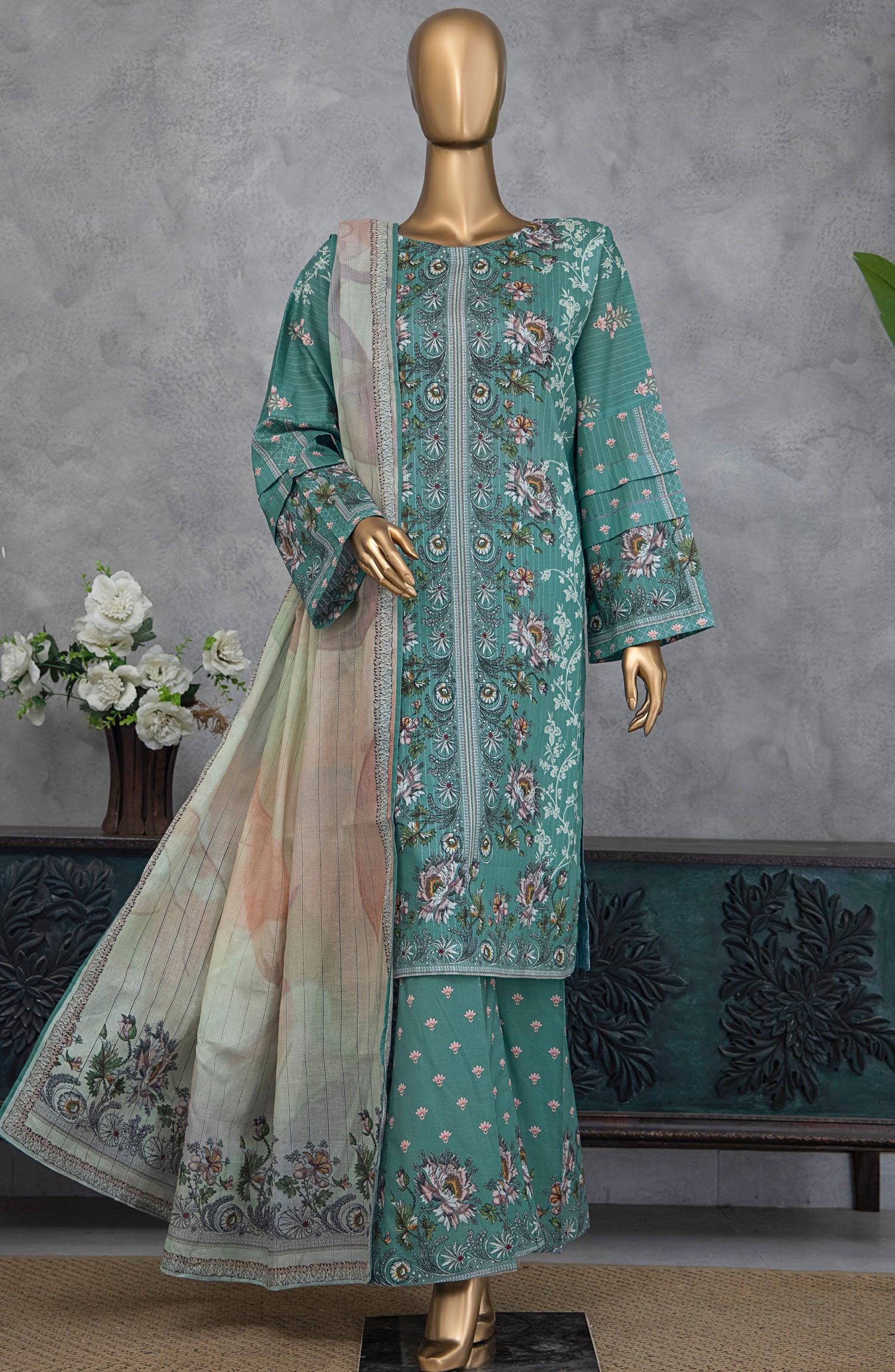 Nayab by HZ Textile Printed Lawn Unstitched 3 Piece Suit - NPE-05 - HZ25NPED - Sea Green - Summer Collection