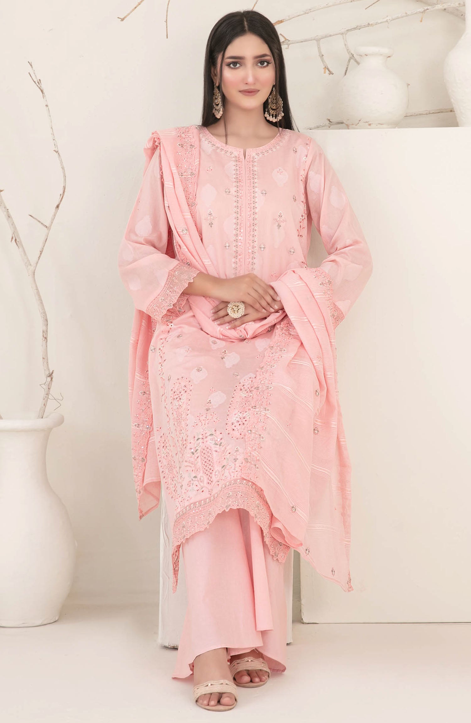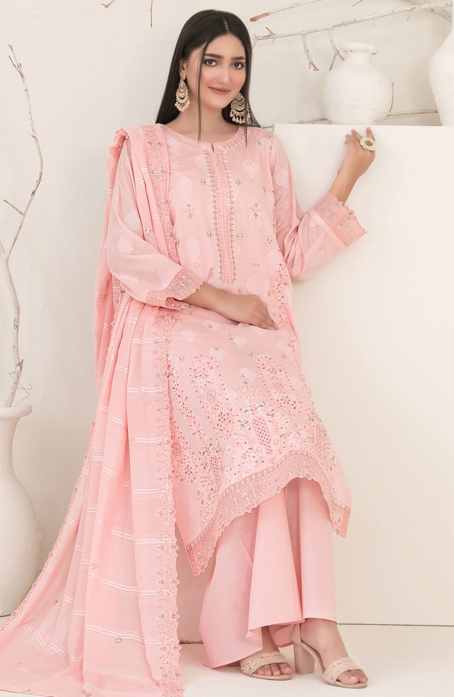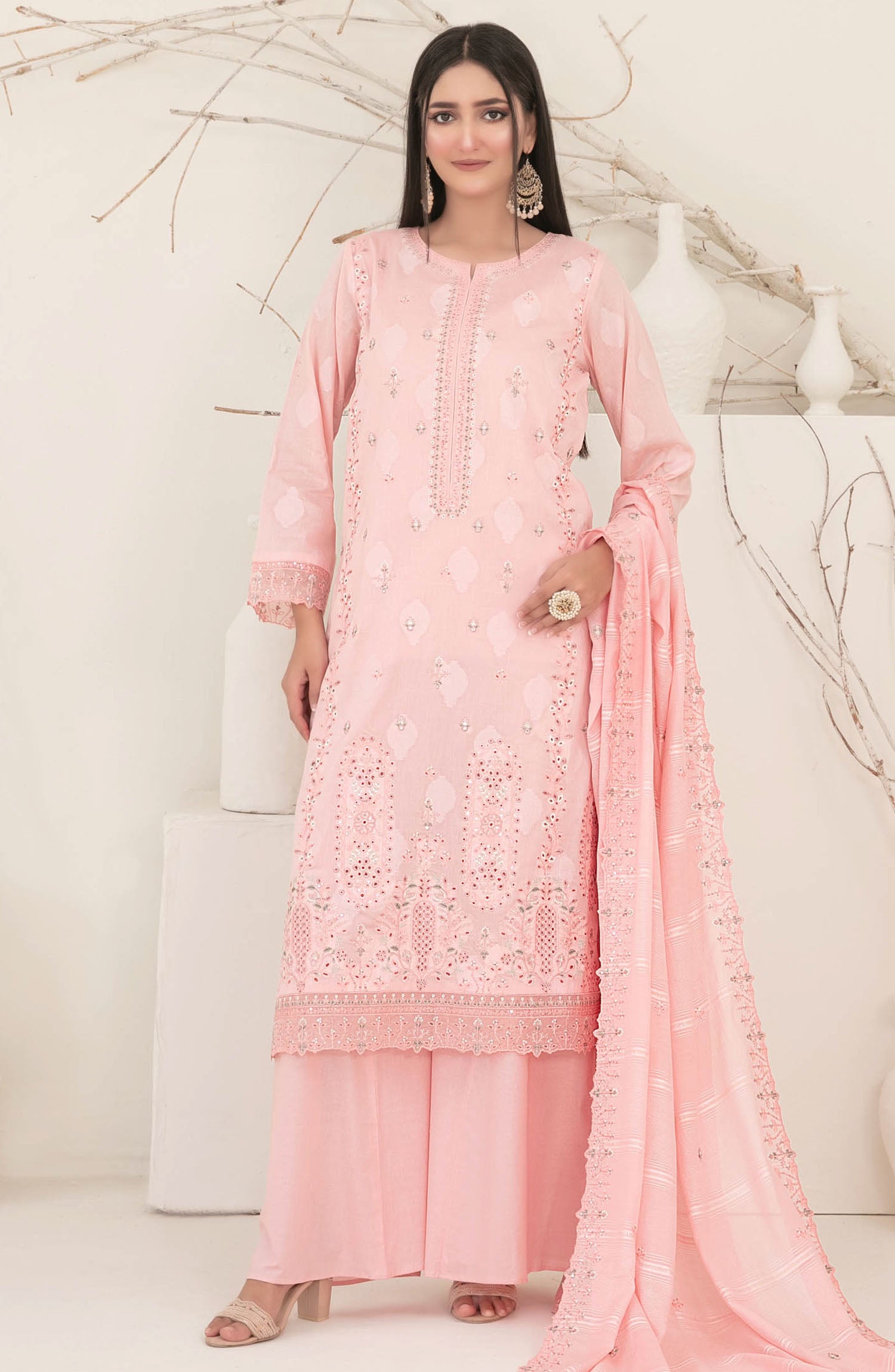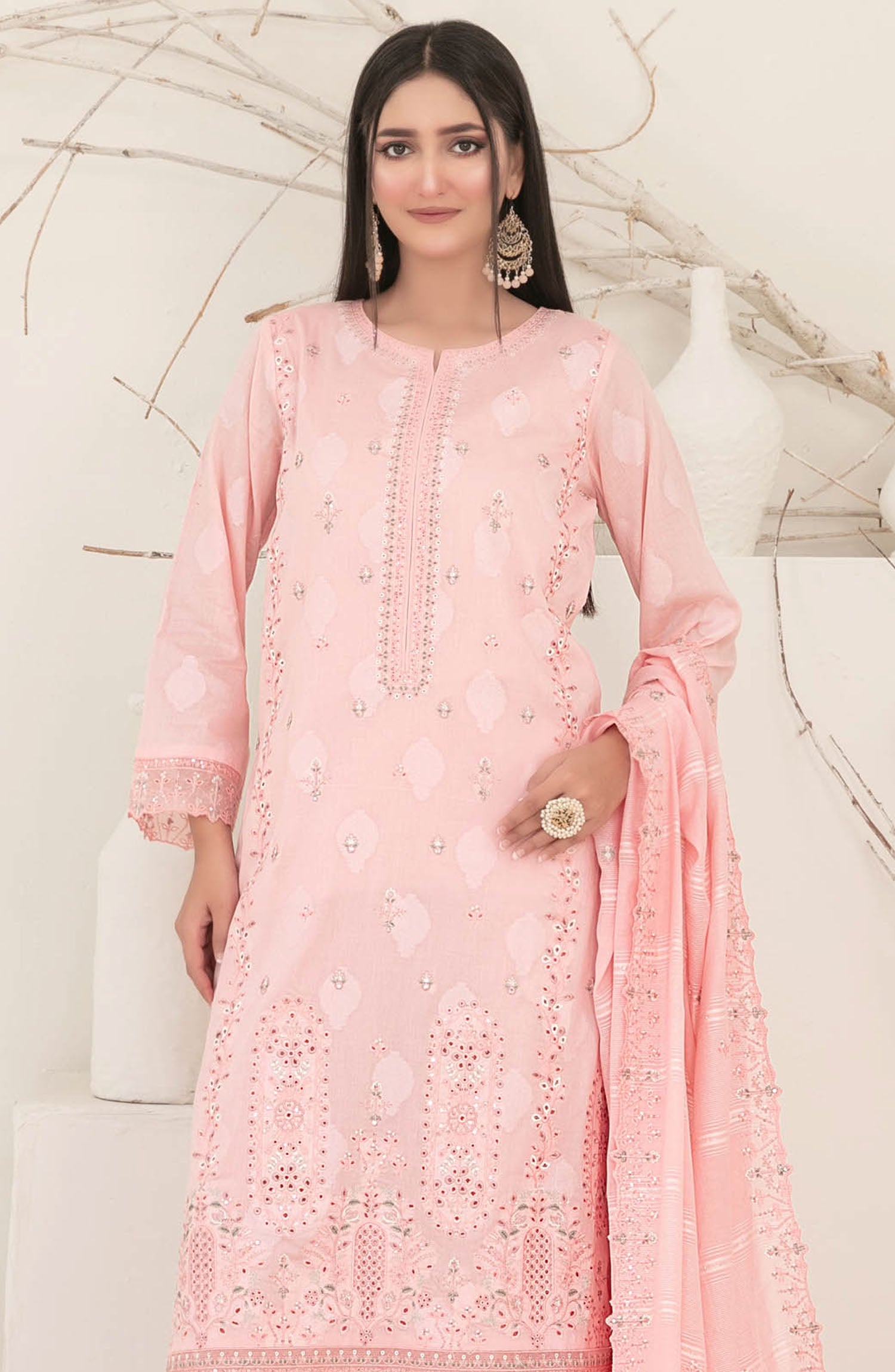 Embroidered Cutwork Diamond Dupatta