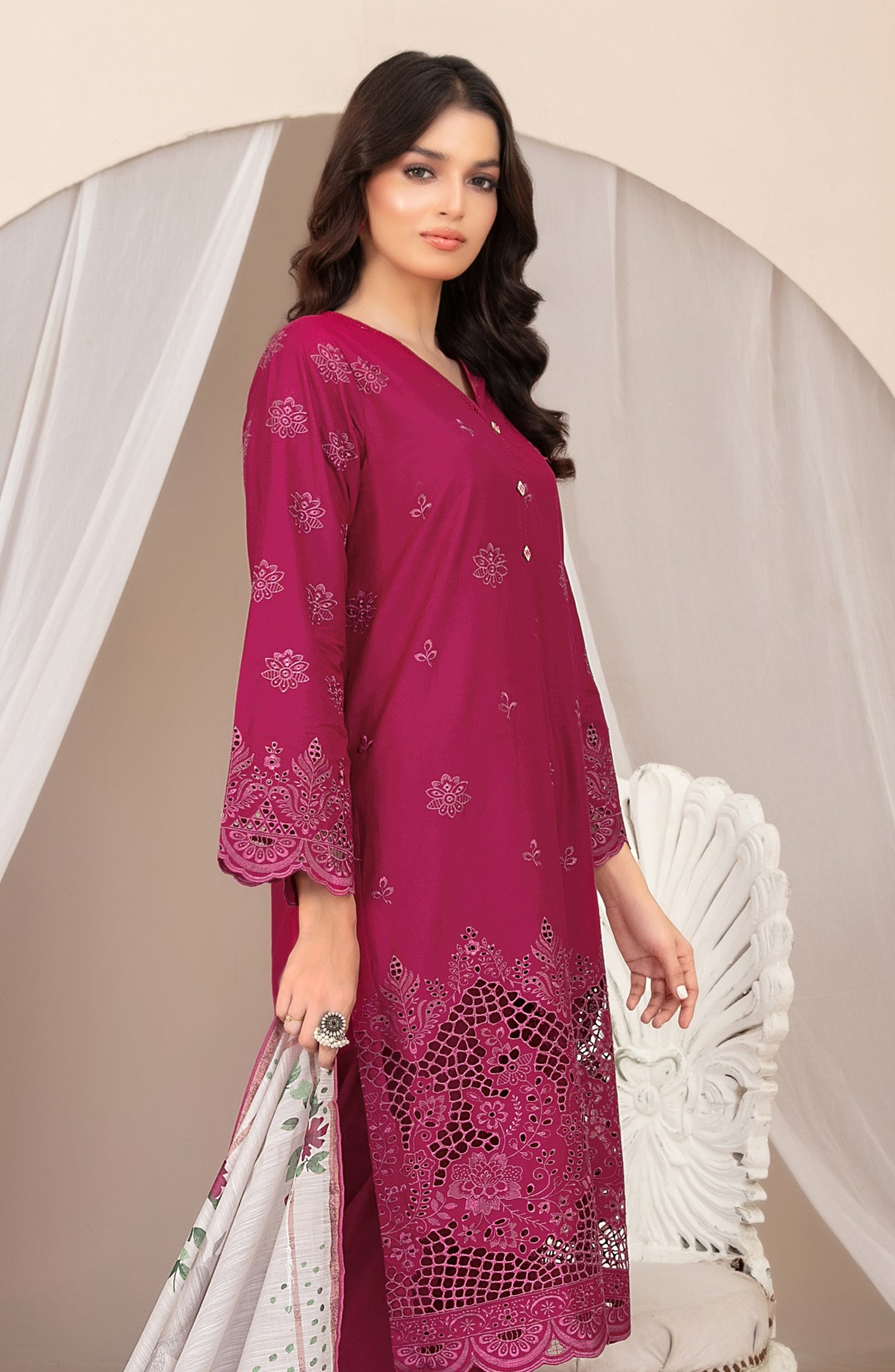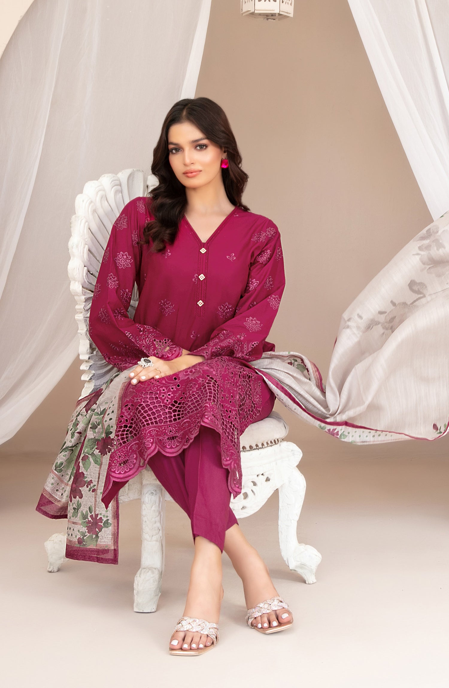 Home Nazifa by Tawakkal Fabrics Embroidered Schiffli Lawn Stitched 3 Piece Suit - D-1041 - TF26NZ - Pink - Summer Collection