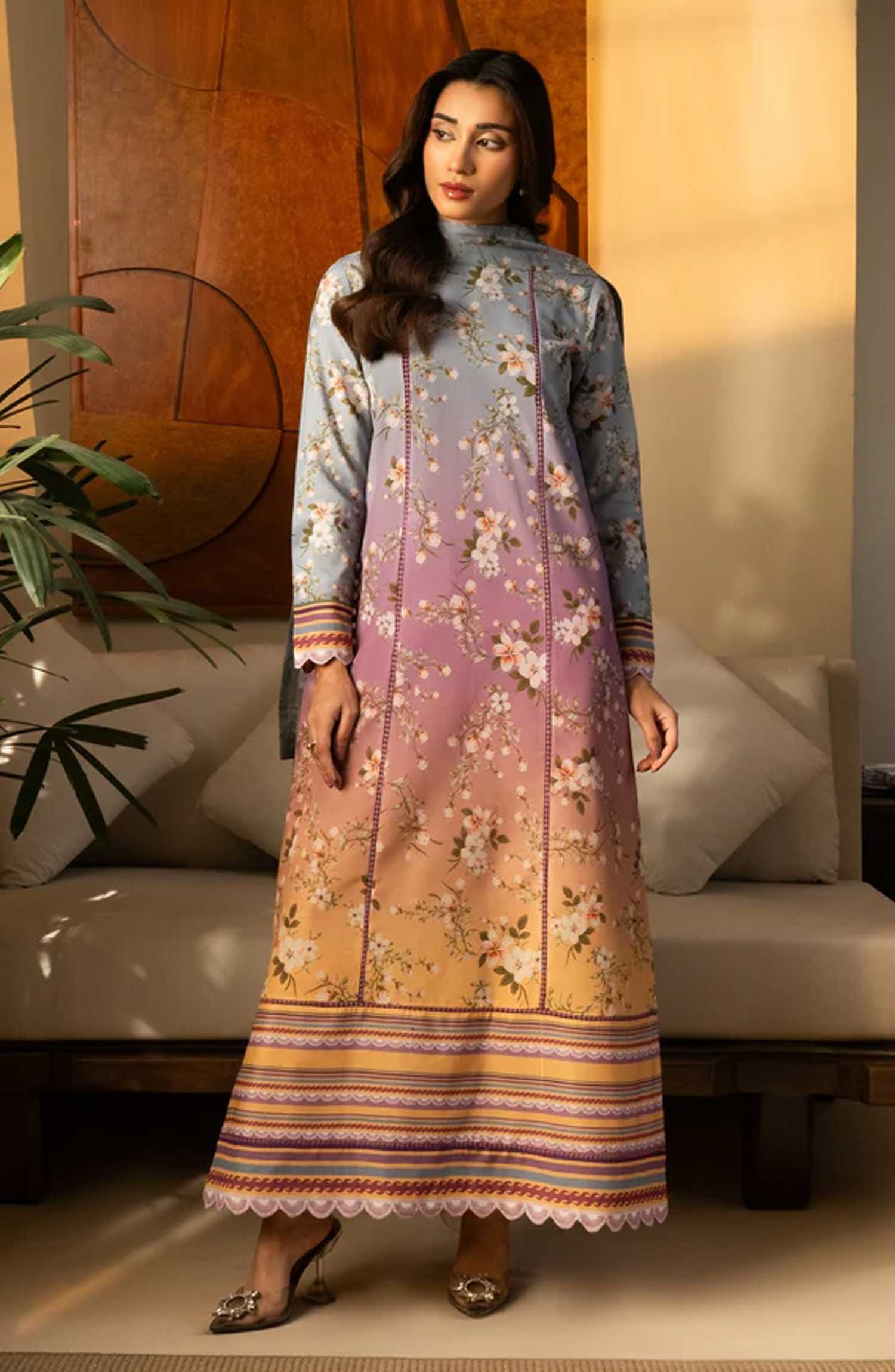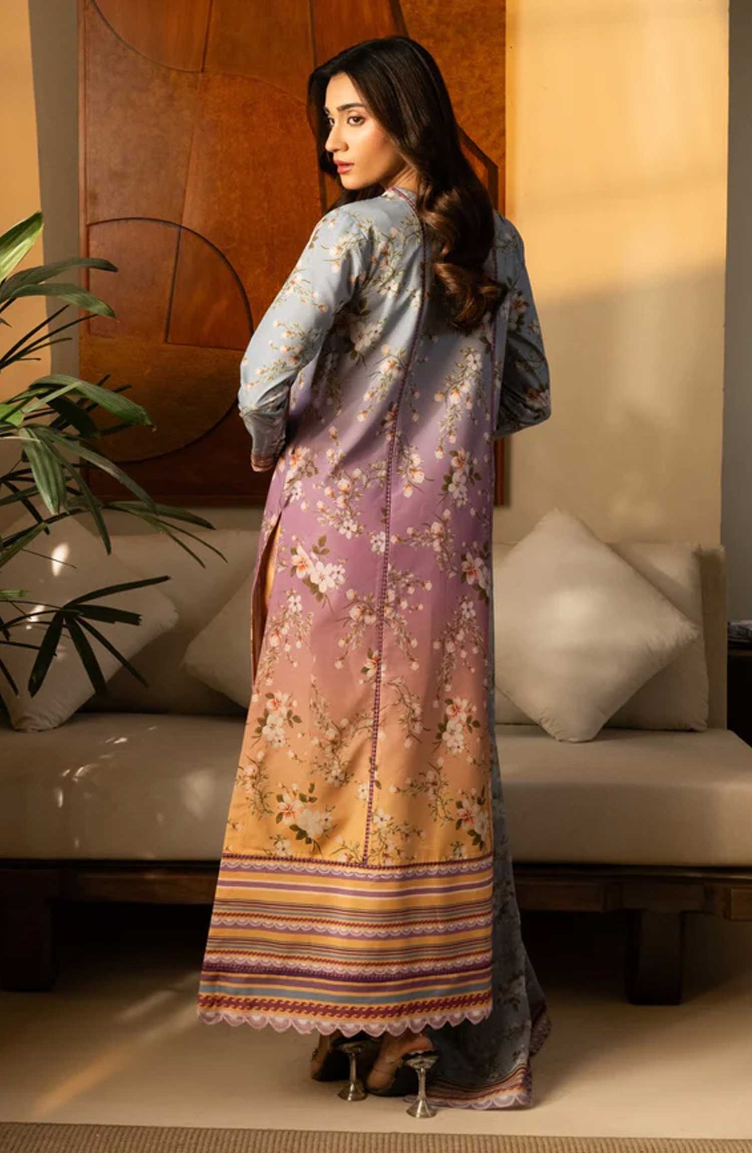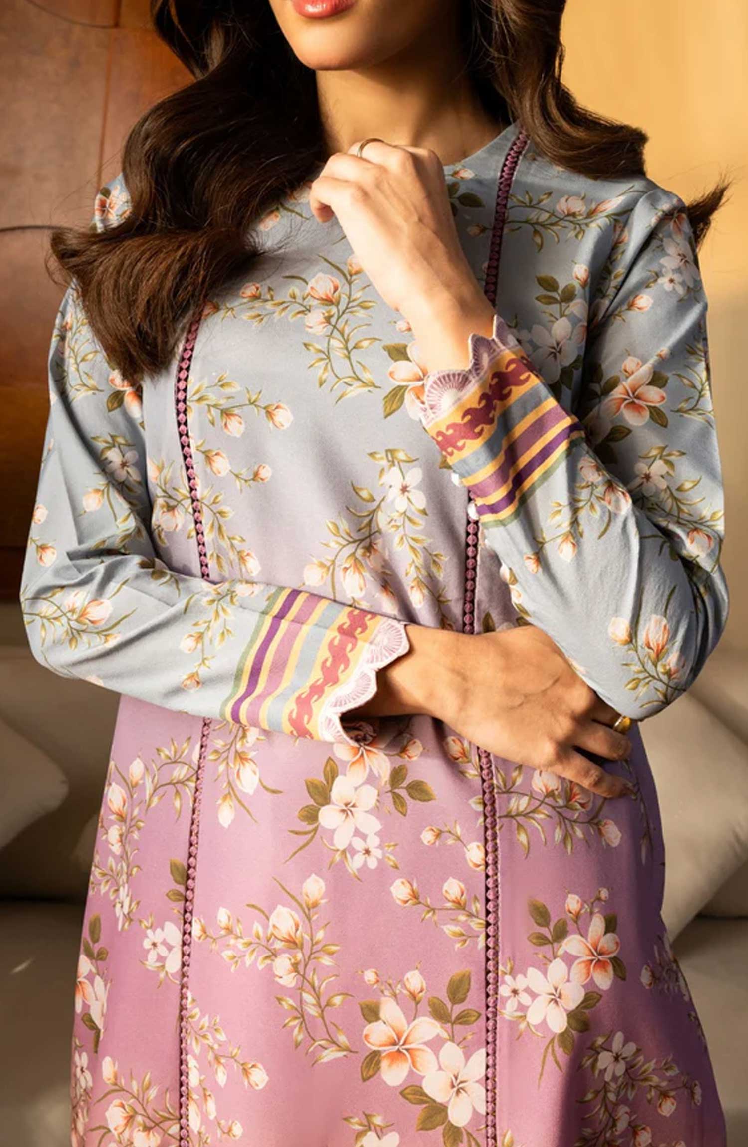 Modest Printed Cotton Stitched 3 Piece Suit - 9755-Prpl - MOD25PRF - Purple - Festive Girls Collection