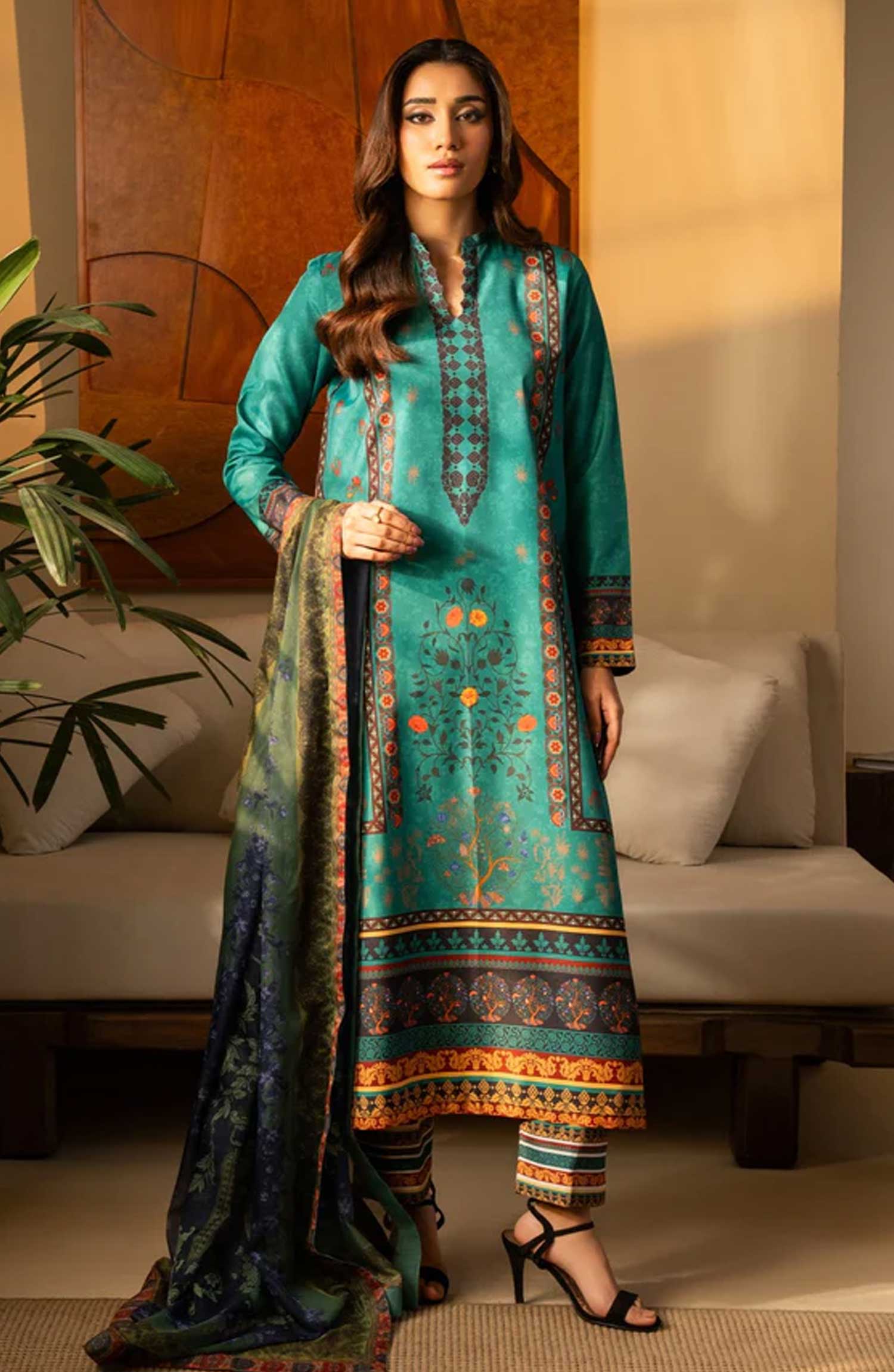 Sadabahar Printed Khaddar Stitched 3 Piece Suit - Design-10 - SBD25KHD - Blue - Winter Collection