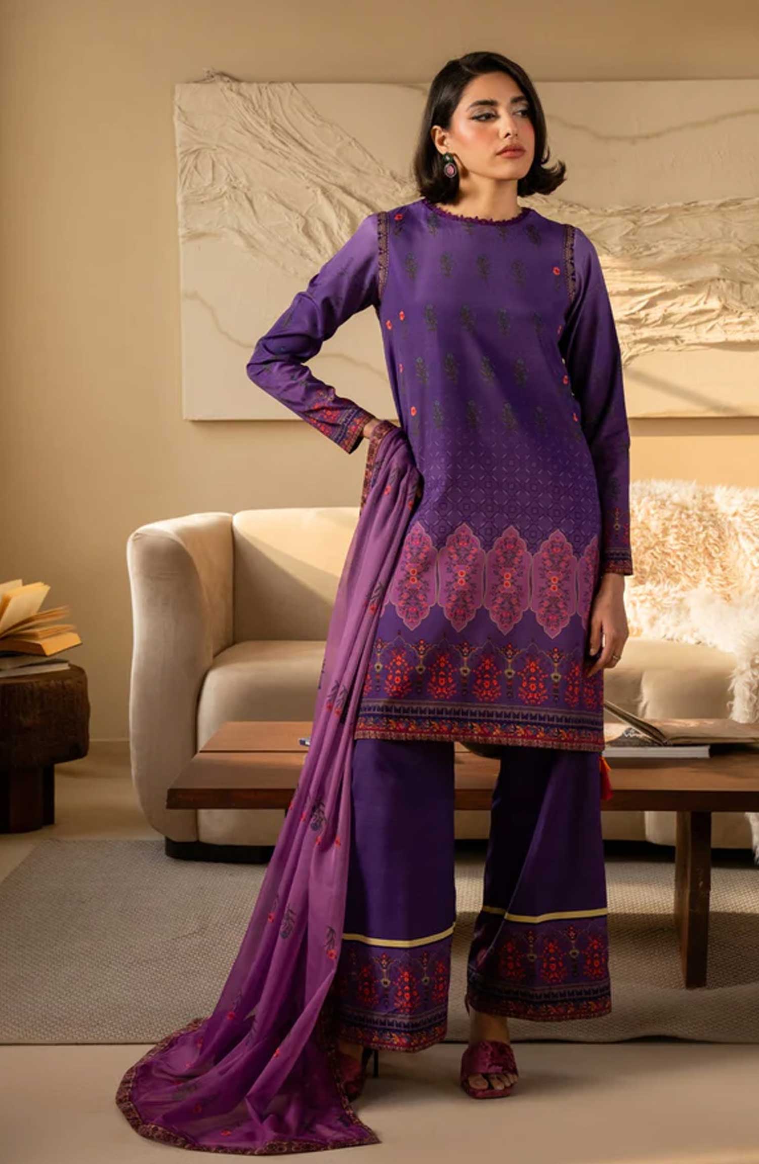 Modest Printed Cotton Stitched 3 Piece Suit - 9755-Prpl - MOD25PRF - Purple - Festive Girls Collection