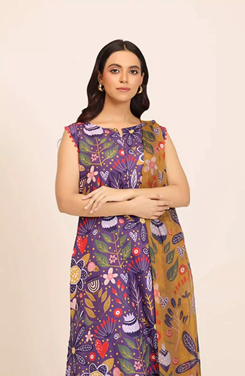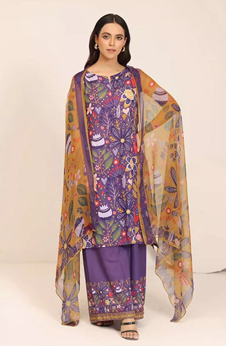 Modest Printed Cotton Stitched 3 Piece Suit - 9755-Prpl - MOD25PRF - Purple - Festive Girls Collection