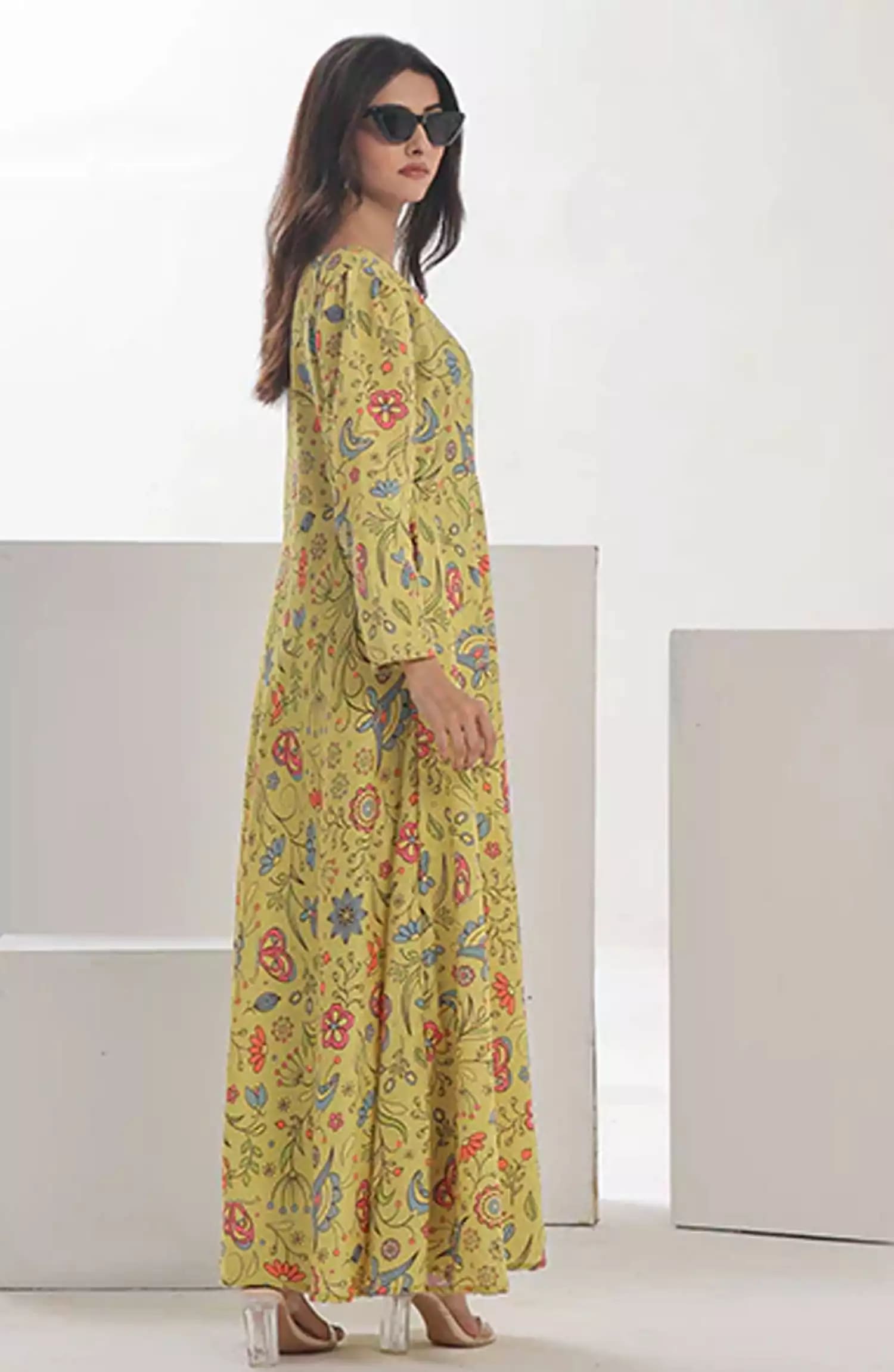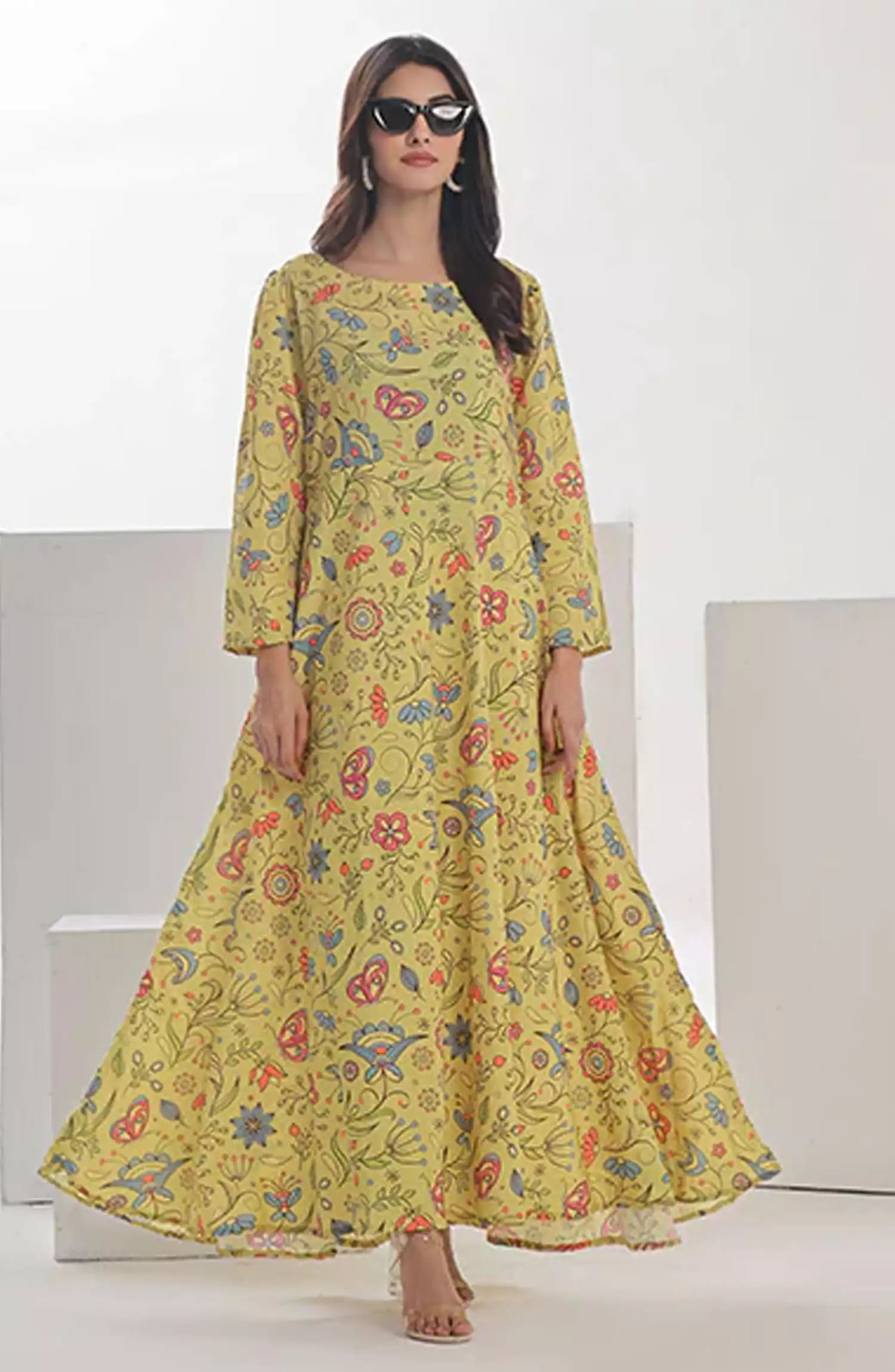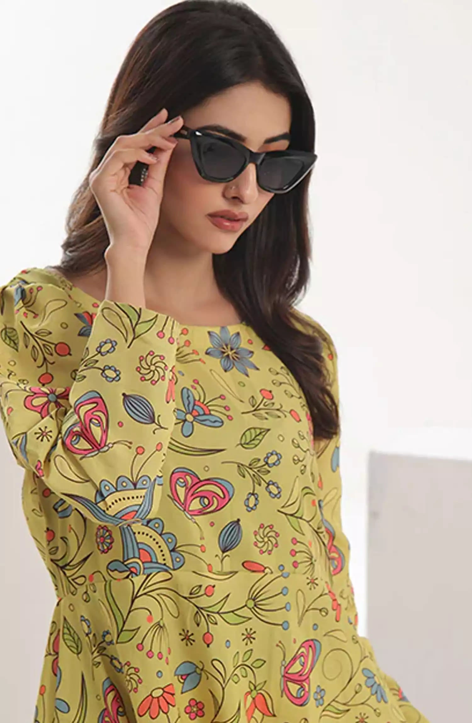 Nazmina Floret Luxury Swiss Lawn Collection 2 Pc - TF-06 Yellow Floral