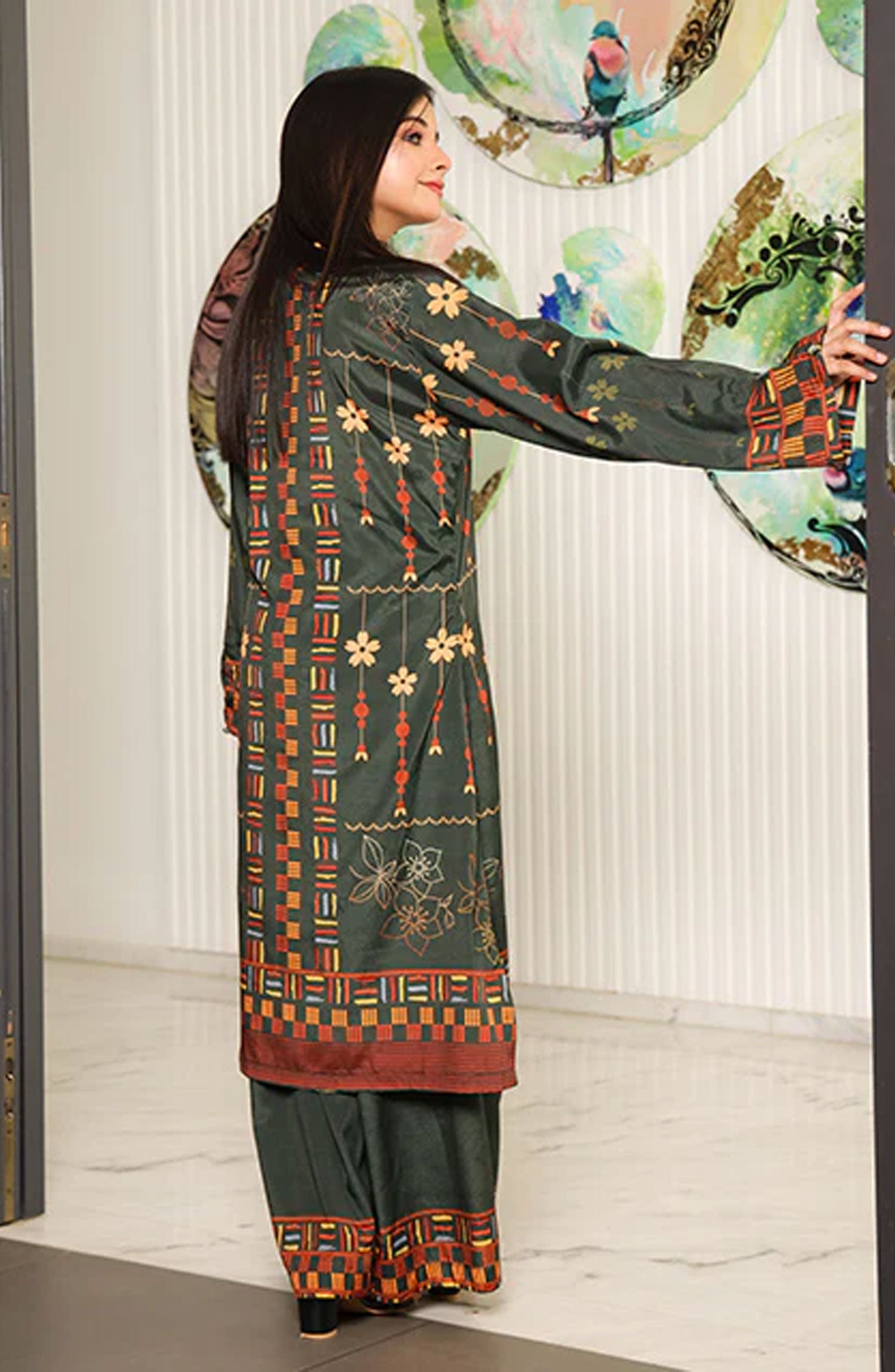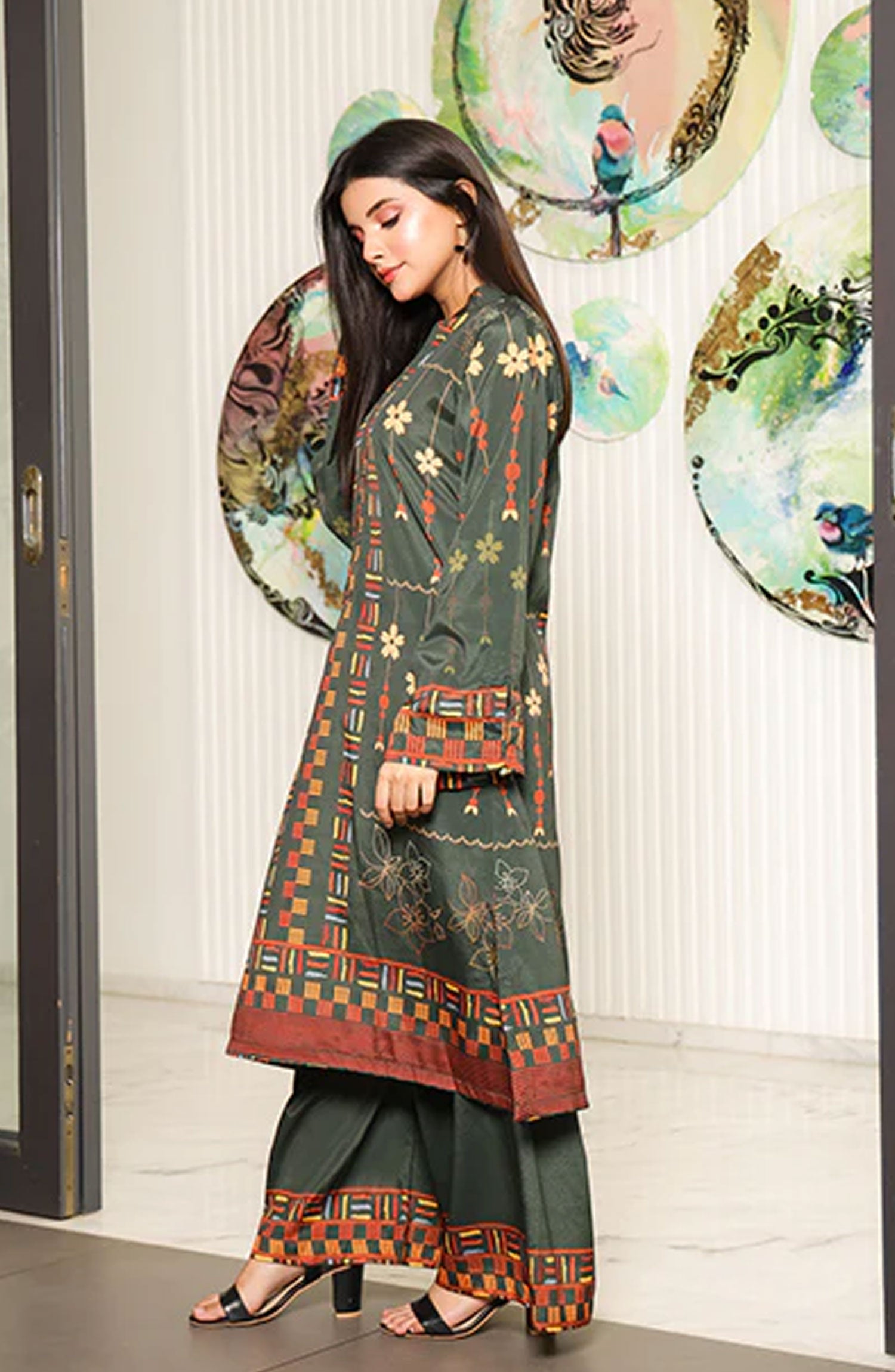 Nazmina Luxe Co Ords 2 Pc Stitched Collection has been styled in the image for photography and illustrative purposes.