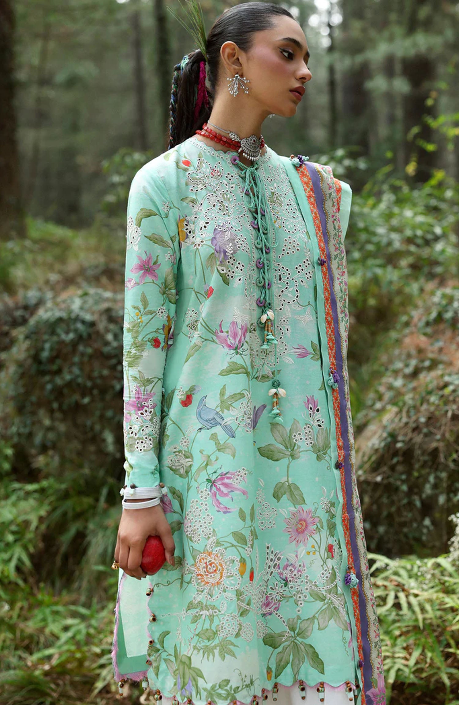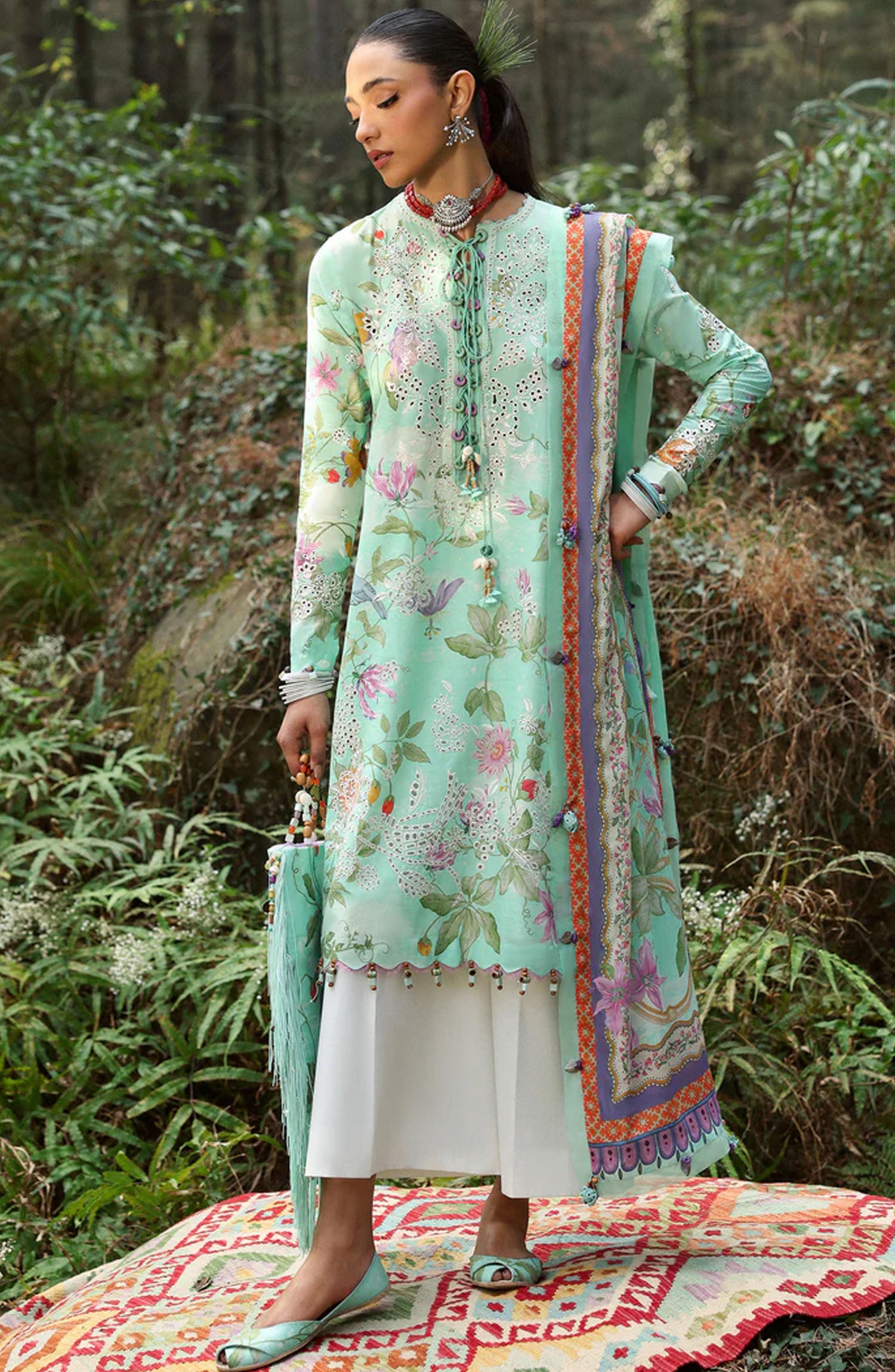 Neelum by Zaha Embroidered Lawn Unstitched 3 Piece Suit - ZL25-02 B ELARA - ZAH25NL - Green - Summer Collection