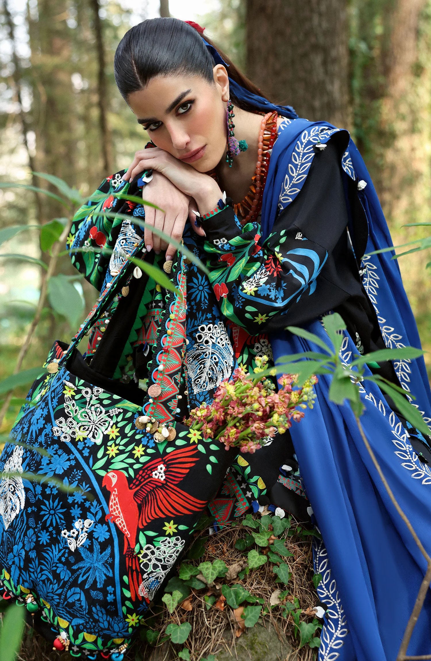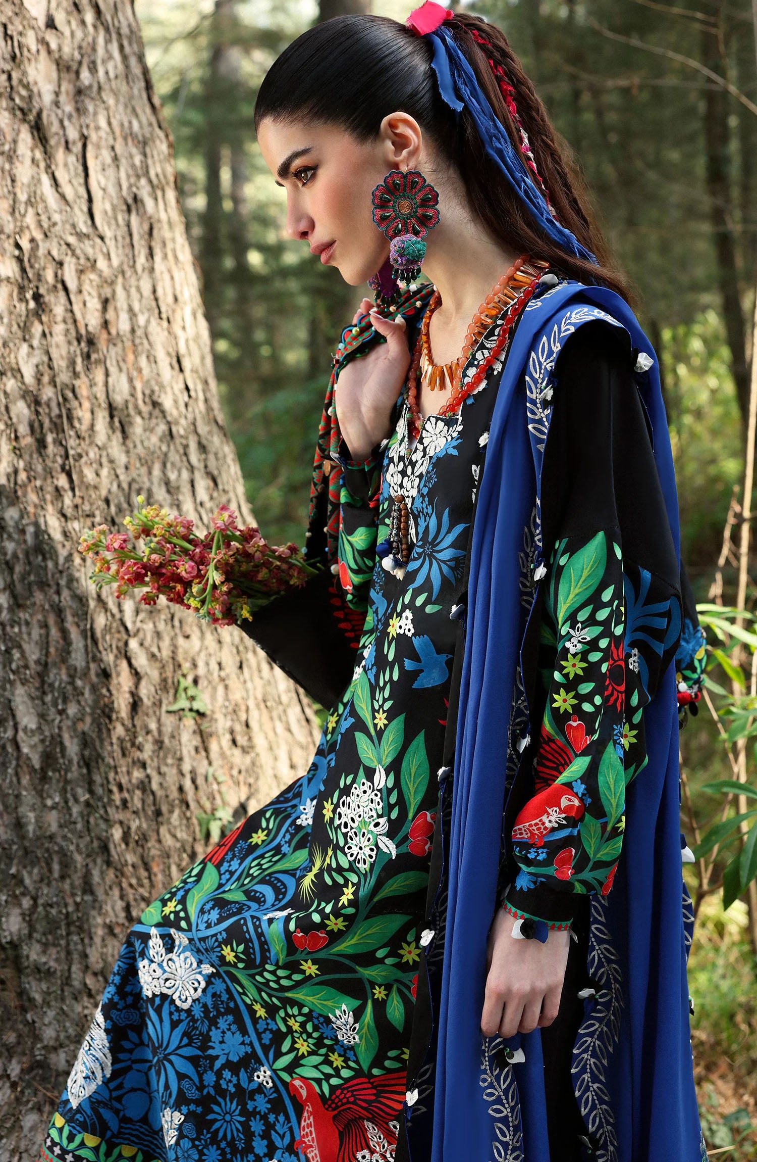 Rua by Casual Lite Embroidered Premium Linen Stitched 3 Piece Suit - D-03 Shadow Bloom - CL25RU - Black - Winter Collection