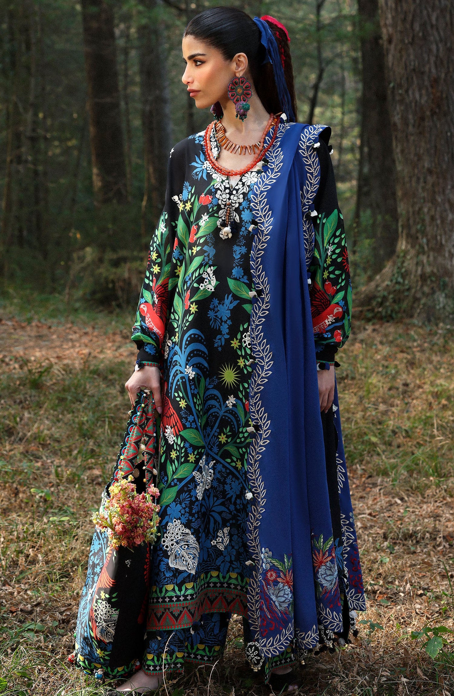 Neelum by Zaha Embroidered Lawn Unstitched 3 Piece Suit - ZL25-03 A BLACK SOLANA - ZAH25NL - Black - Summer Collection