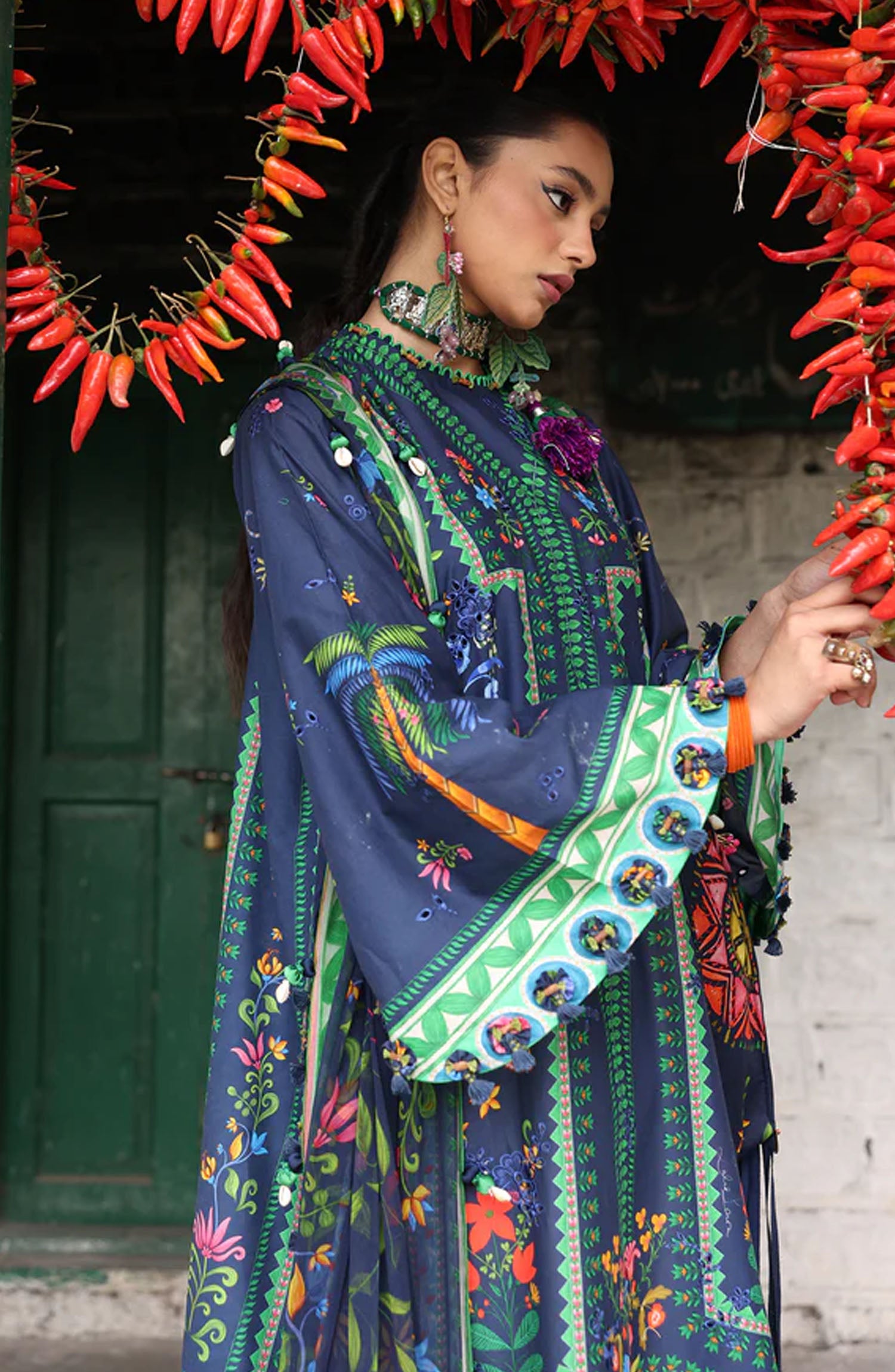 Neelum by Zaha Embroidered Lawn Unstitched 3 Piece Suit - ZL25-06 B AMANI - ZAH25NL - Blue - Summer Collection
