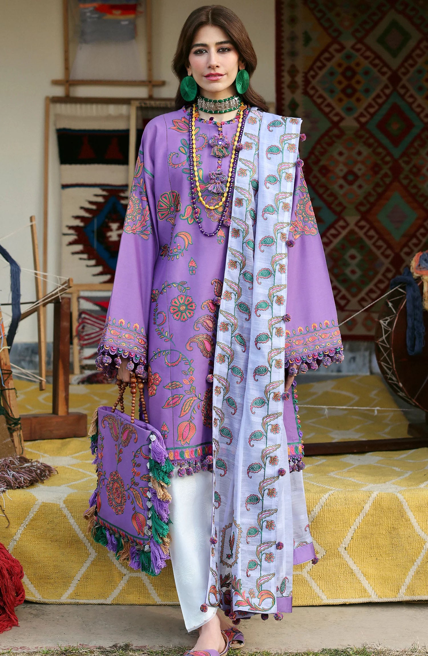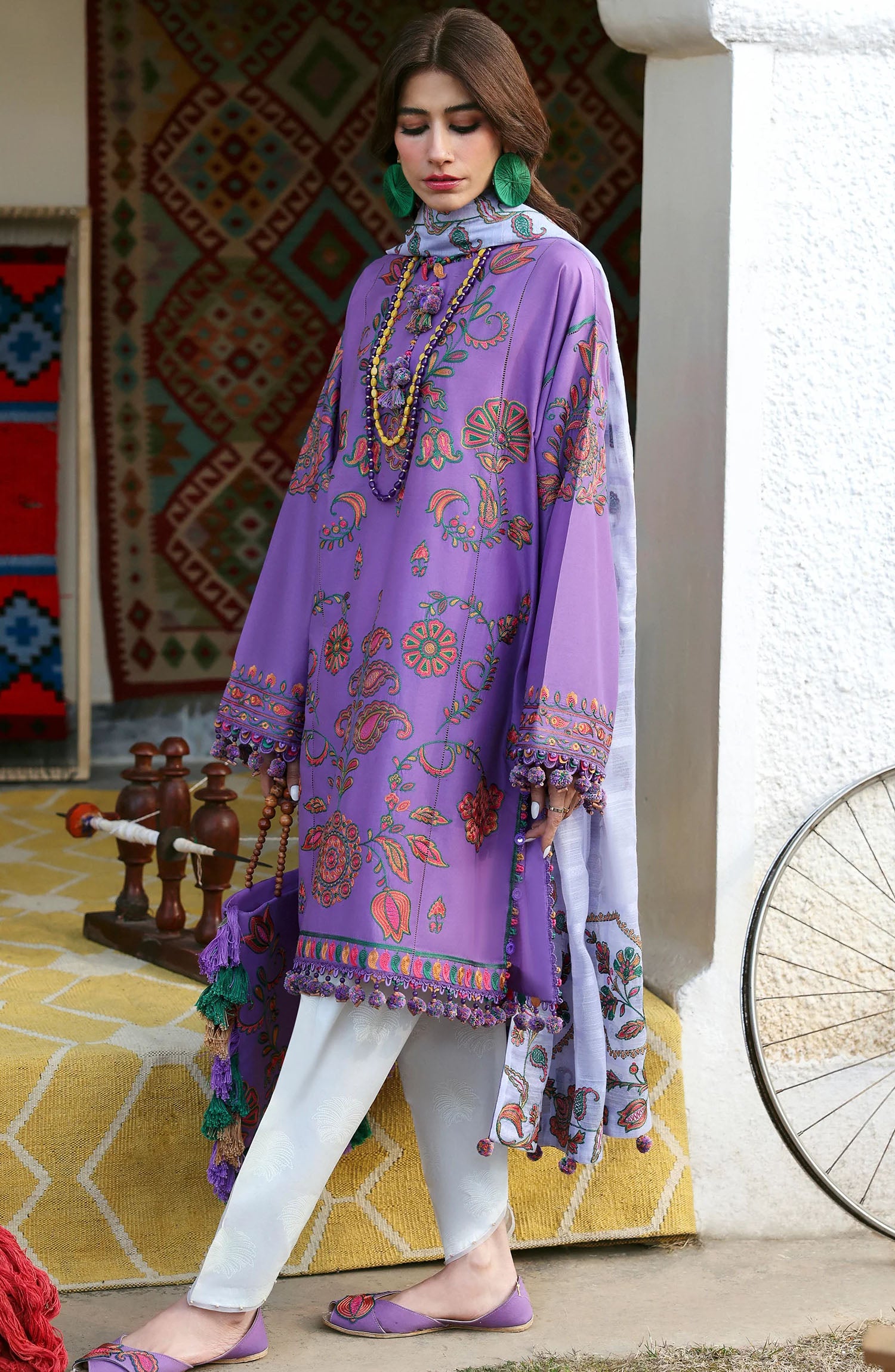 Home Neelum by Zaha Embroidered Lawn Unstitched 3 Piece Suit - ZL25-09 A ZARIAH - ZAH25NL - Purple - Summer Collection