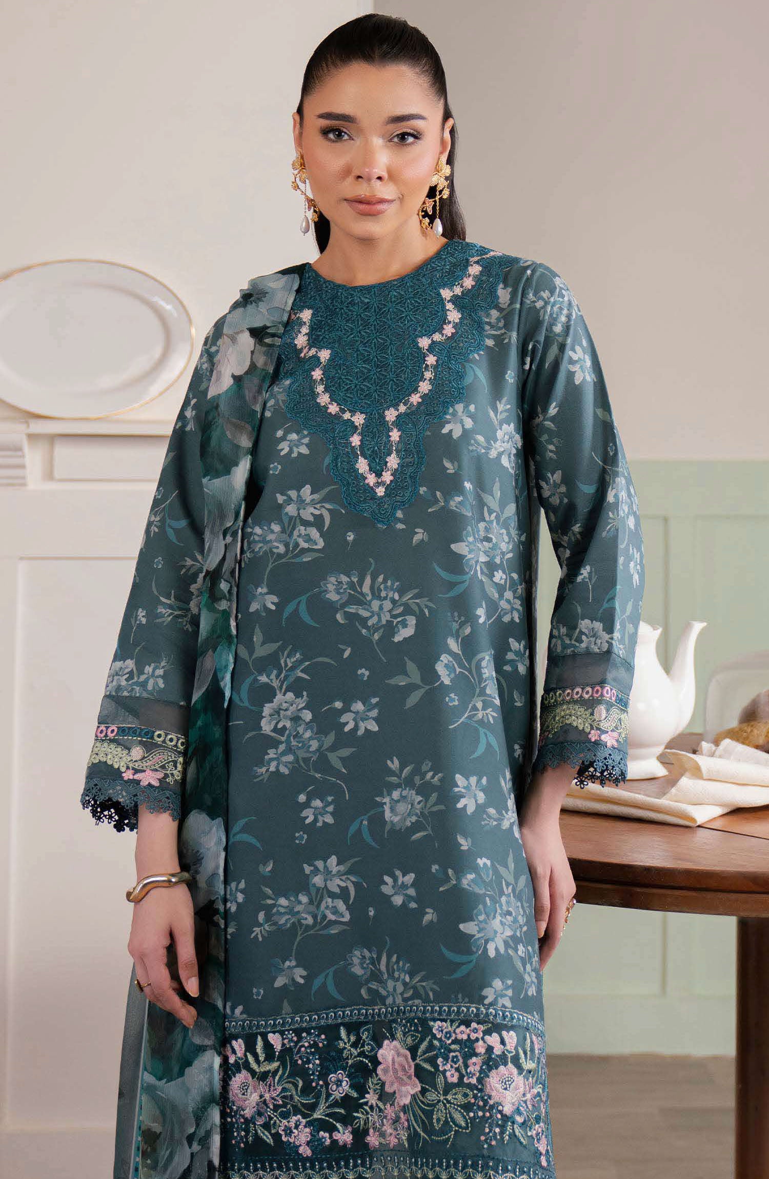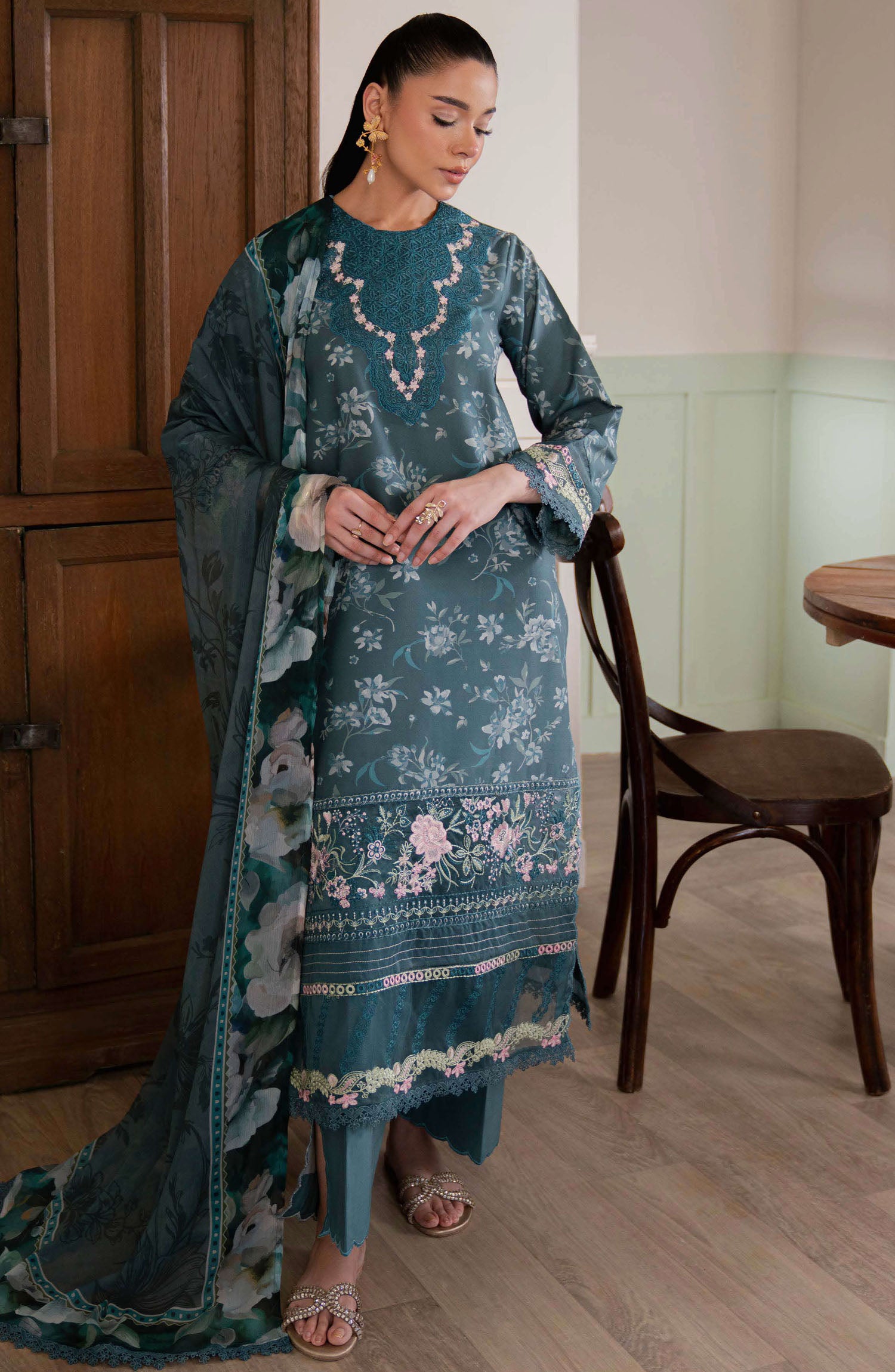 Home Neeshay Embroidered Lawn Unstitched 3 Piece Suit - Botanic Flow - NSH25SL2 - Blue - Summer Collection
