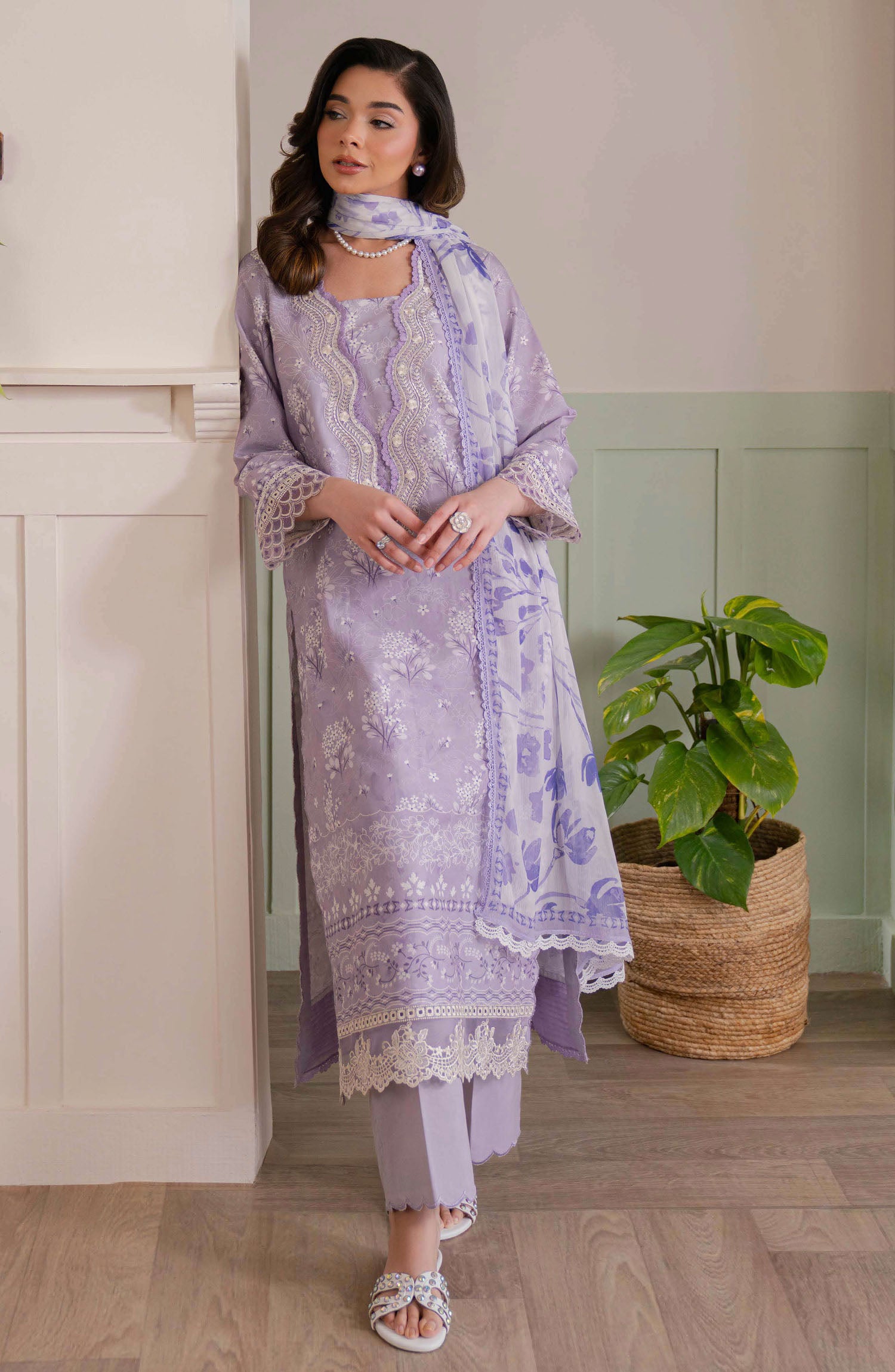 Home Neeshay Embroidered Lawn Unstitched 3 Piece Suit - Lavender Dream - NSH25SL2 - Purple - Summer Collection