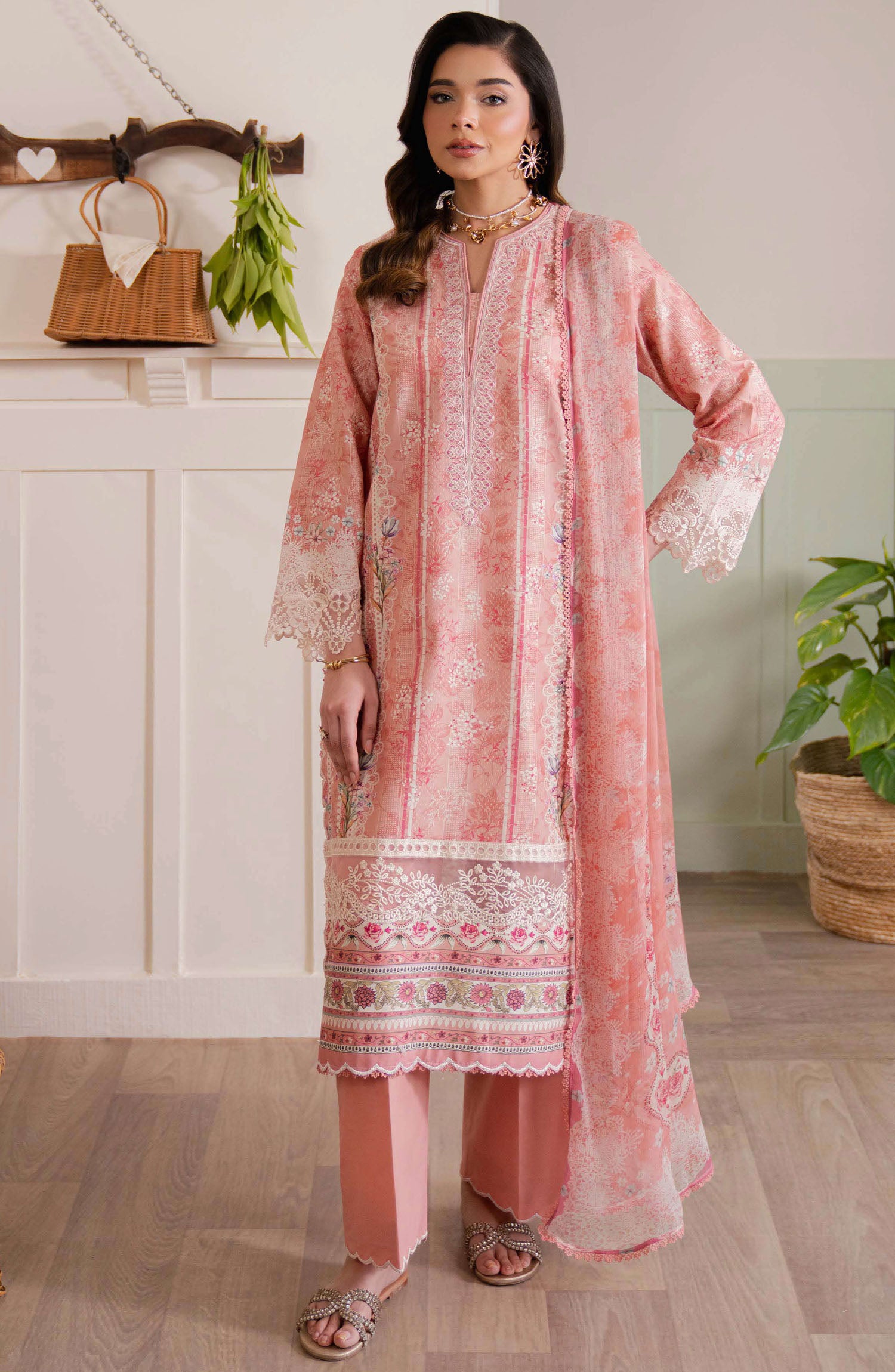 Home Neeshay Embroidered Lawn Unstitched 3 Piece Suit - Peach Flame - NSH25SL2 - Pink - Summer Collection