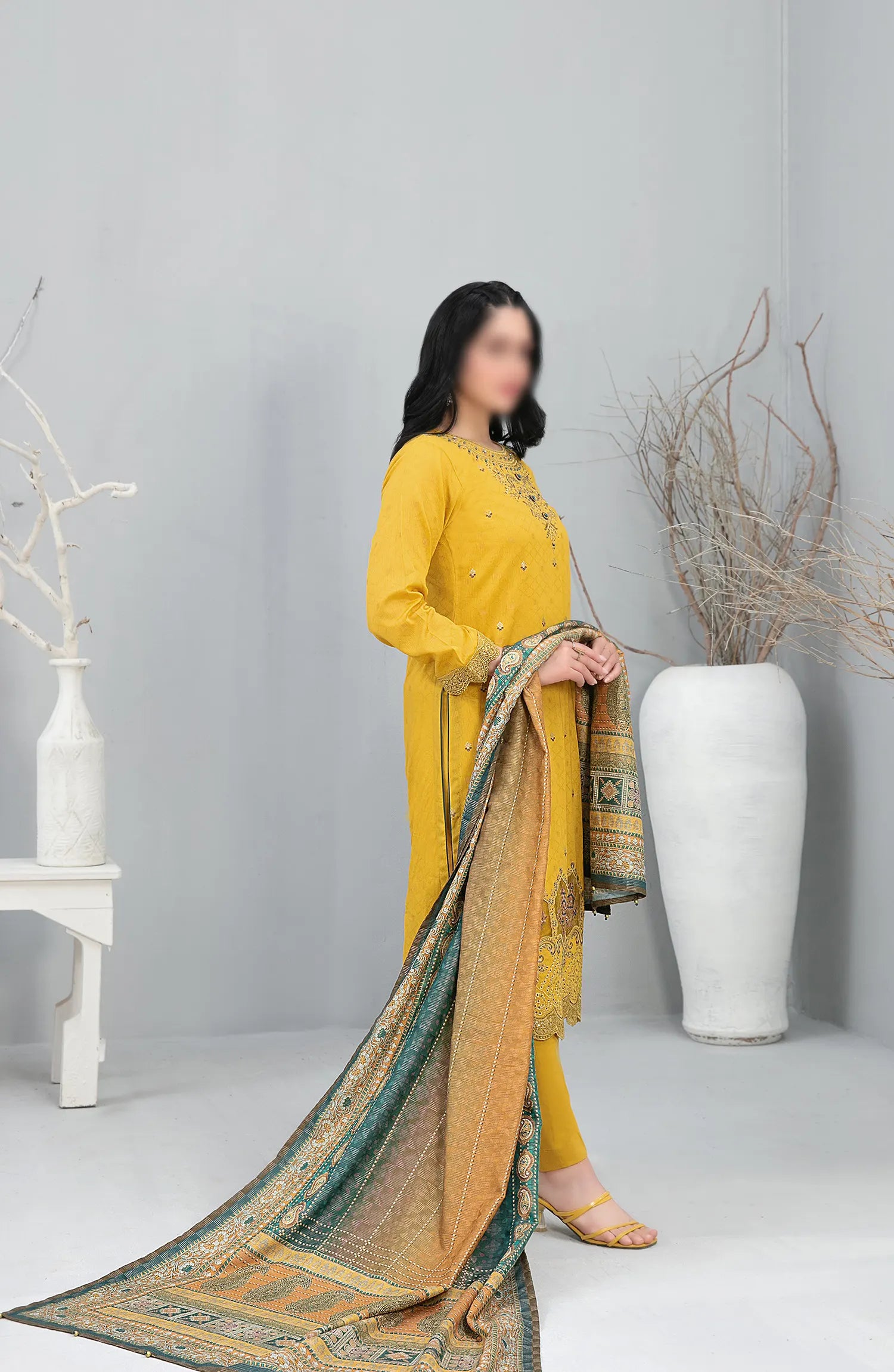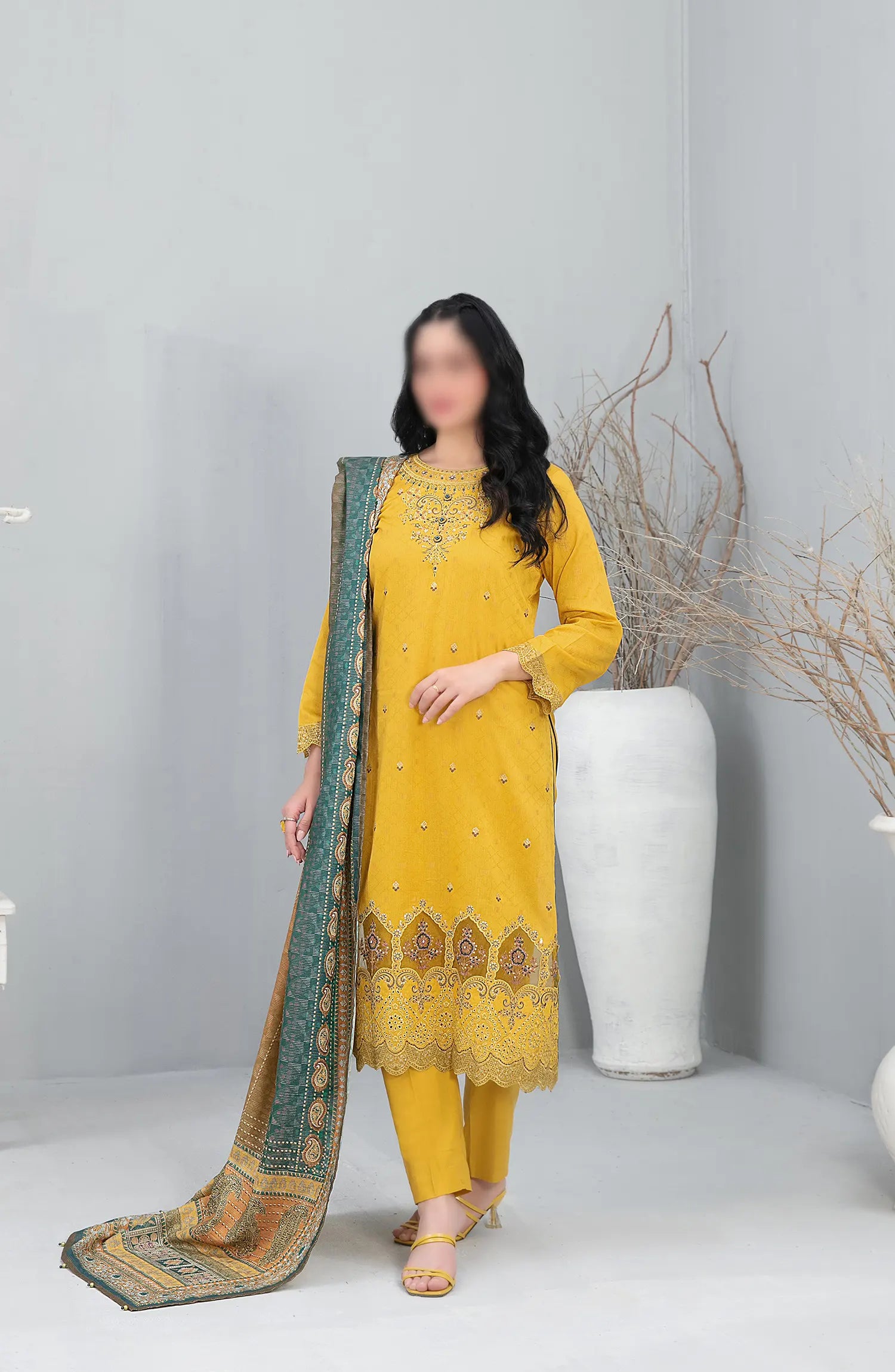 Modest Embroidered Chiffon Stitched 3 Piece Suit - 9740-Grn - MOD25PRF - Green - Festive Girls Collection