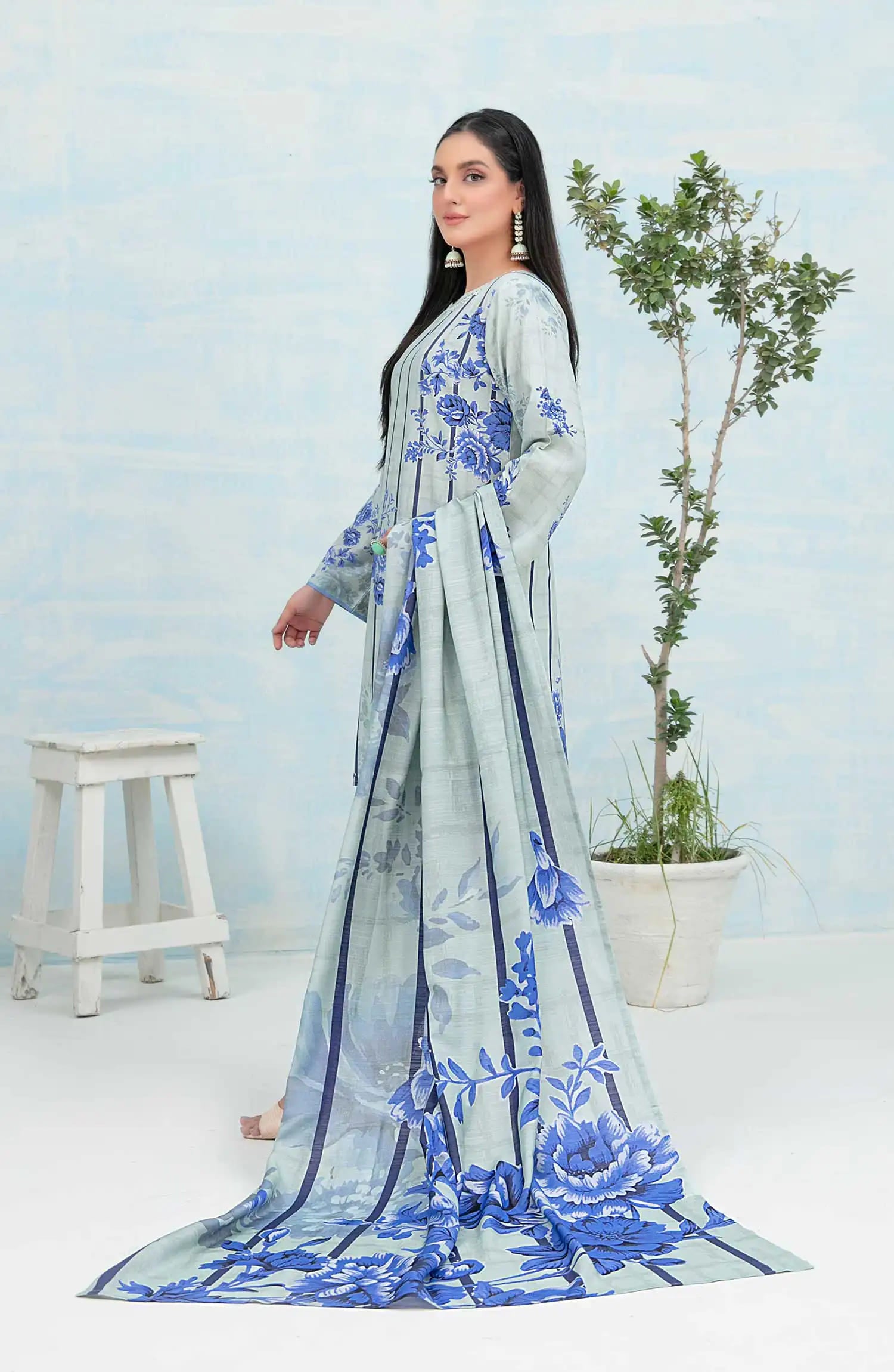 Nese - Stitched Digital Printed Staple 3pcs Collection has been styled in the image for photography and illustrative purposes.