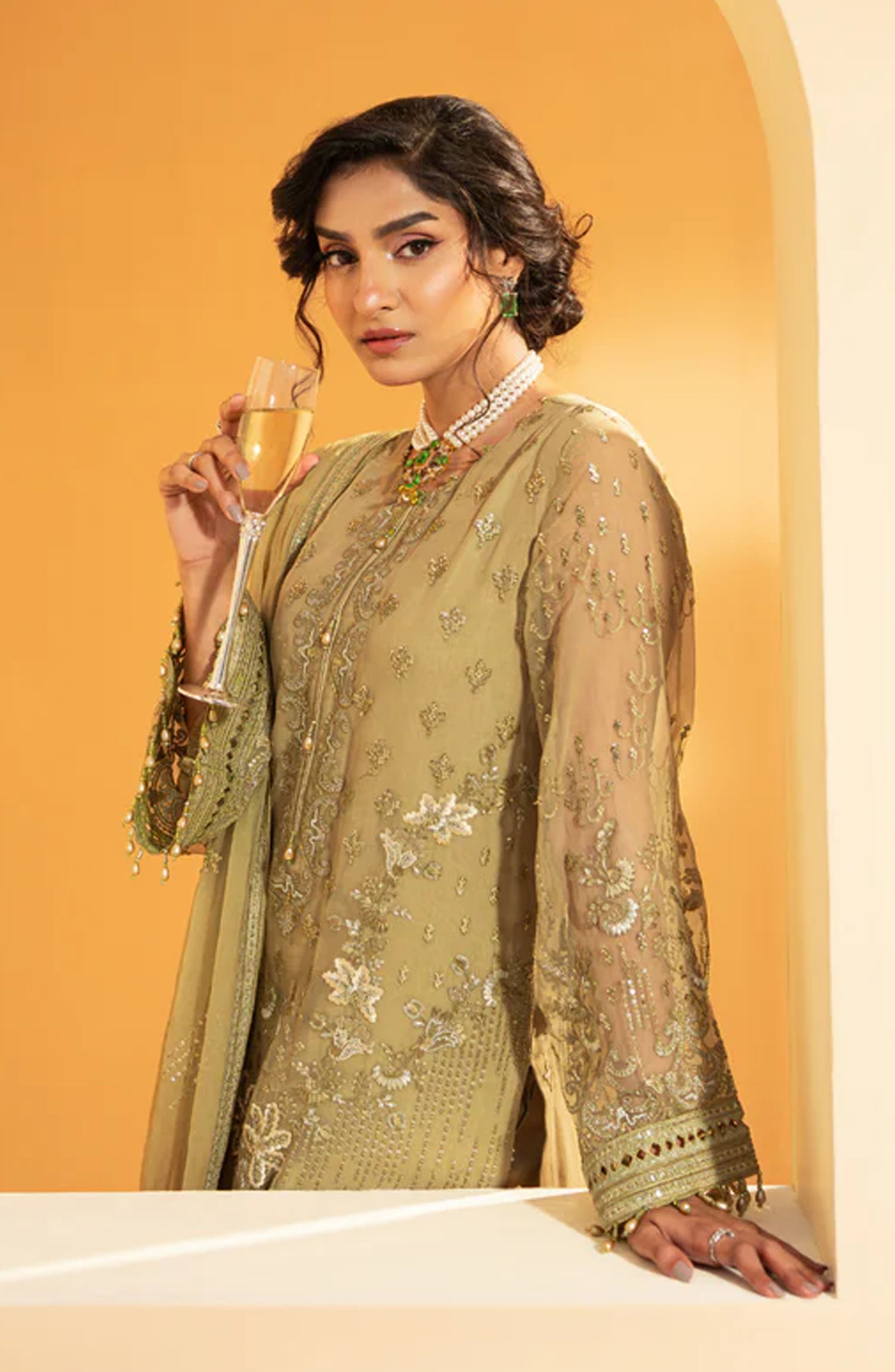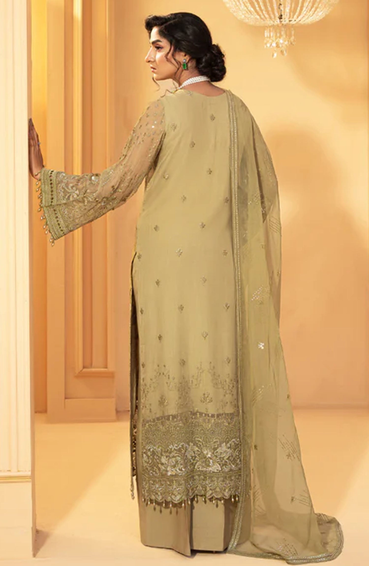 Nikhaar by Lavish Premium Embroidered Chiffon Unstitched 3 Piece Suit - Akaroa - LP25NIK - Golden - Formal Collection