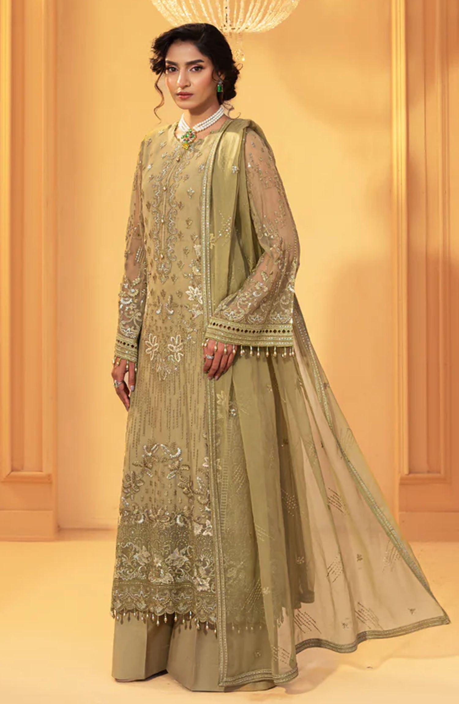 Home Nikhaar by Lavish Premium Embroidered Chiffon Unstitched 3 Piece Suit - Akaroa - LP25NIK - Golden - Formal Collection