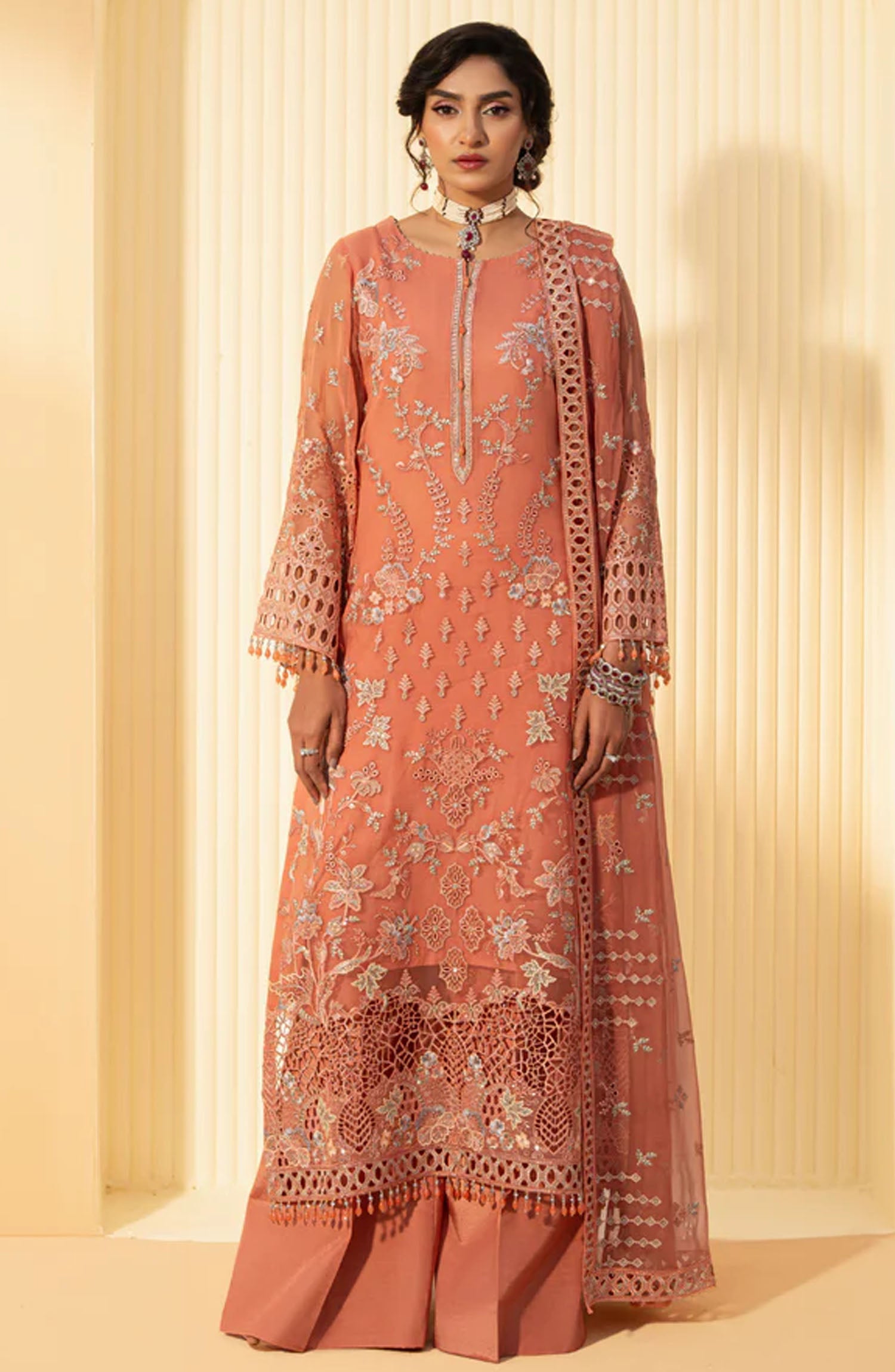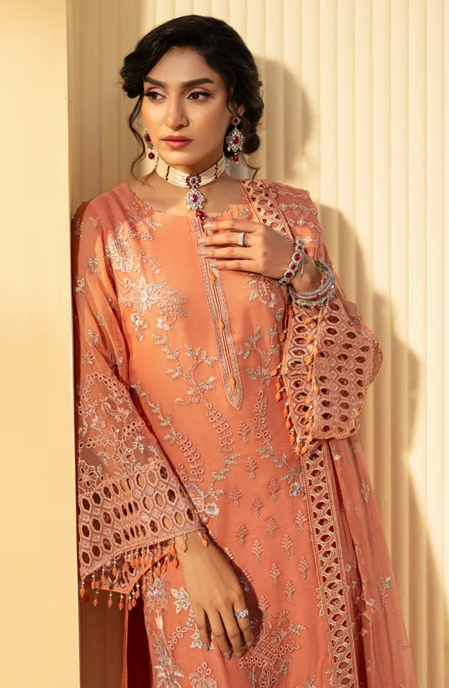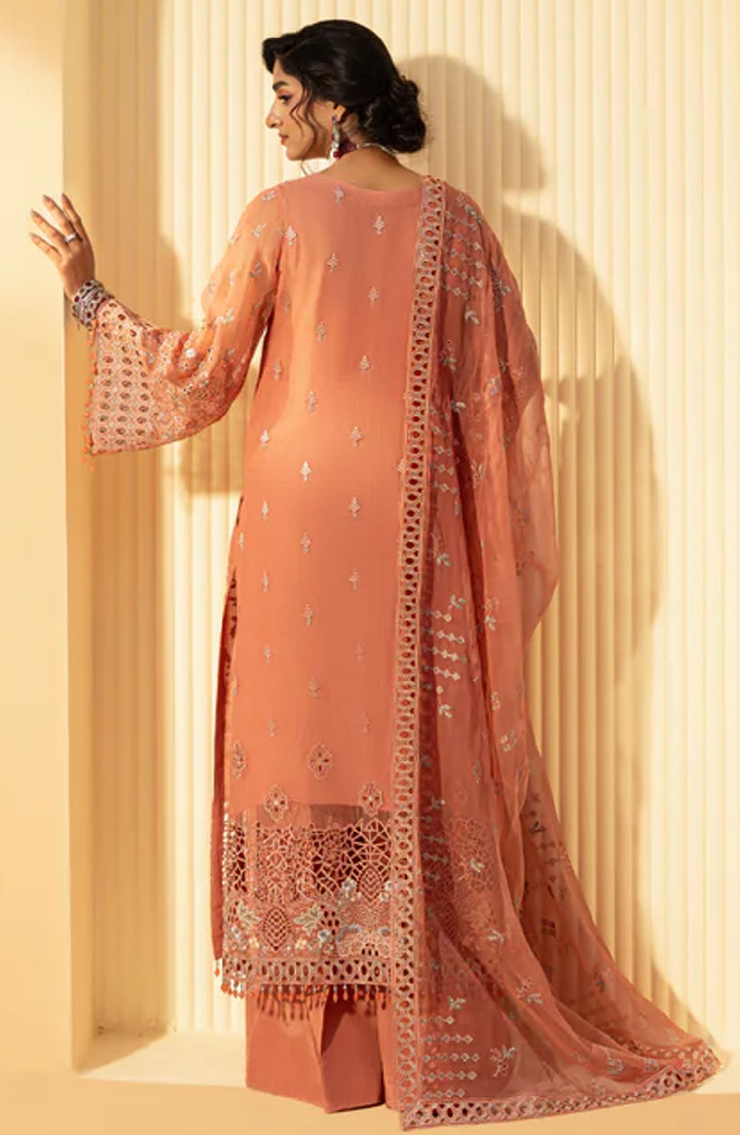 Nikhaar by Lavish Premium Embroidered Chiffon Unstitched 3 Piece Suit - Petite Orchid - LP25NIK - Peach - Formal Collection