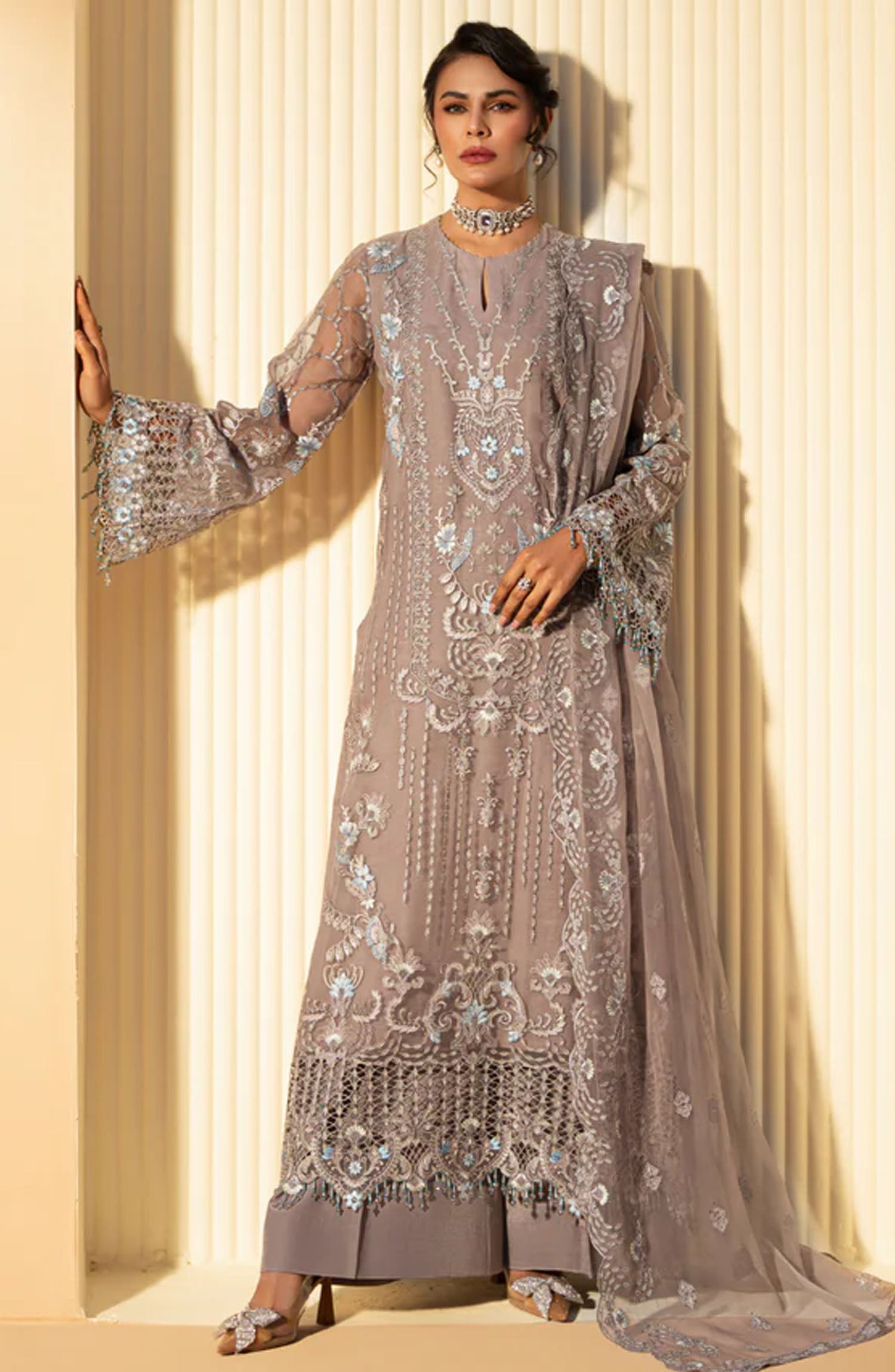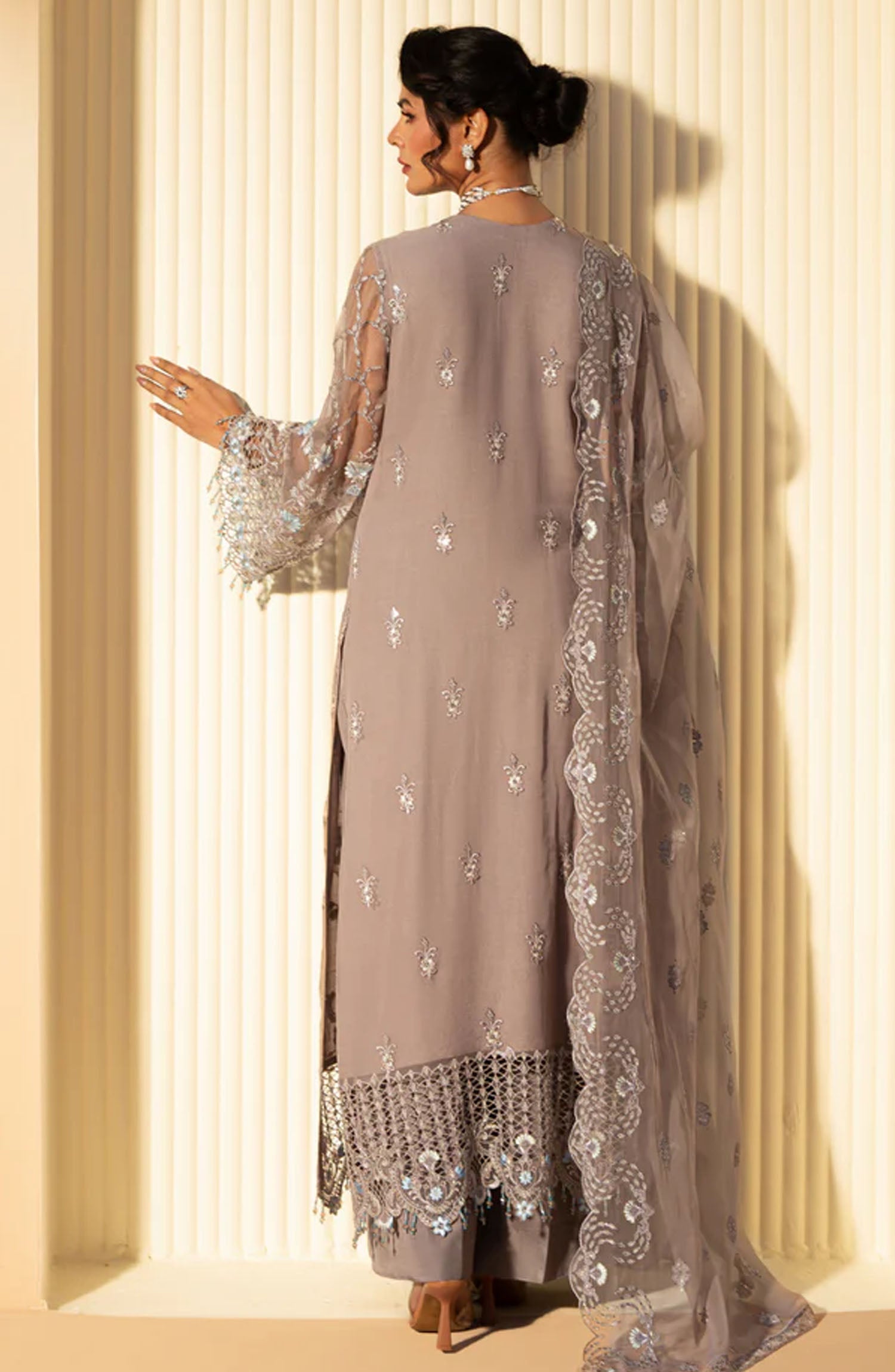 Nikhaar by Lavish Premium Embroidered Chiffon Unstitched 3 Piece Suit - Pharlap - LP25NIK - Grey - Formal Collection