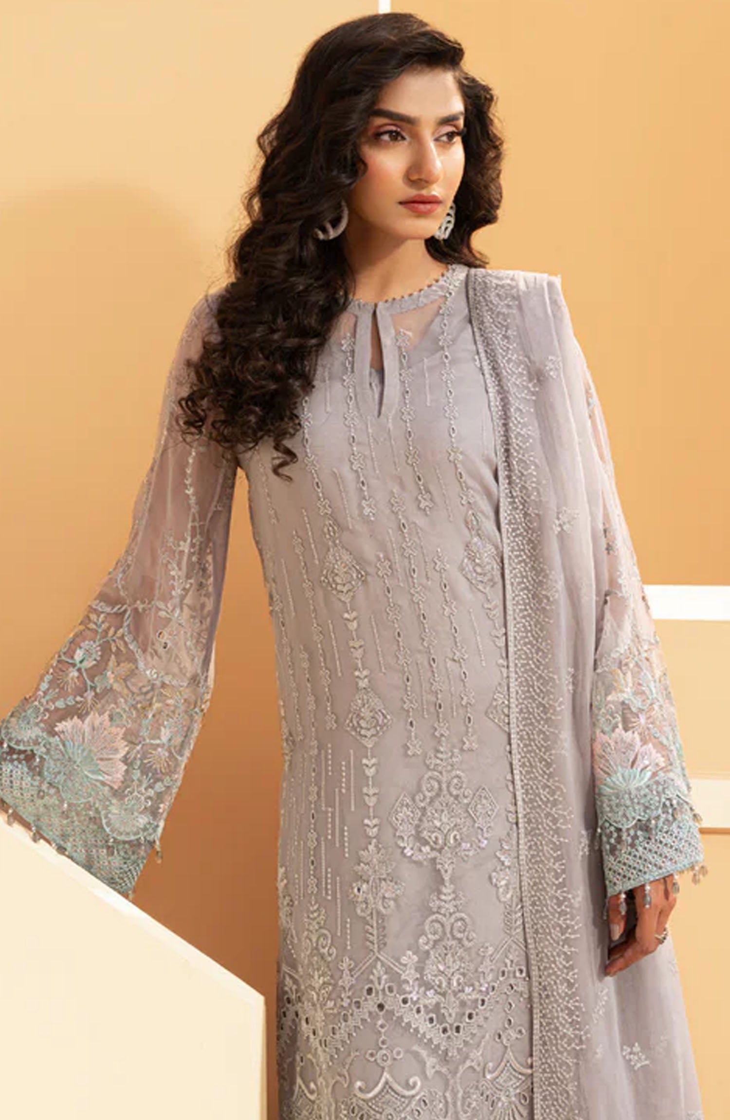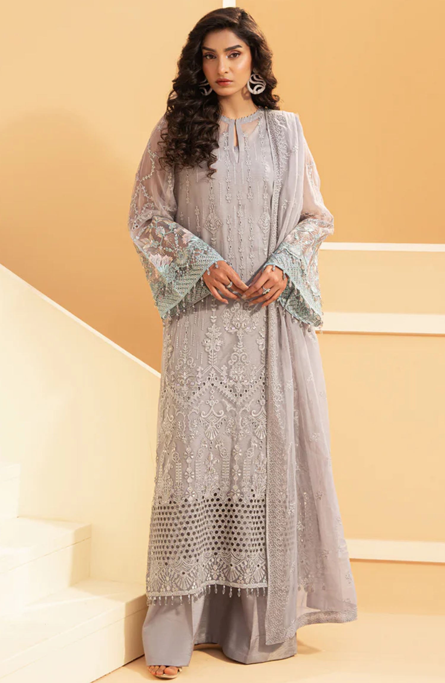 Nikhaar by Lavish Premium Embroidered Chiffon Unstitched 3 Piece Suit - Zinnwaldite - LP25NIK - Grey - Formal Collection