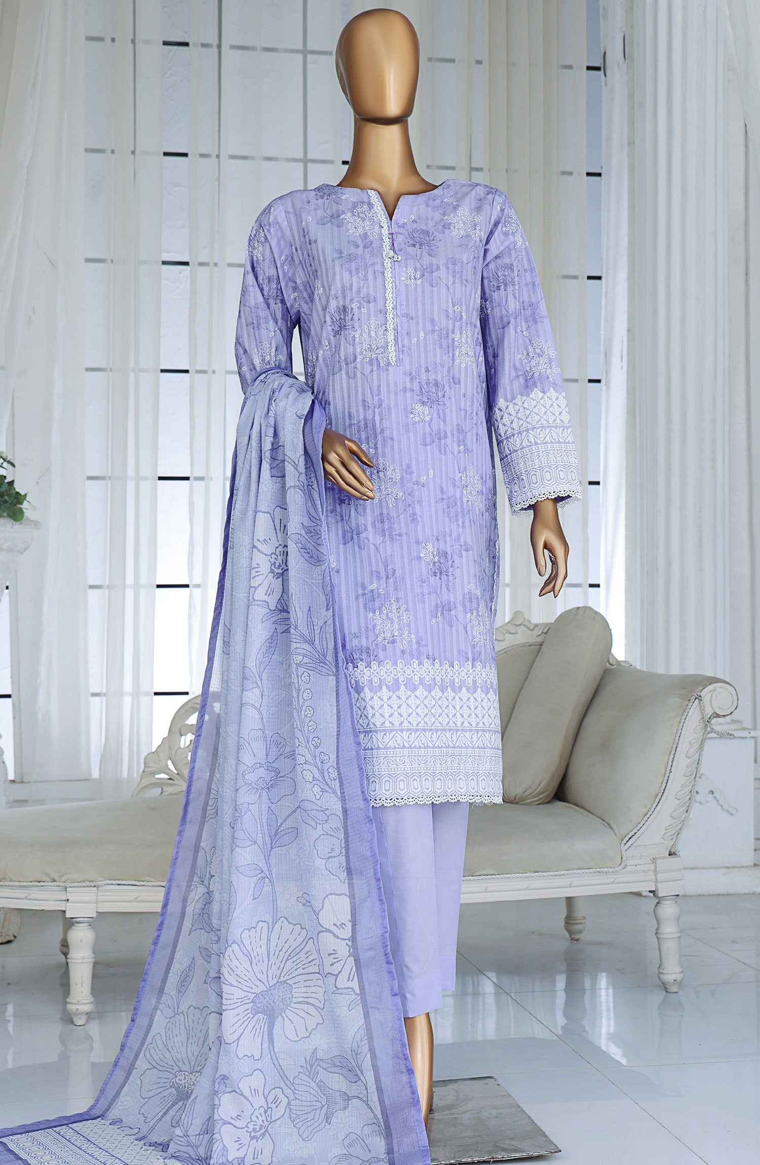The standard style comes as a long-sleeved kameez with dupatta and trouser/shawlar.