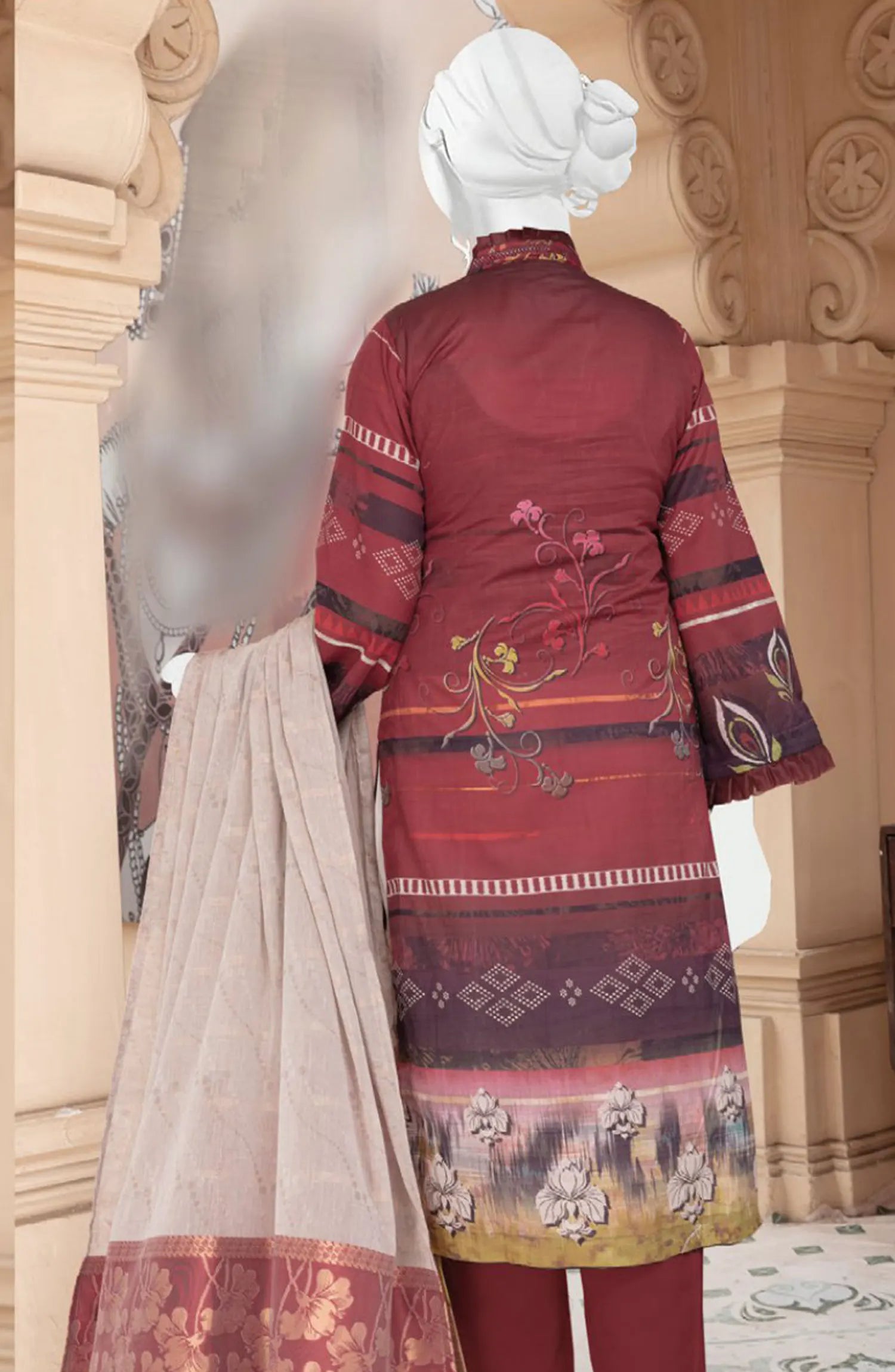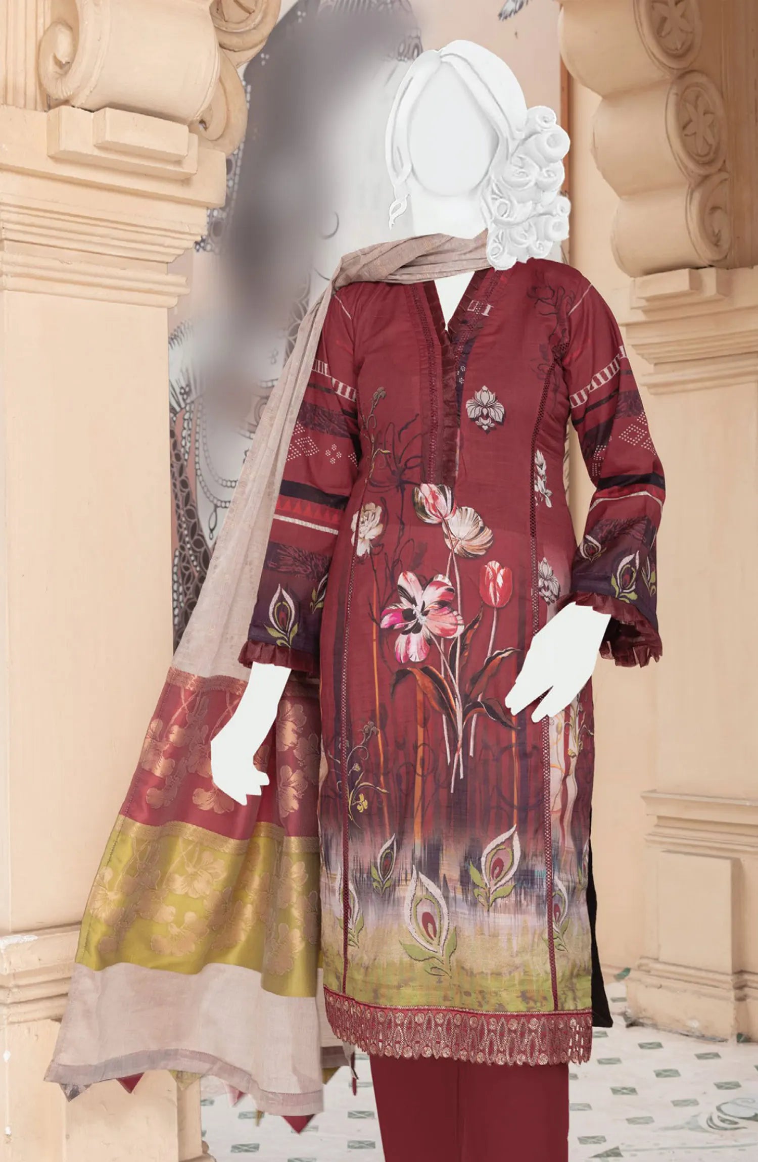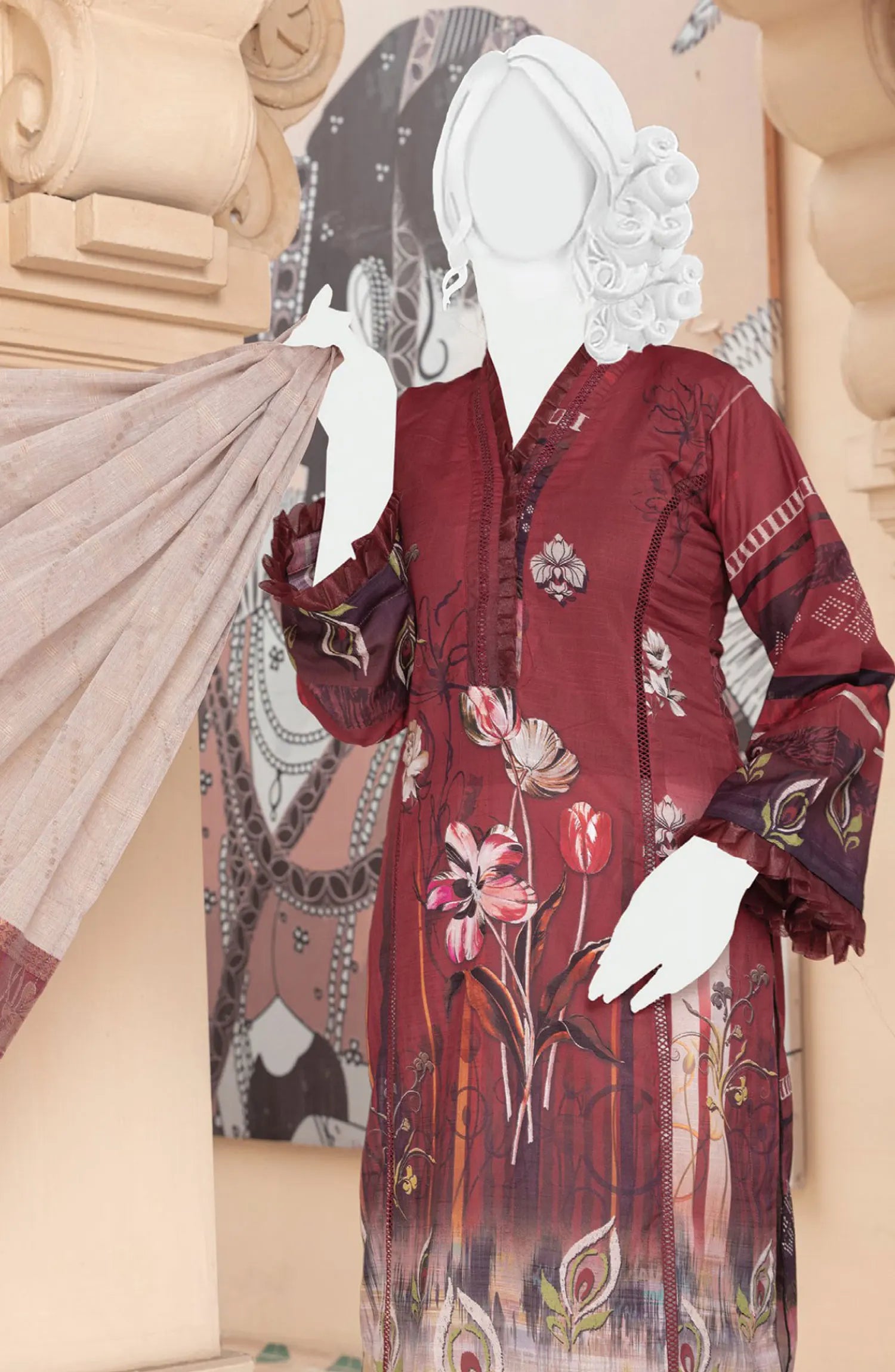 HZ Textile Digital Printed Linen Slub Unstitched 3 Piece Suit - LSD-307 - HZ25LNSL - Red - Winter Collection