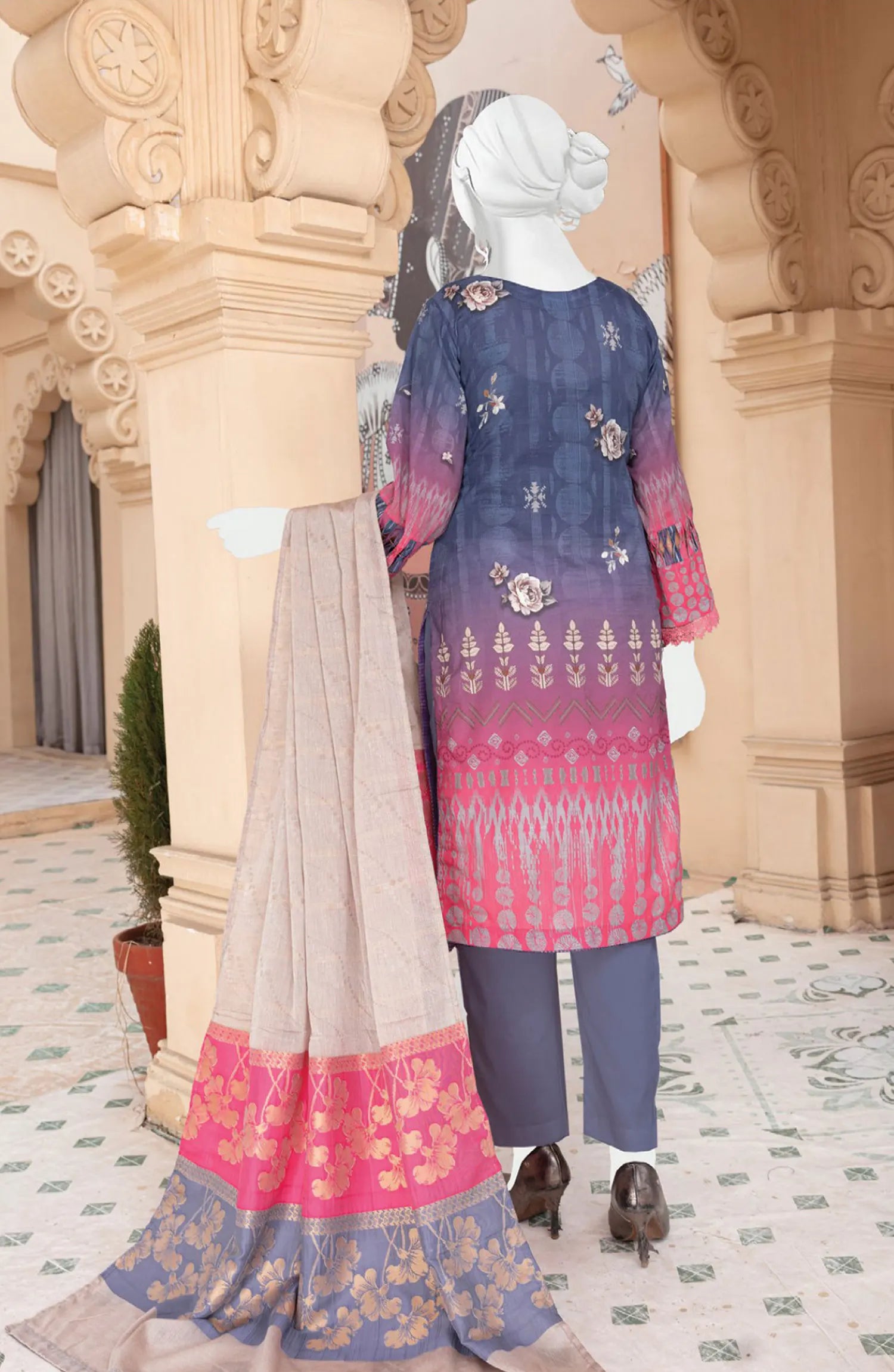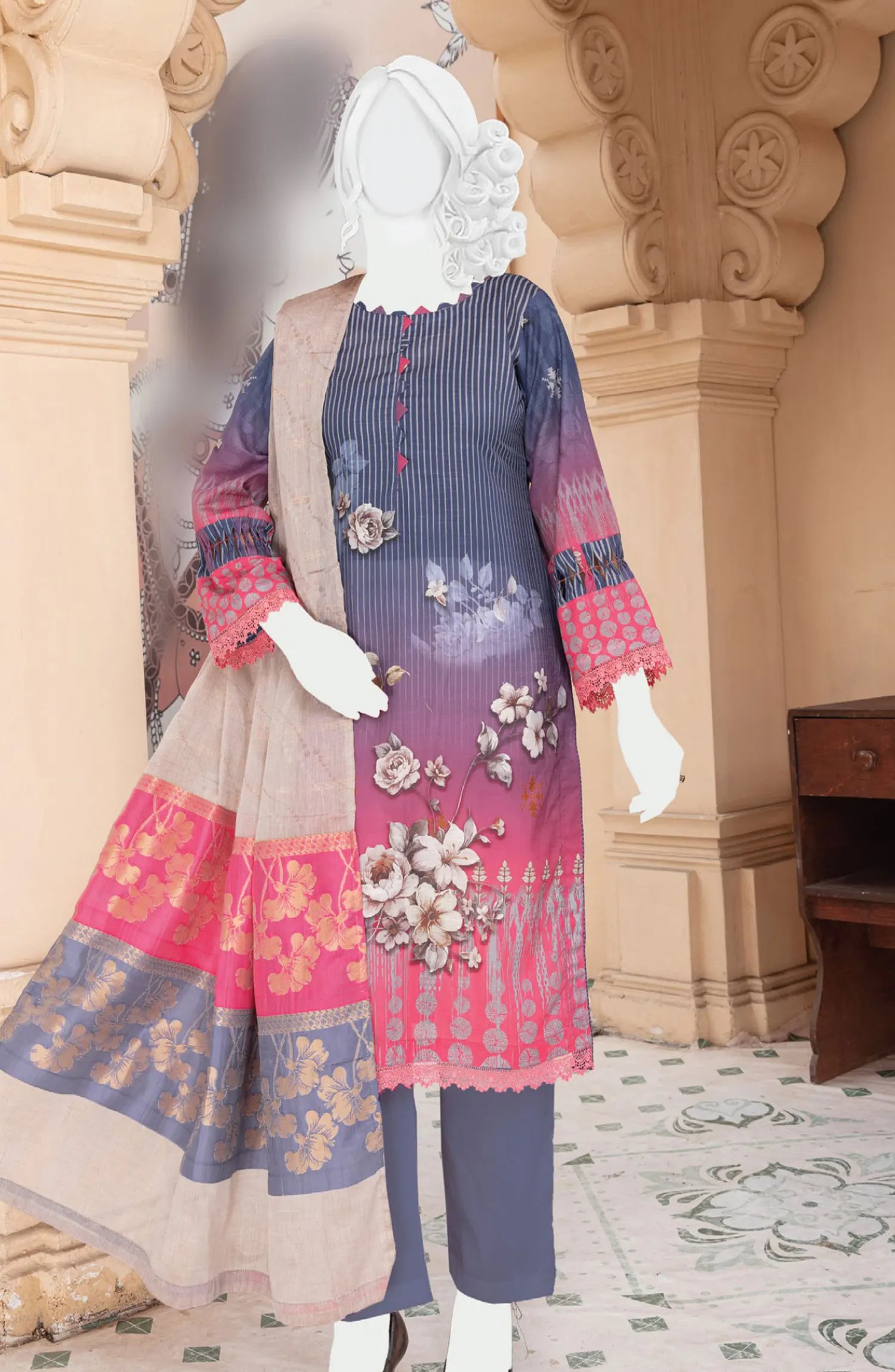 HZ Textile Digital Printed Linen Slub Unstitched 3 Piece Suit - LSD-305 - HZ25LNSL - Pink - Winter Collection
