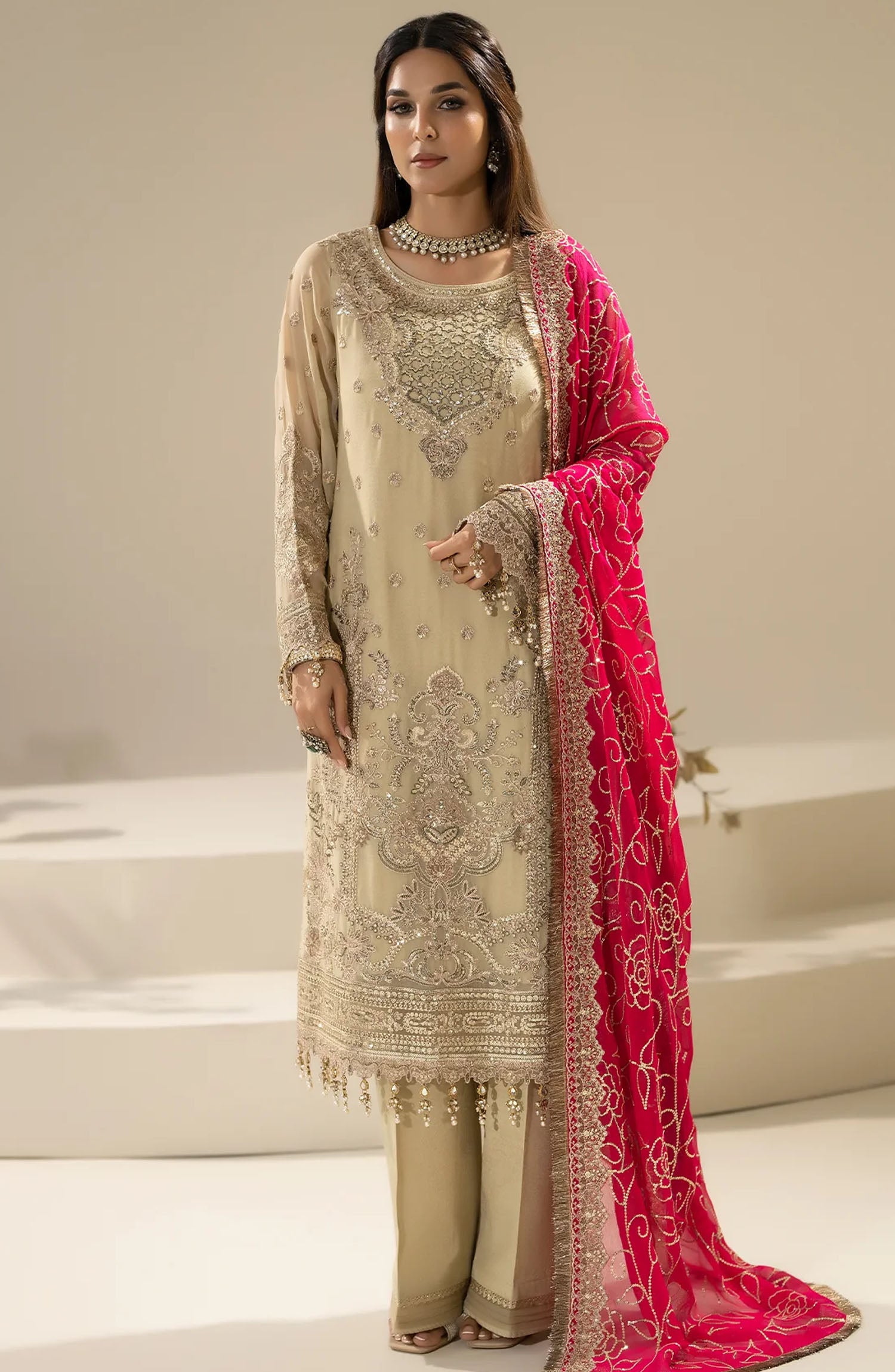 The standard style comes as a long-sleeved kameez with dupatta and trouser/shawlar.