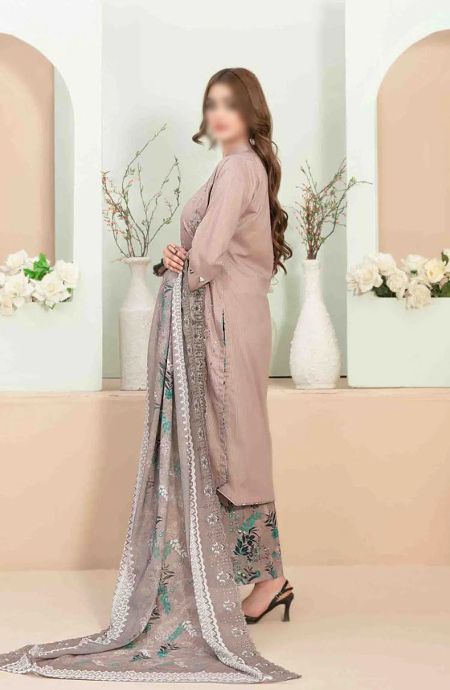 Rua by Casual Lite Embroidered Premium Linen Stitched 3 Piece Suit - D-05 Blush Poem - CL25RU - Pink - Winter Collection