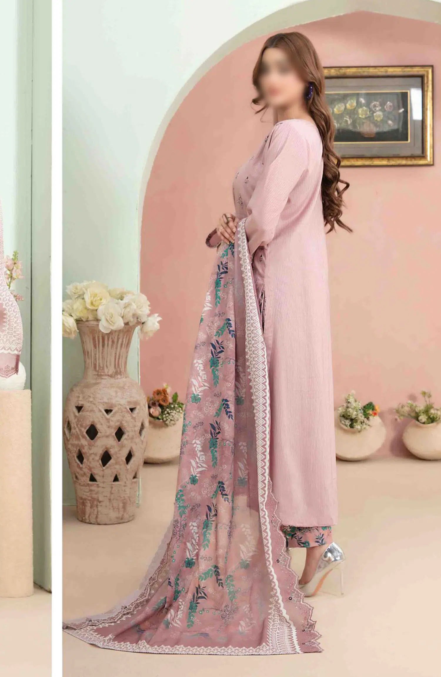 Rua by Casual Lite Embroidered Premium Linen Stitched 3 Piece Suit - D-05 Blush Poem - CL25RU - Pink - Winter Collection