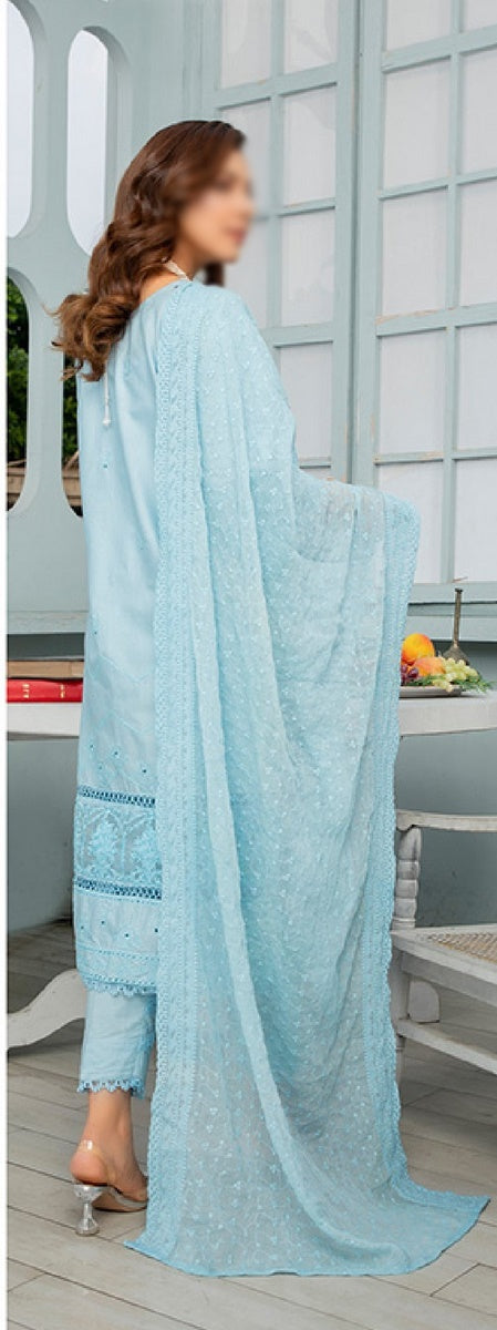 Modest Embroidered Chiffon Stitched 3 Piece Suit - 9825-Blu - MOD25PRF - Blue - Festive Girls Collection