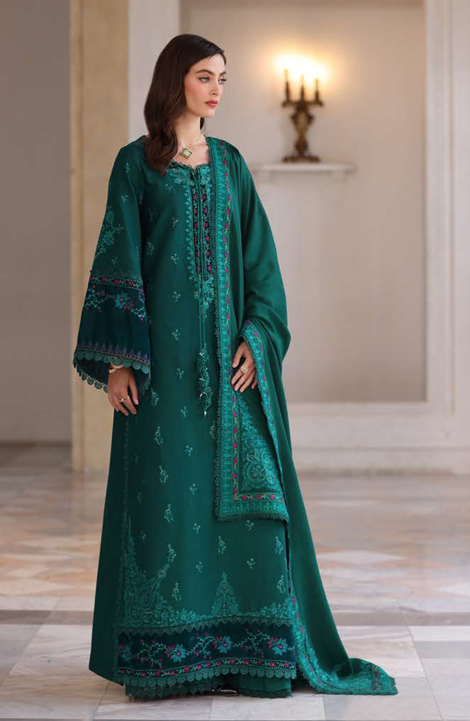 Embroidered khaddar front