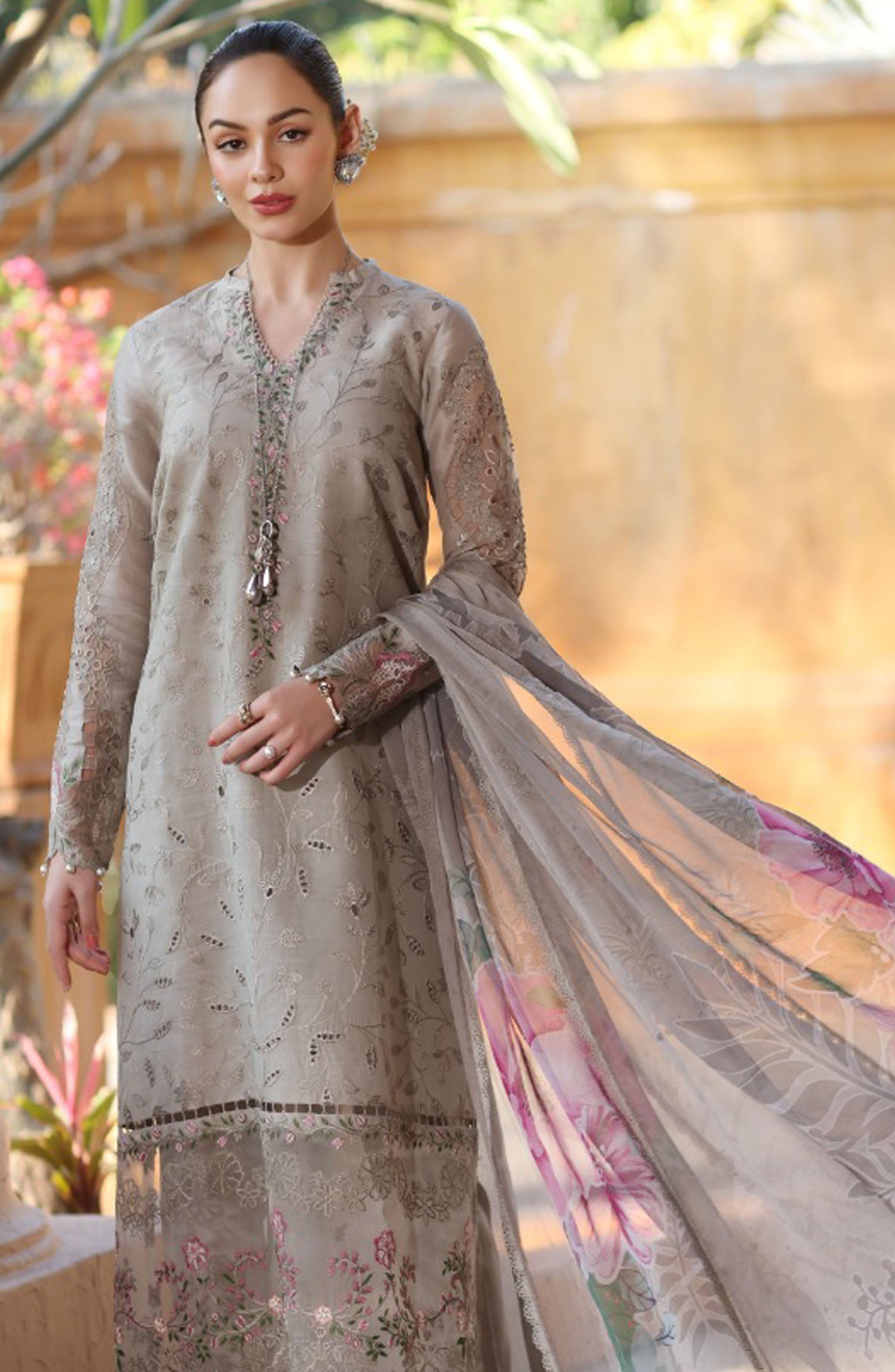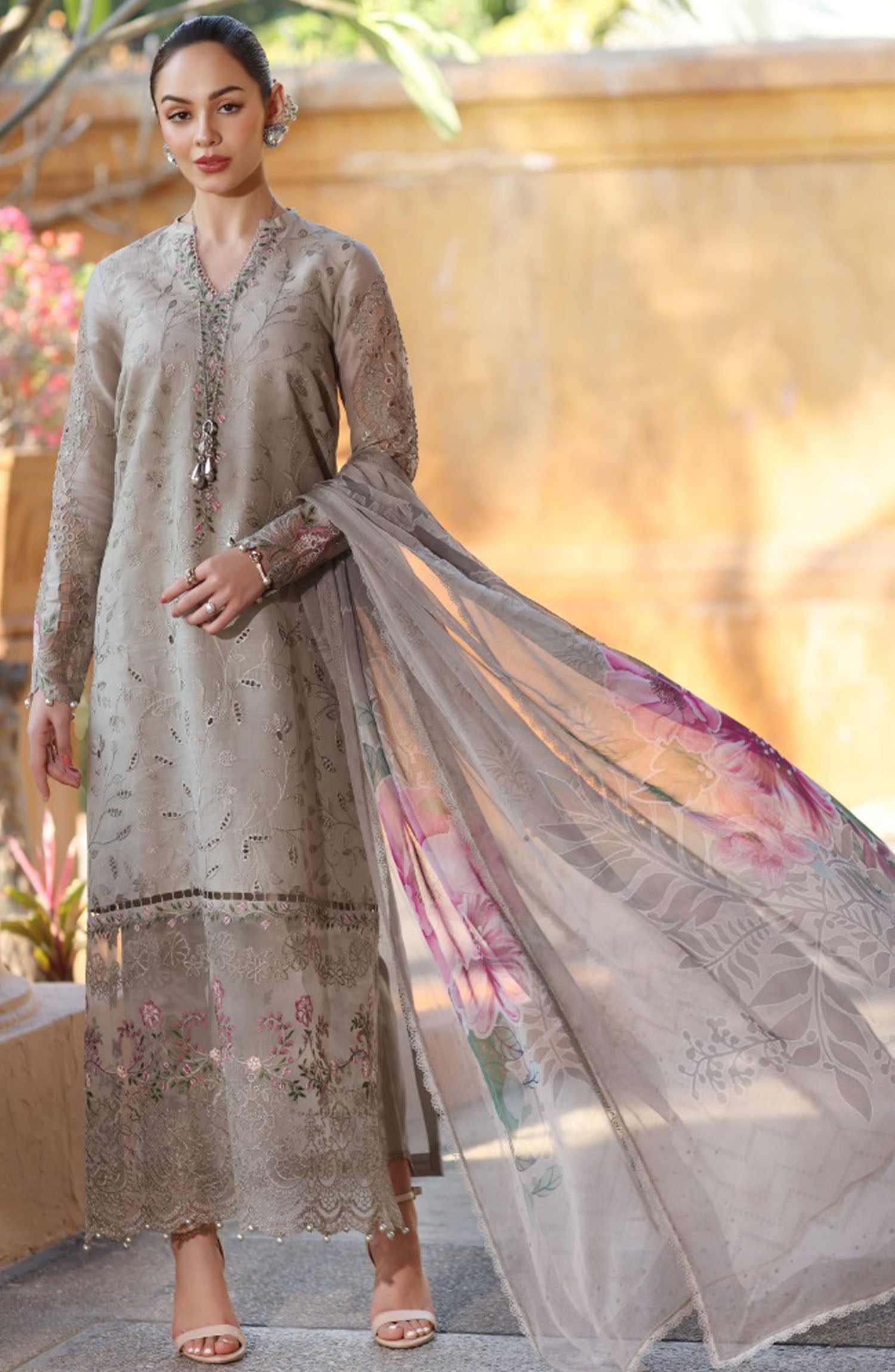 Home Noor by Saadia Asad Embroidered Lawn Unstitched 3 Piece - D-01-B - SA25ELL - Grey - Summer Collection