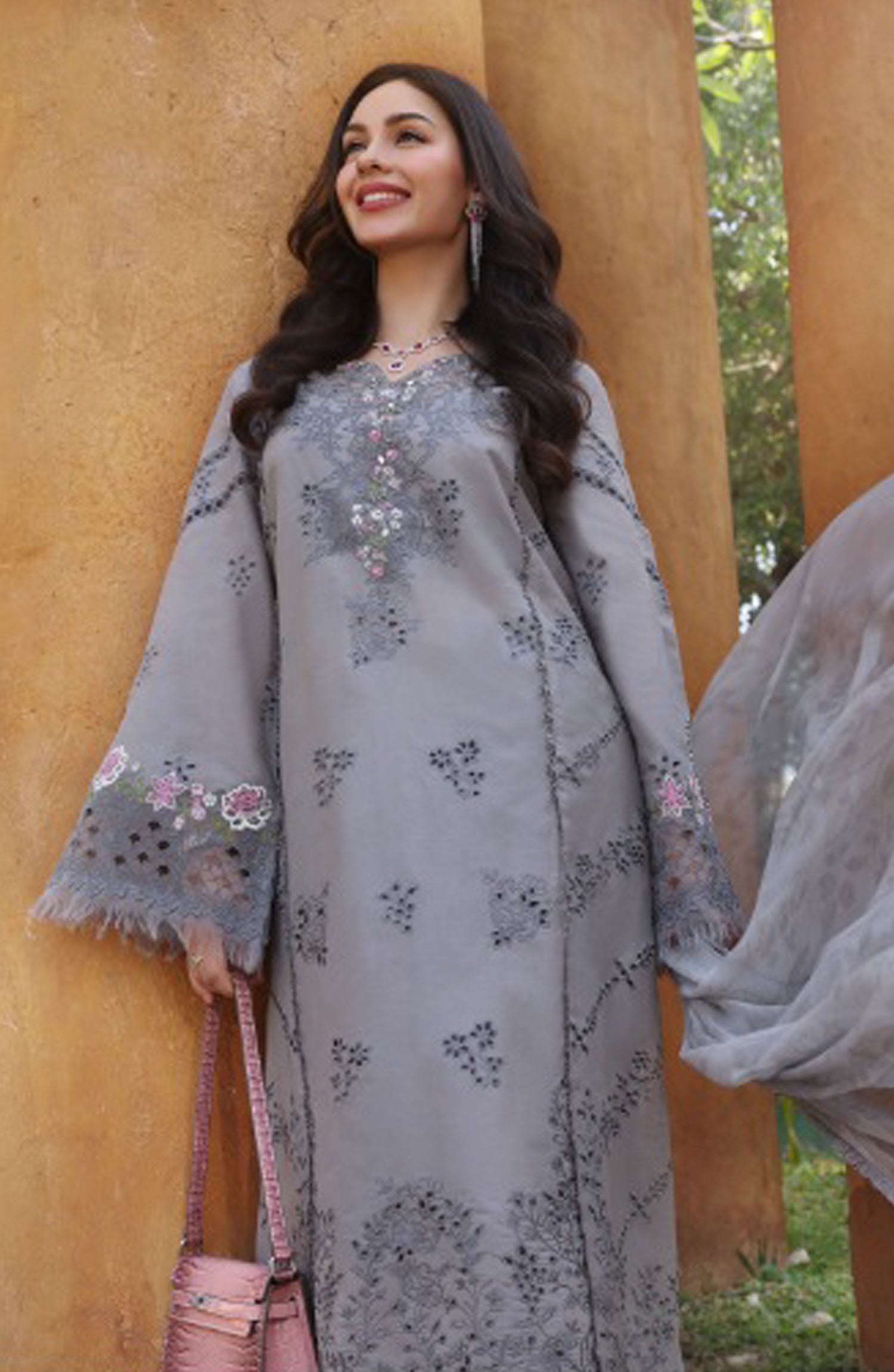 Noor by Saadia Asad Embroidered Lawn Unstitched 3 Piece - D-02-B - SA25ELL - Grey - Summer Collection