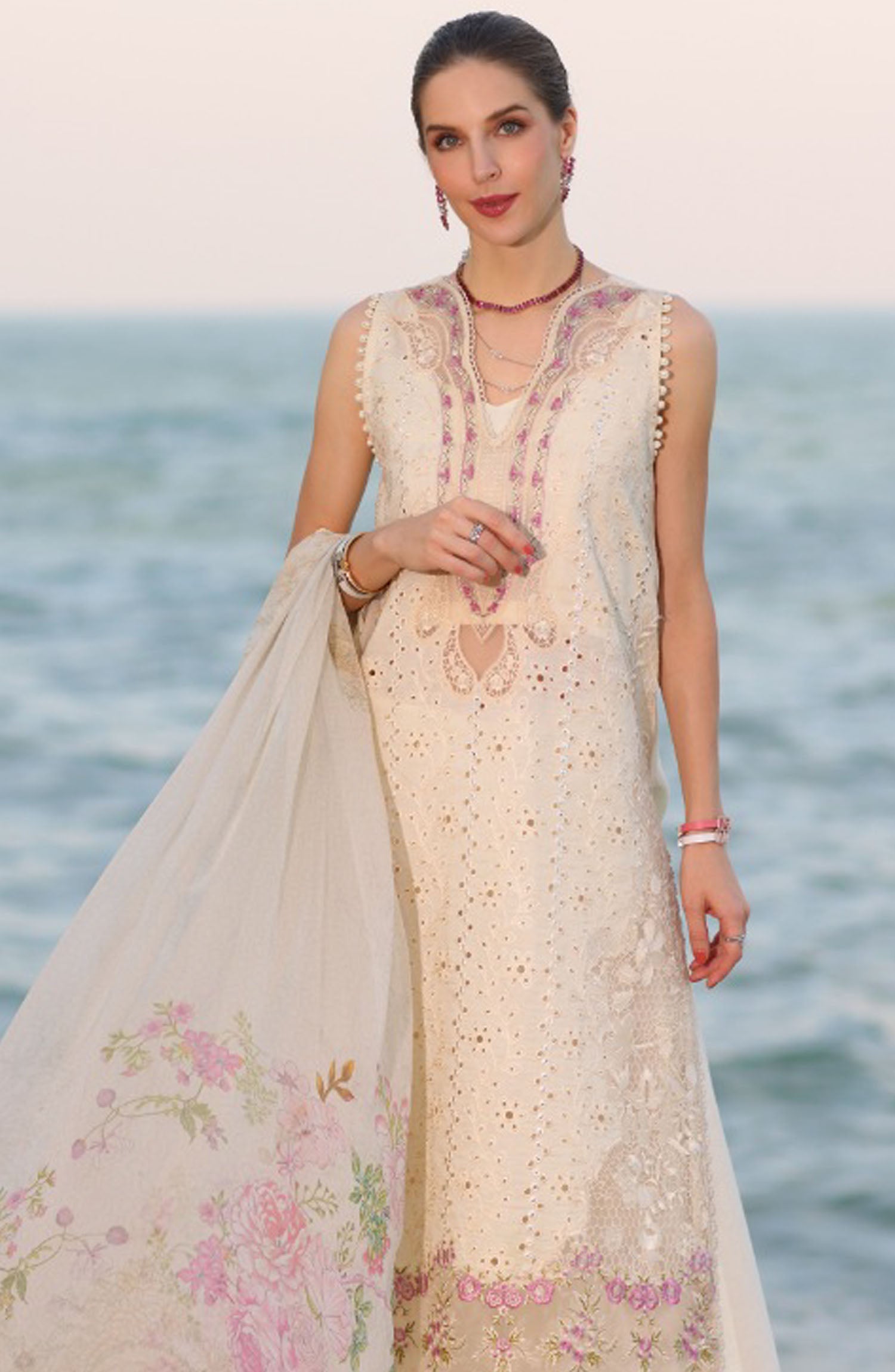 Home Noor by Saadia Asad Embroidered Lawn Unstitched 3 Piece - D-03-A - SA25ELL - Off White - Summer Collection