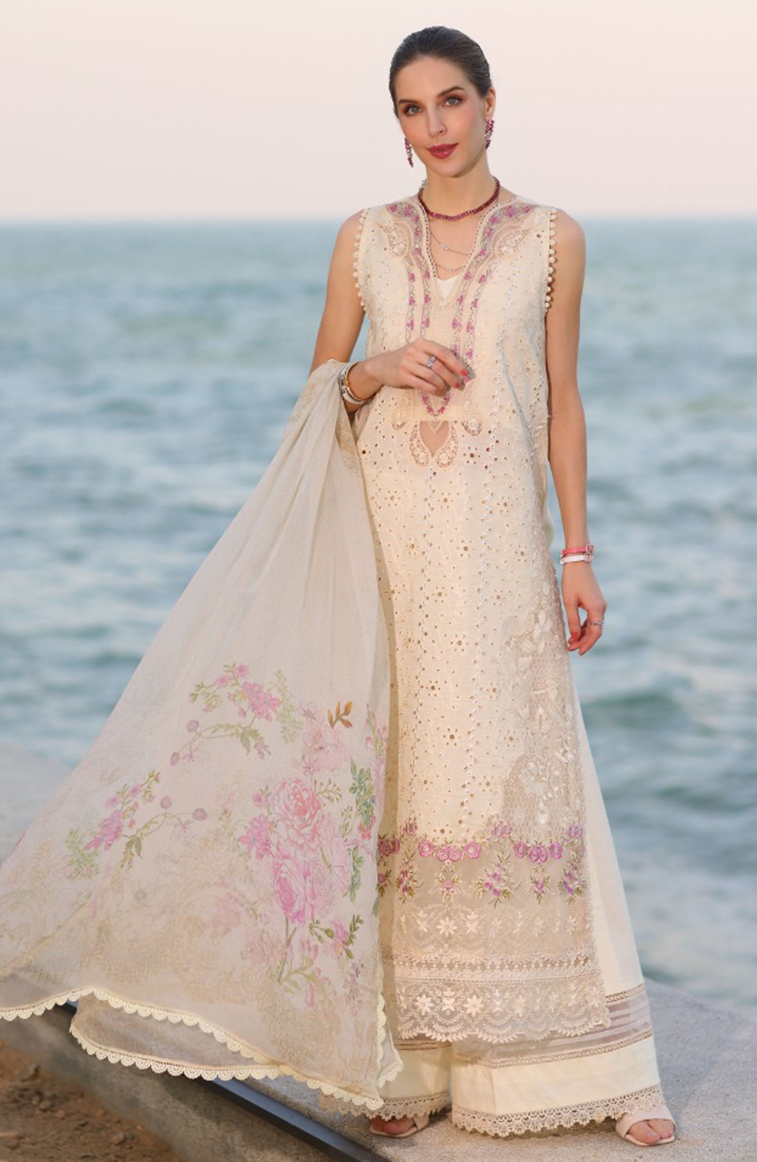 Noor by Saadia Asad Embroidered Lawn Unstitched 3 Piece - D-03-A - SA25ELL - Off White - Summer Collection