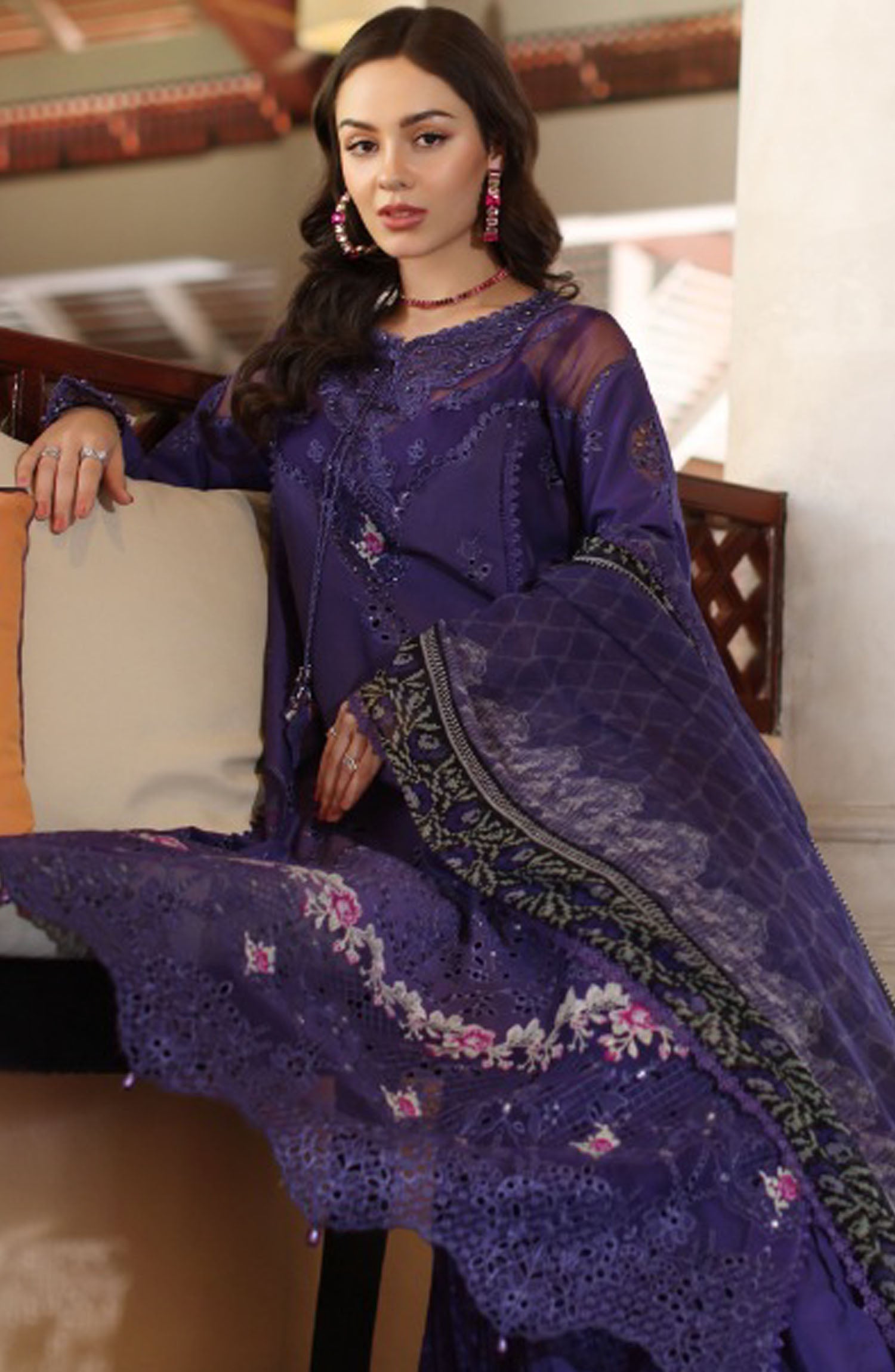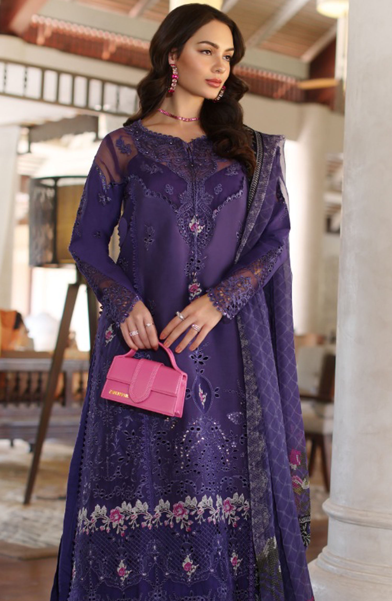 Noor by Saadia Asad Embroidered Lawn Unstitched 3 Piece - D-04-B - SA25ELL - Purple - Summer Collection