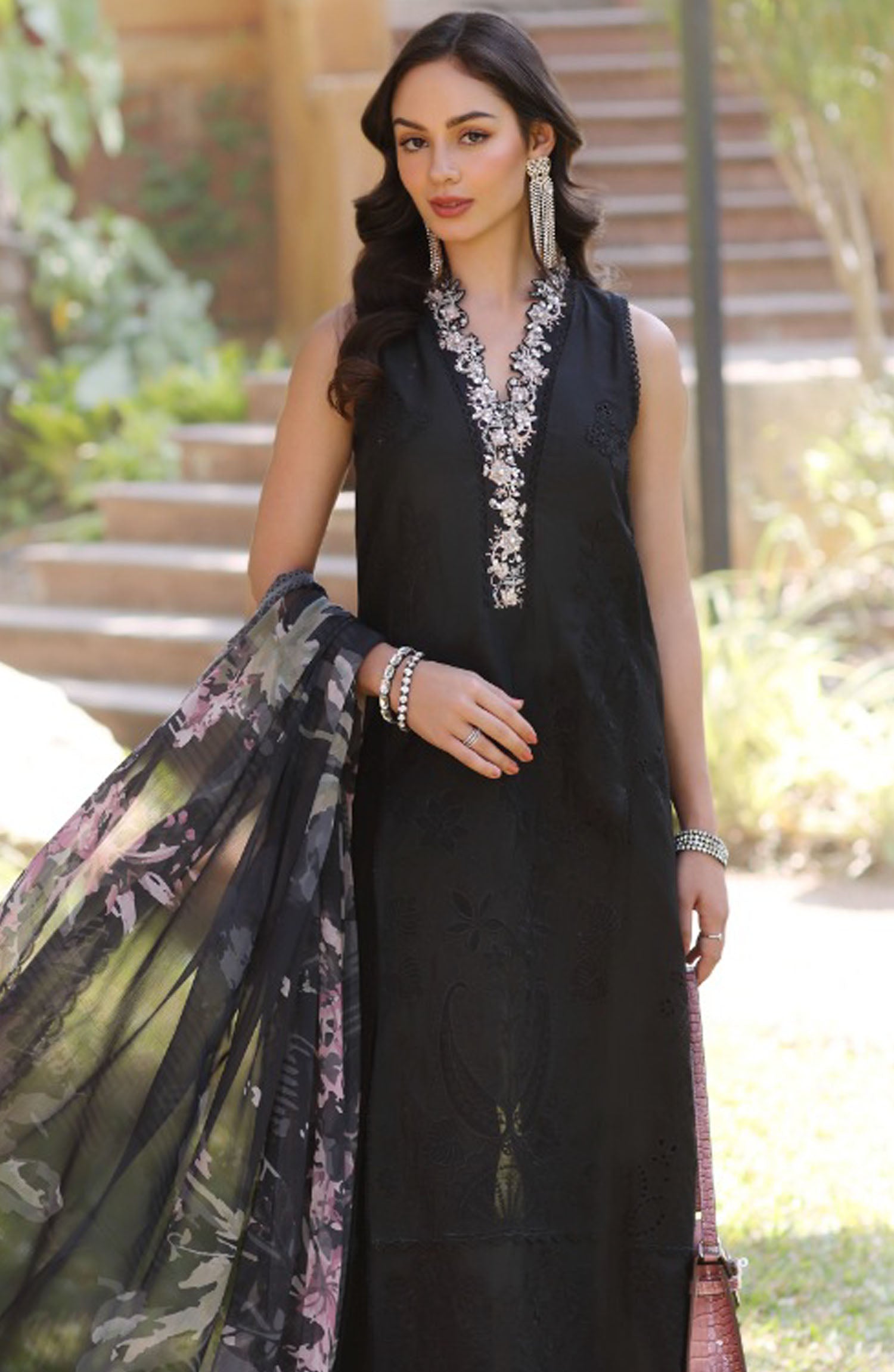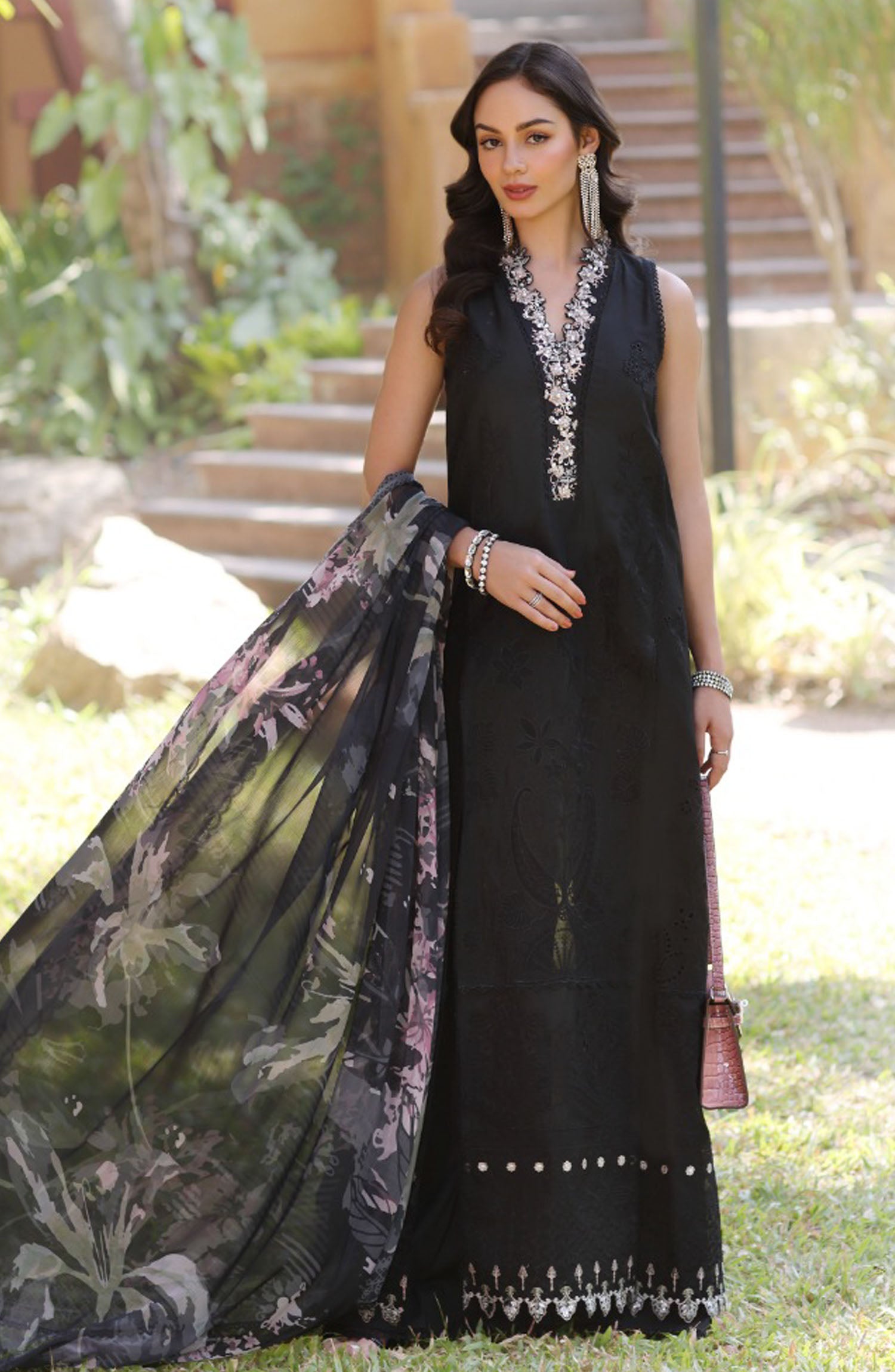Noor by Saadia Asad Embroidered Lawn Unstitched 3 Piece - D-06-A - SA25ELL - Black - Summer Collection