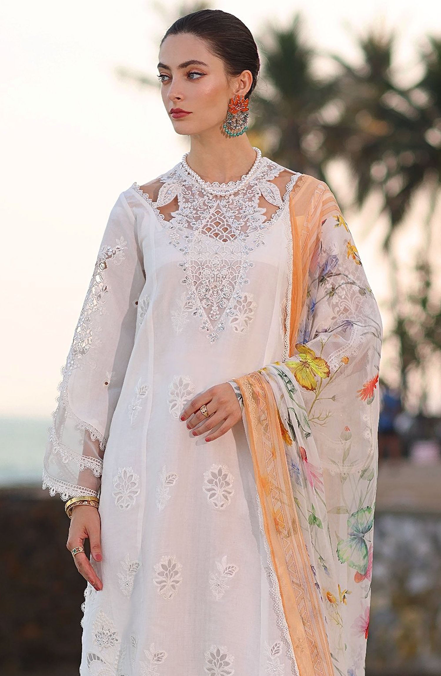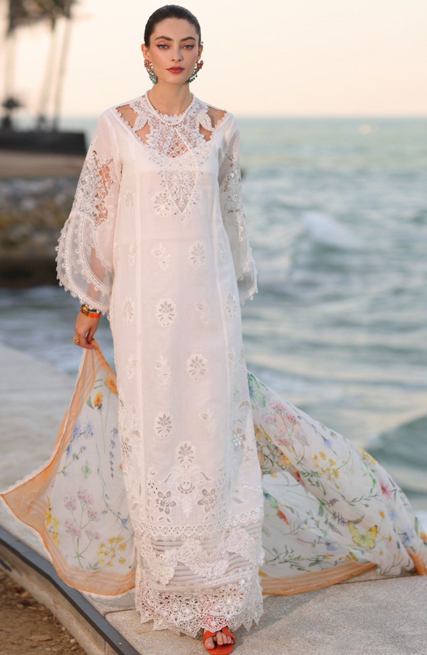 Home Noor by Saadia Asad Embroidered Lawn Unstitched 3 Piece - D-09-B - SA25ELL - White - Summer Collection