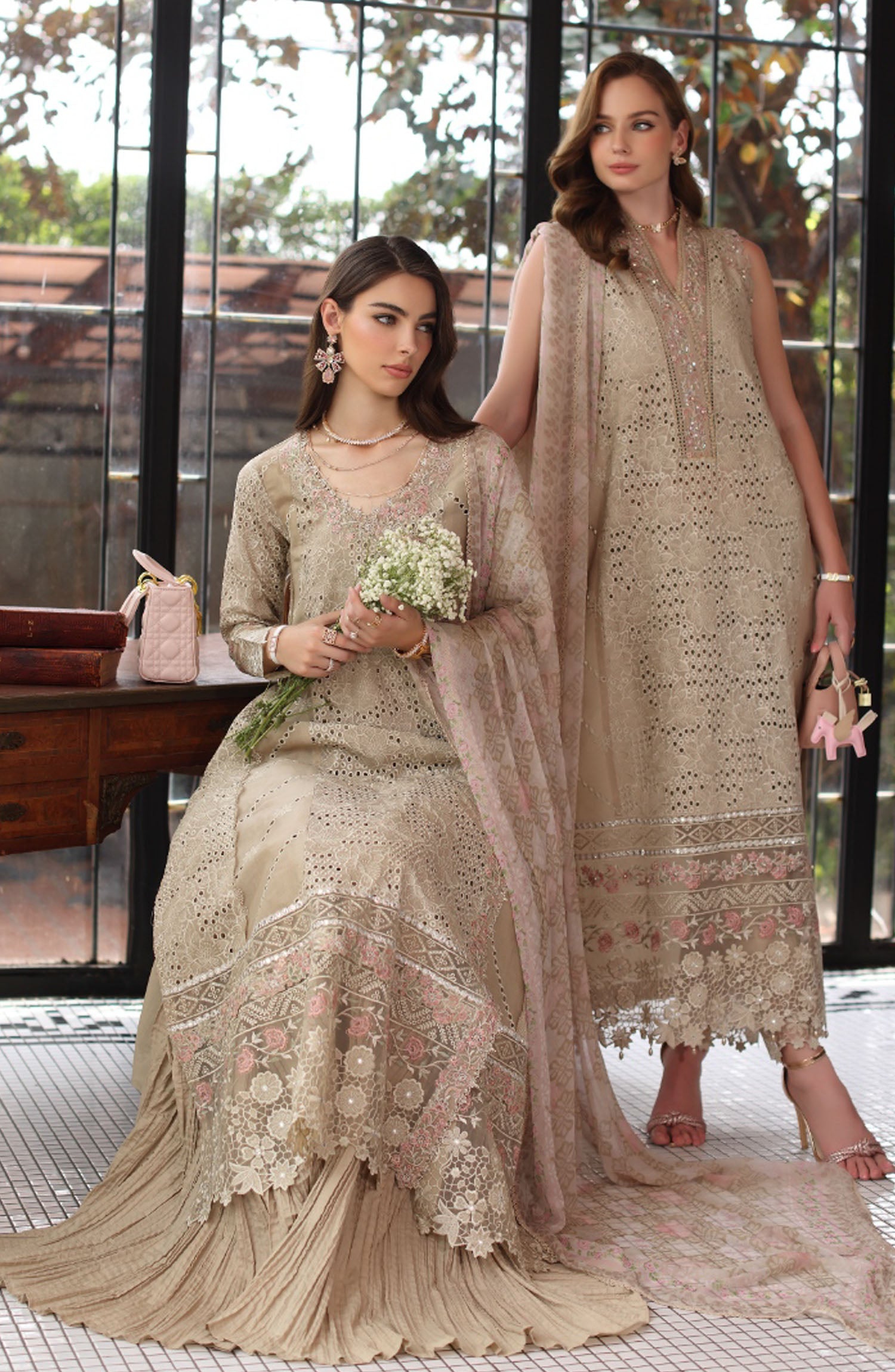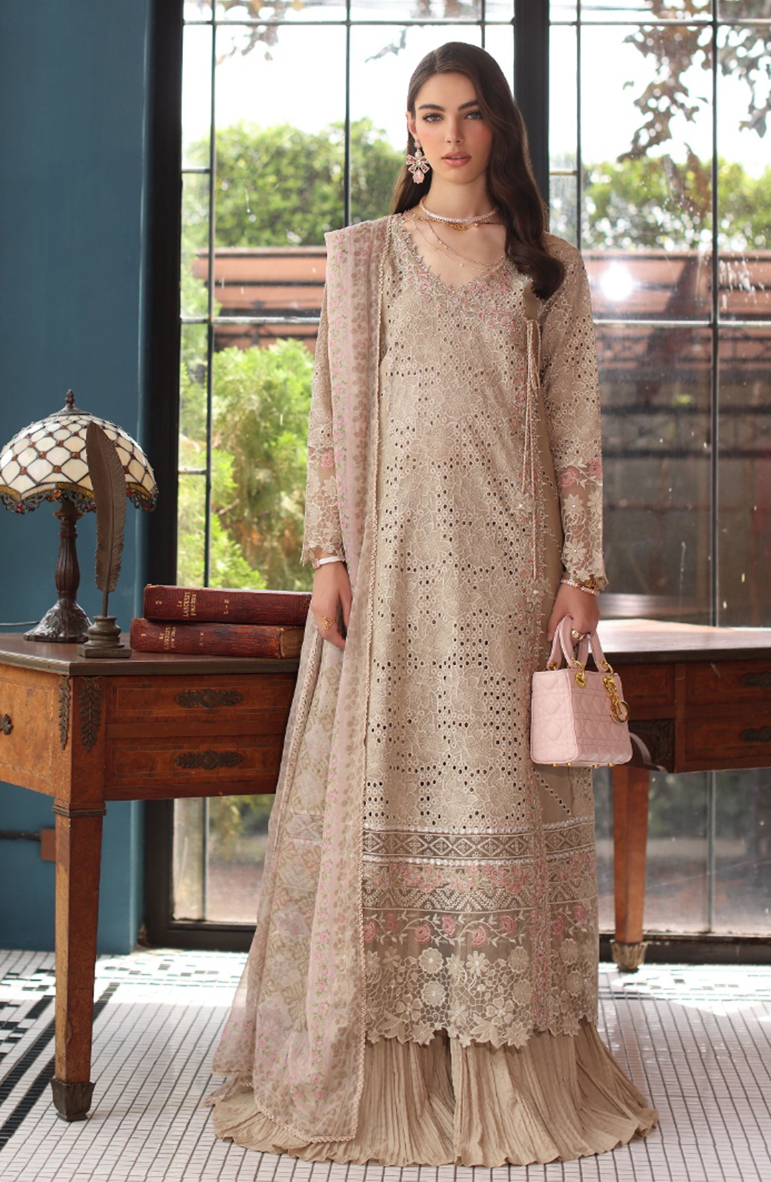 Noor by Saadia Asad Embroidered Lawn Unstitched 3 Piece Suit - D-01 - SA25ELSL - Fawn - Eid Collection