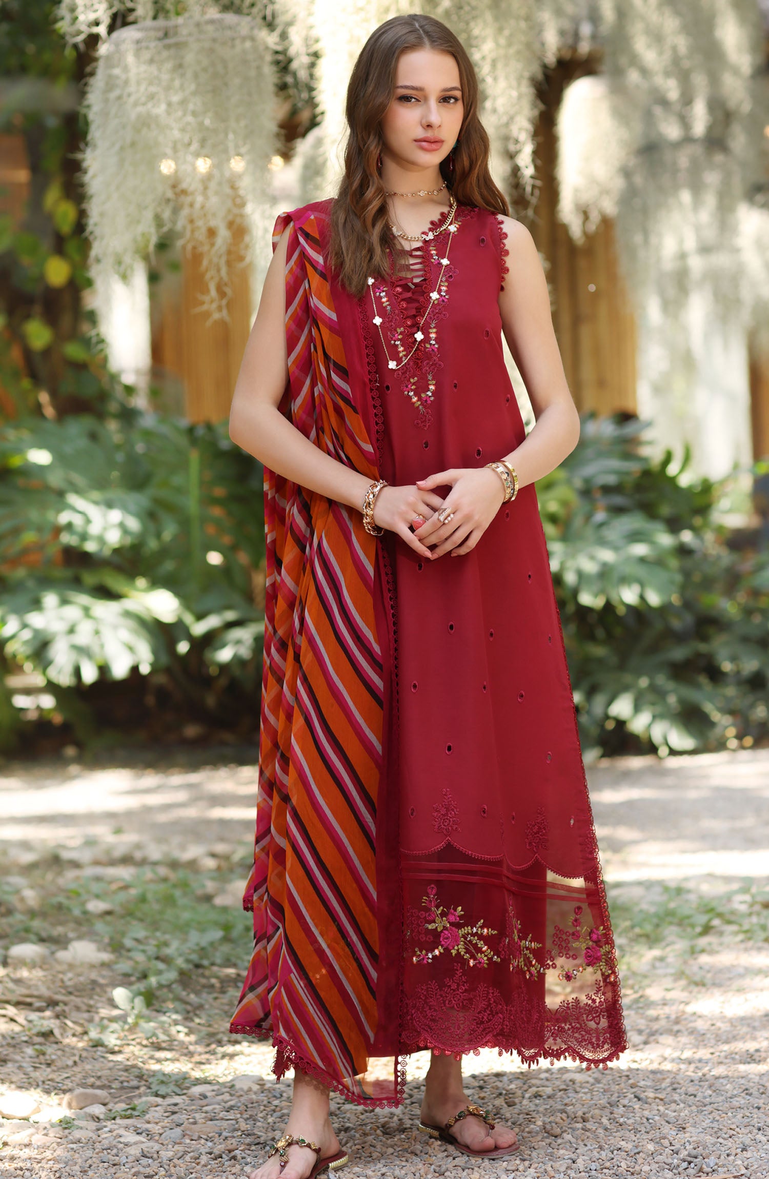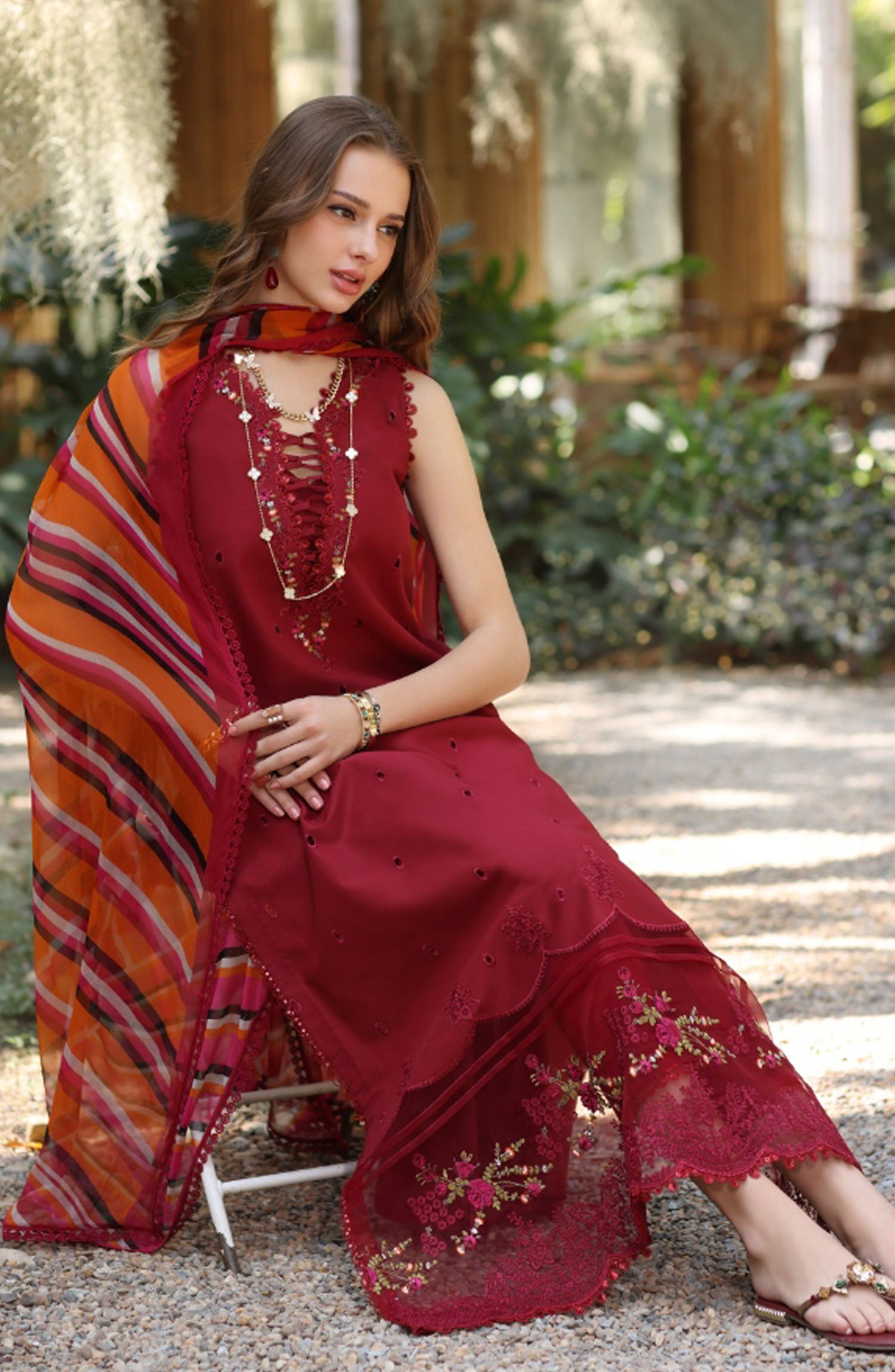 Noor by Saadia Asad Embroidered Lawn Unstitched 3 Piece Suit - D-03 B - SA25NELP - Red - Summer Collection