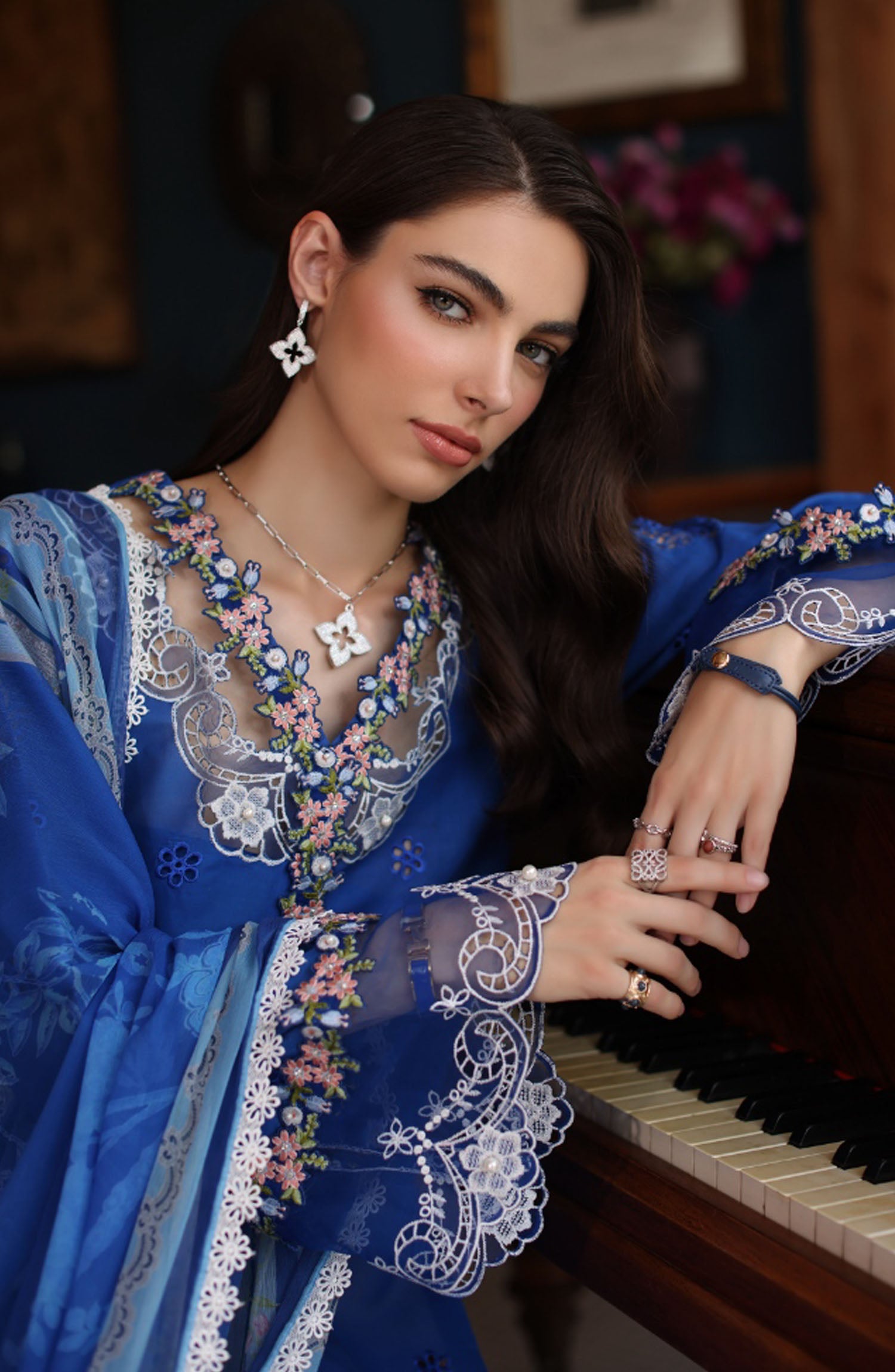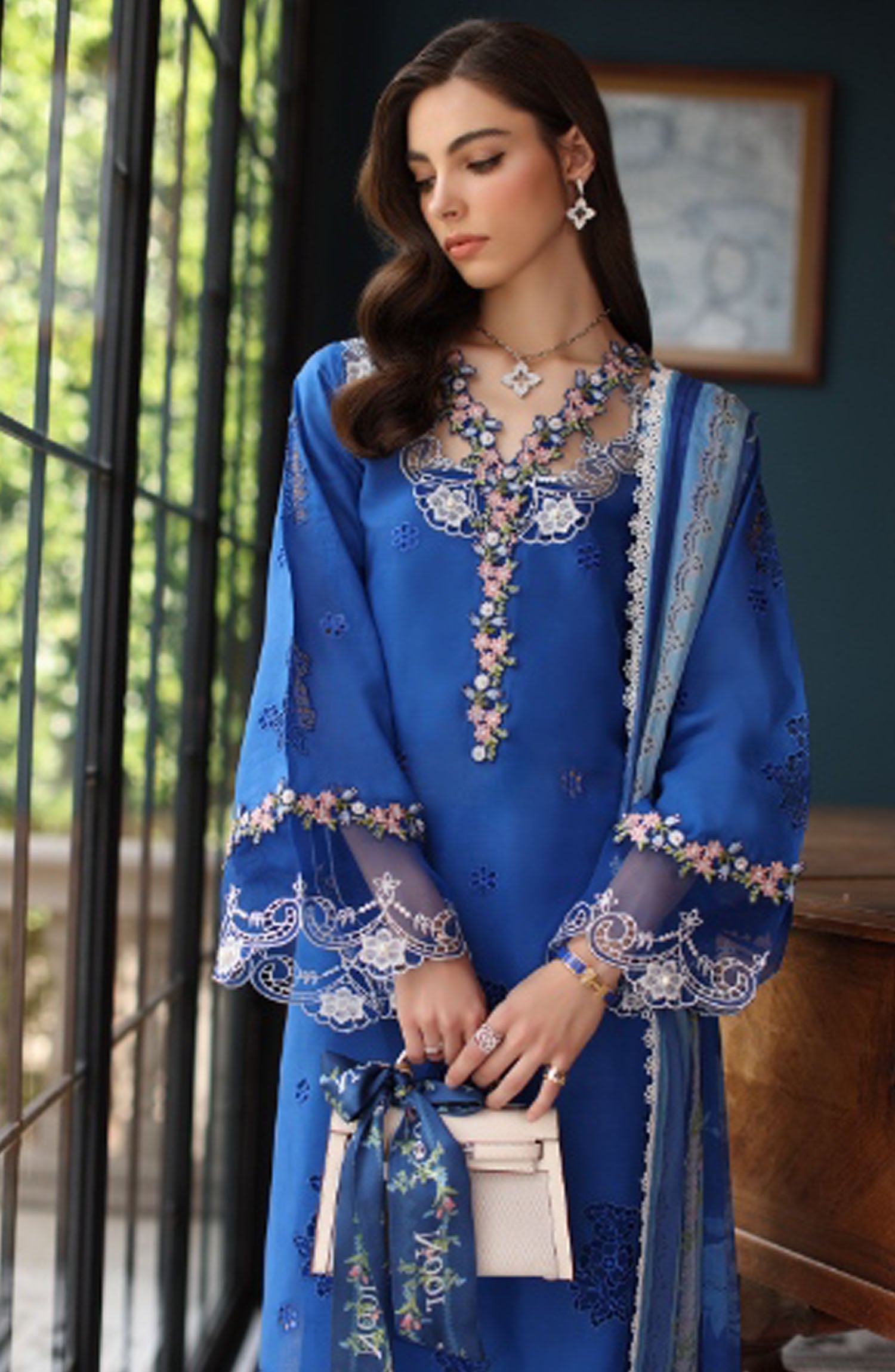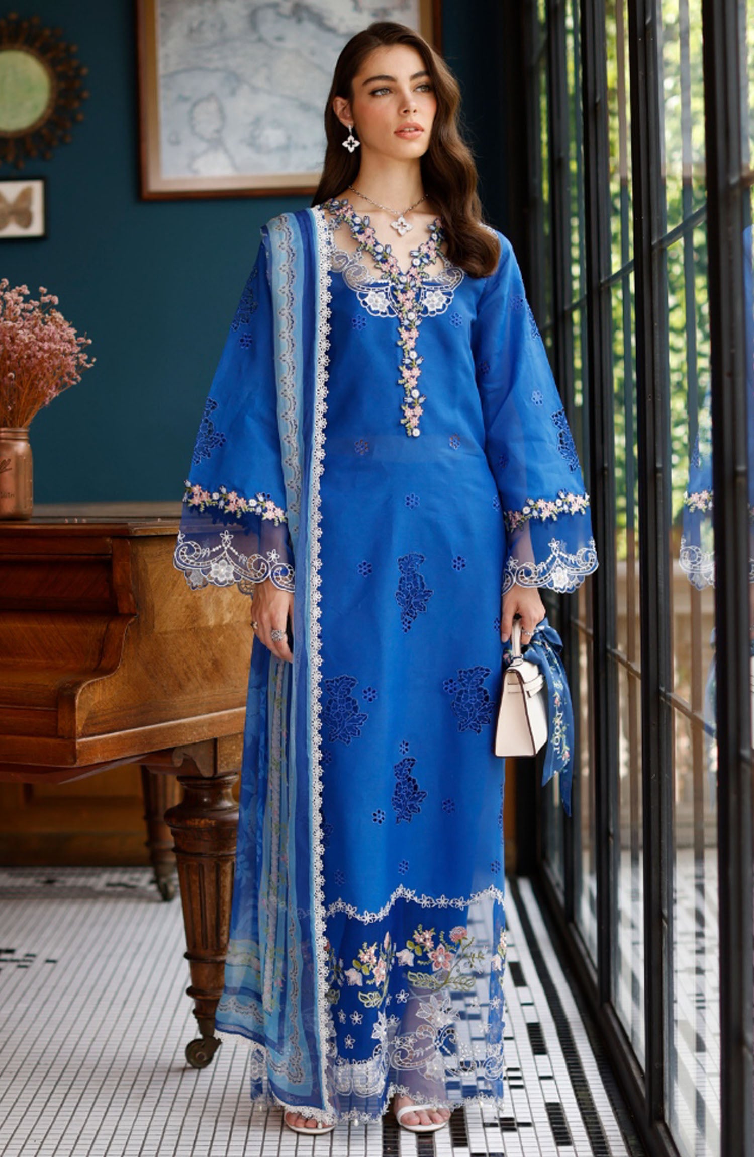 Home Noor by Saadia Asad Embroidered Lawn Unstitched 3 Piece Suit - D-04 - SA25ELSL - Blue - Eid Collection