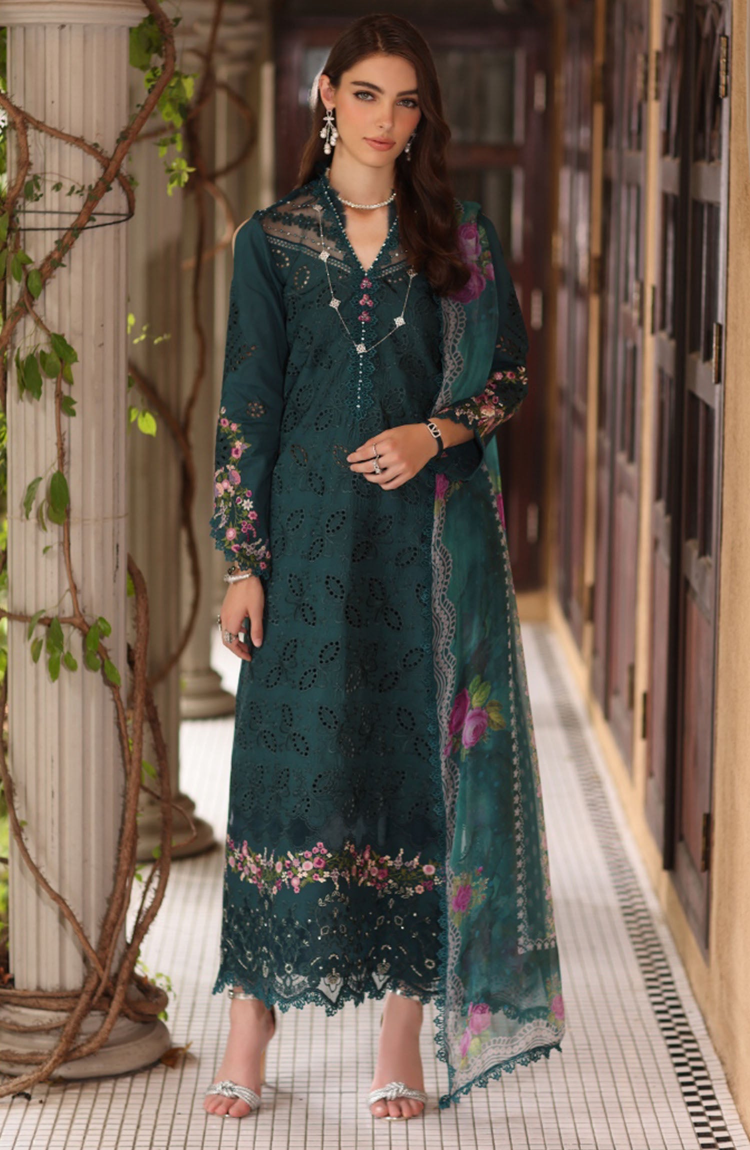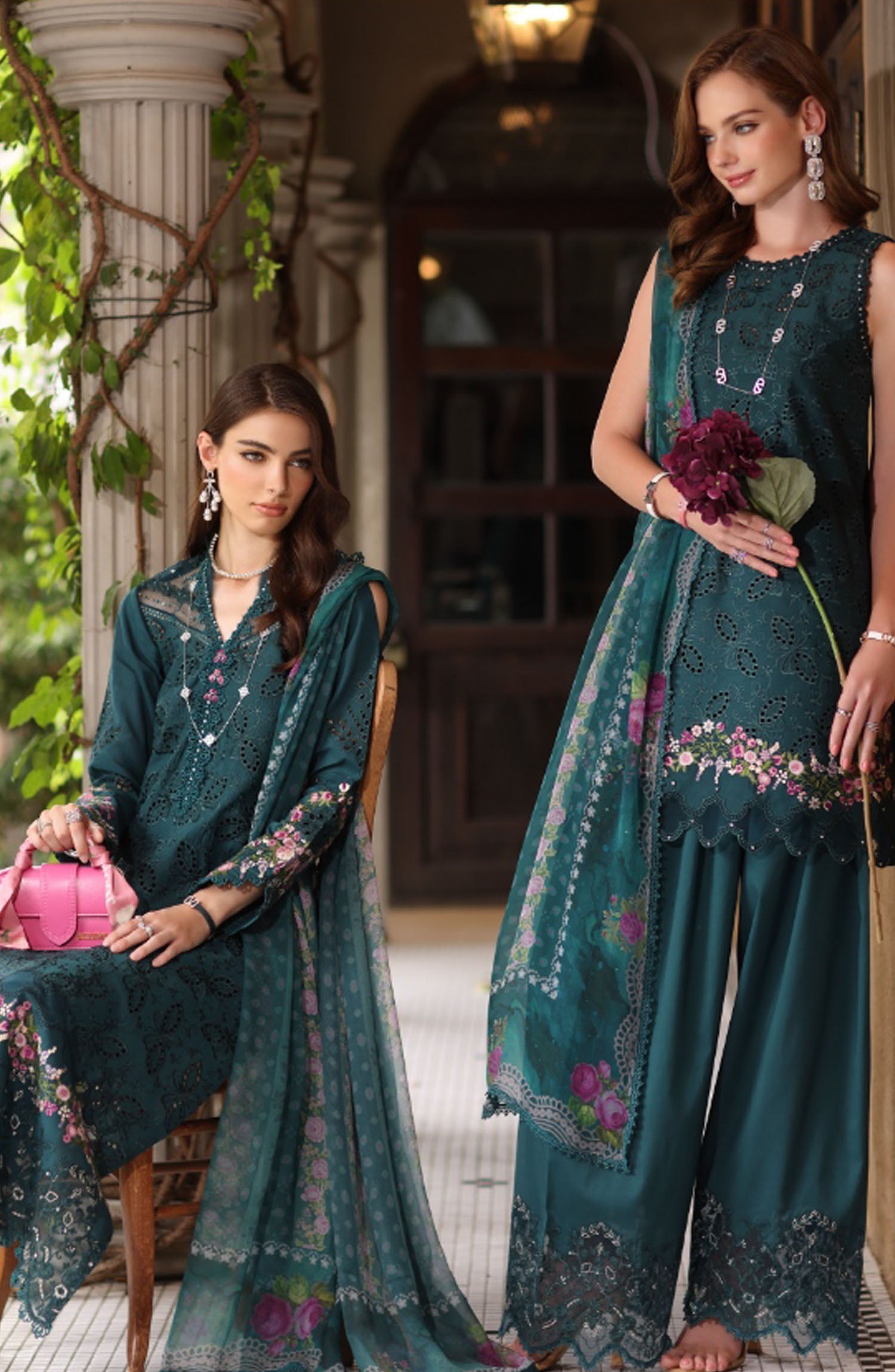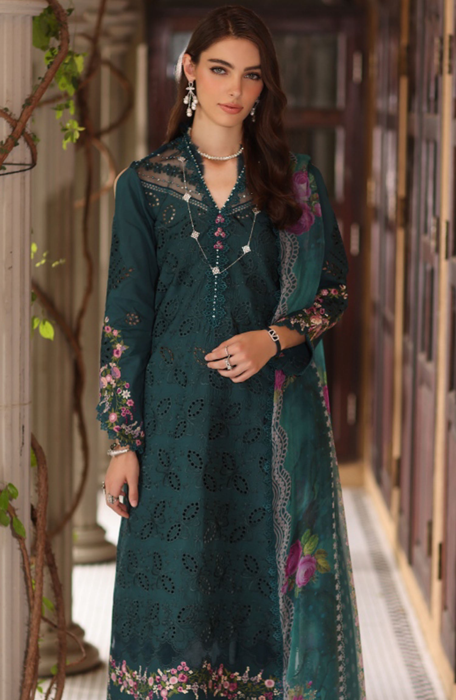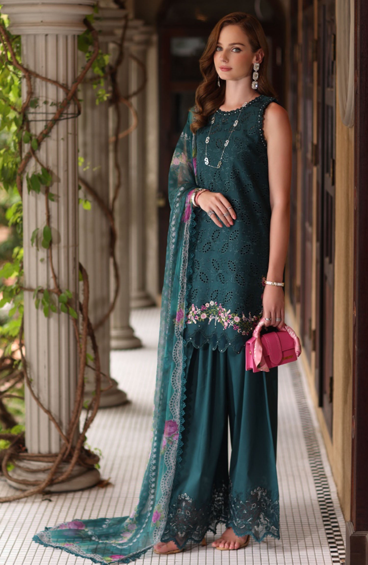 Noor by Saadia Asad Embroidered Lawn Unstitched 3 Piece Suit - D-05 - SA25ELSL - Green - Eid Collection