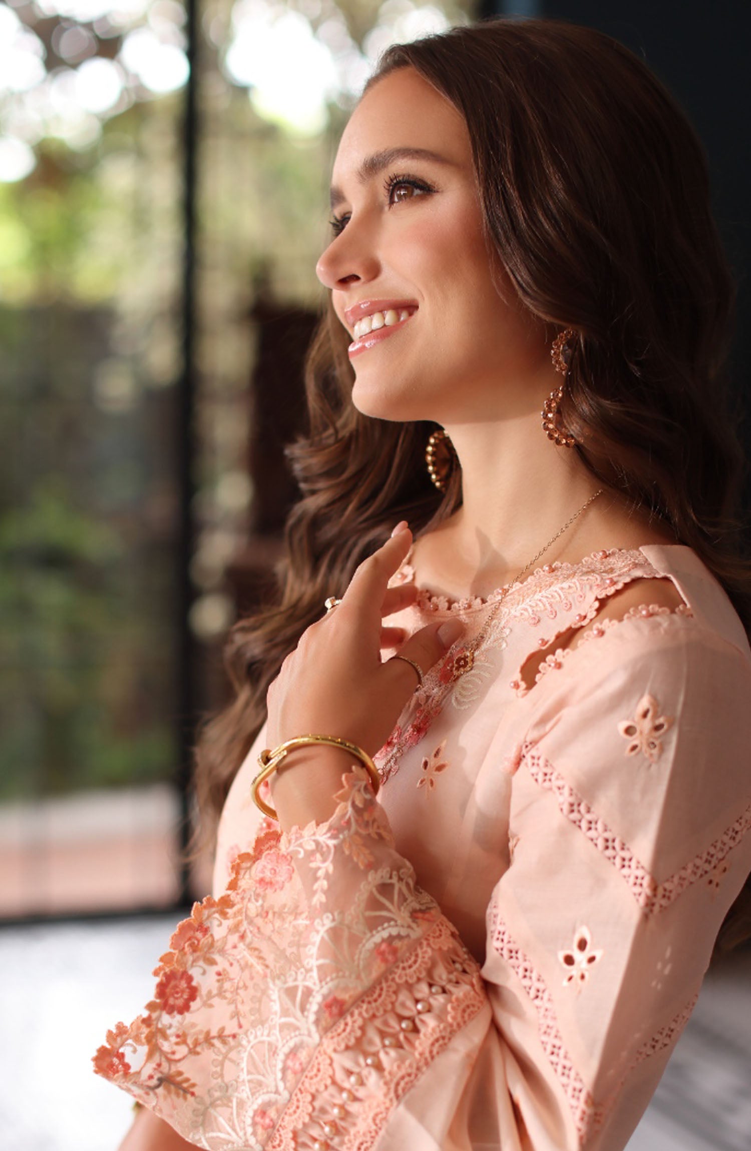 Noor by Saadia Asad Embroidered Lawn Unstitched 3 Piece Suit - D-06 - SA25ELSL - Peach - Eid Collection