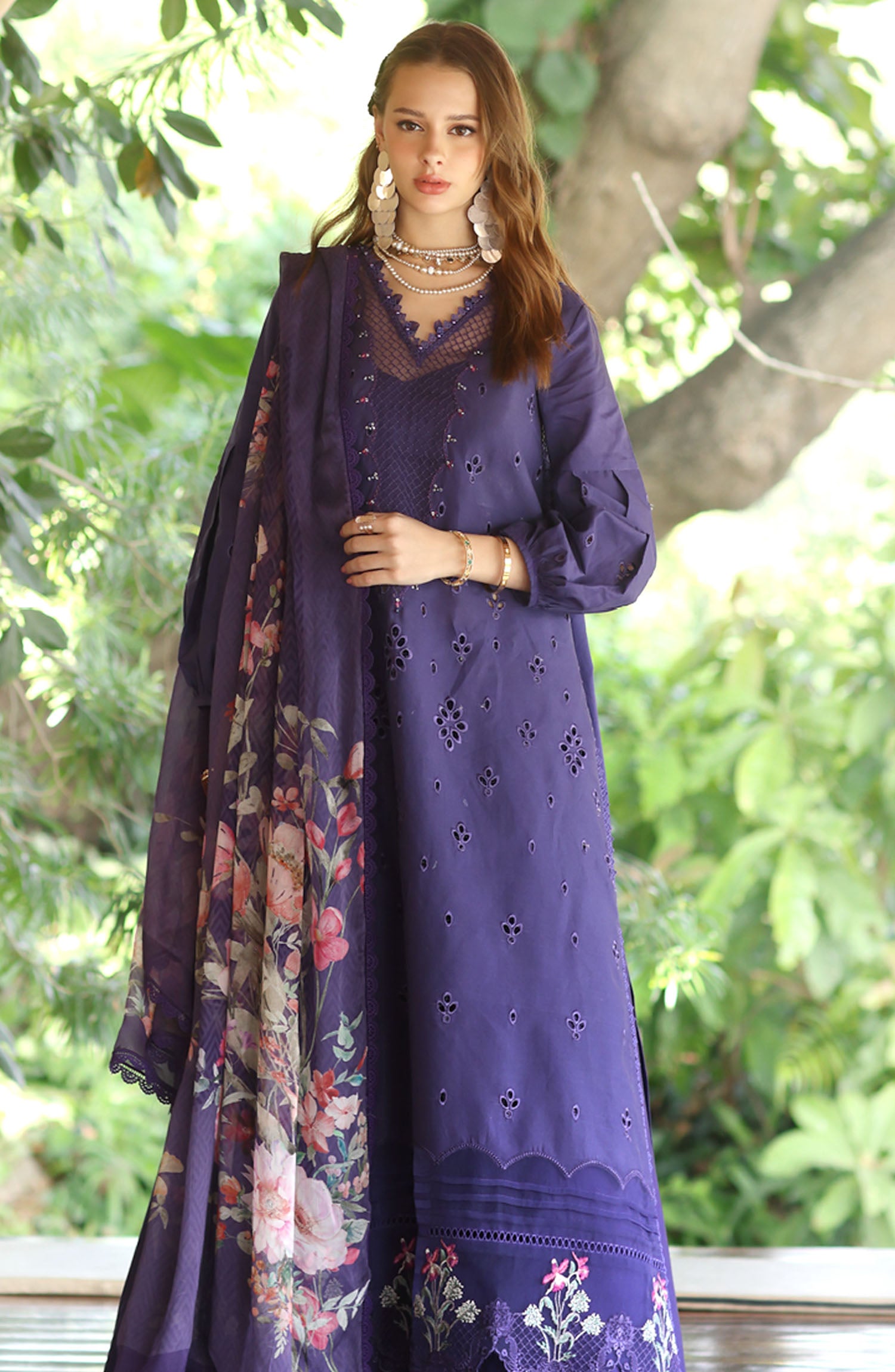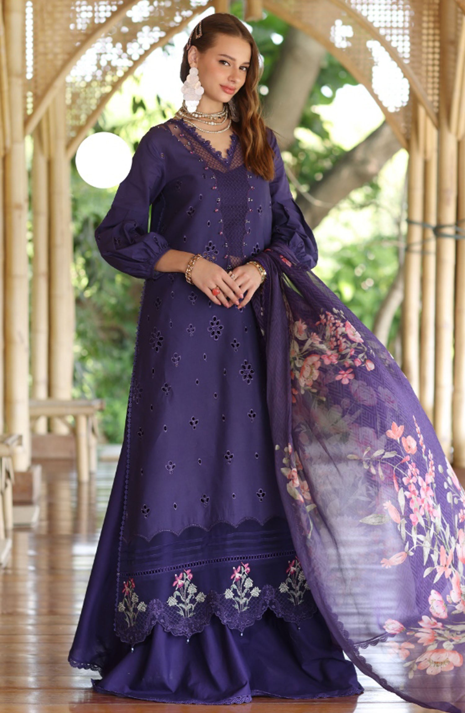 Noor by Saadia Asad Embroidered Lawn Unstitched 3 Piece Suit - D-07 B - SA25NELP - Blue - Summer Collection
