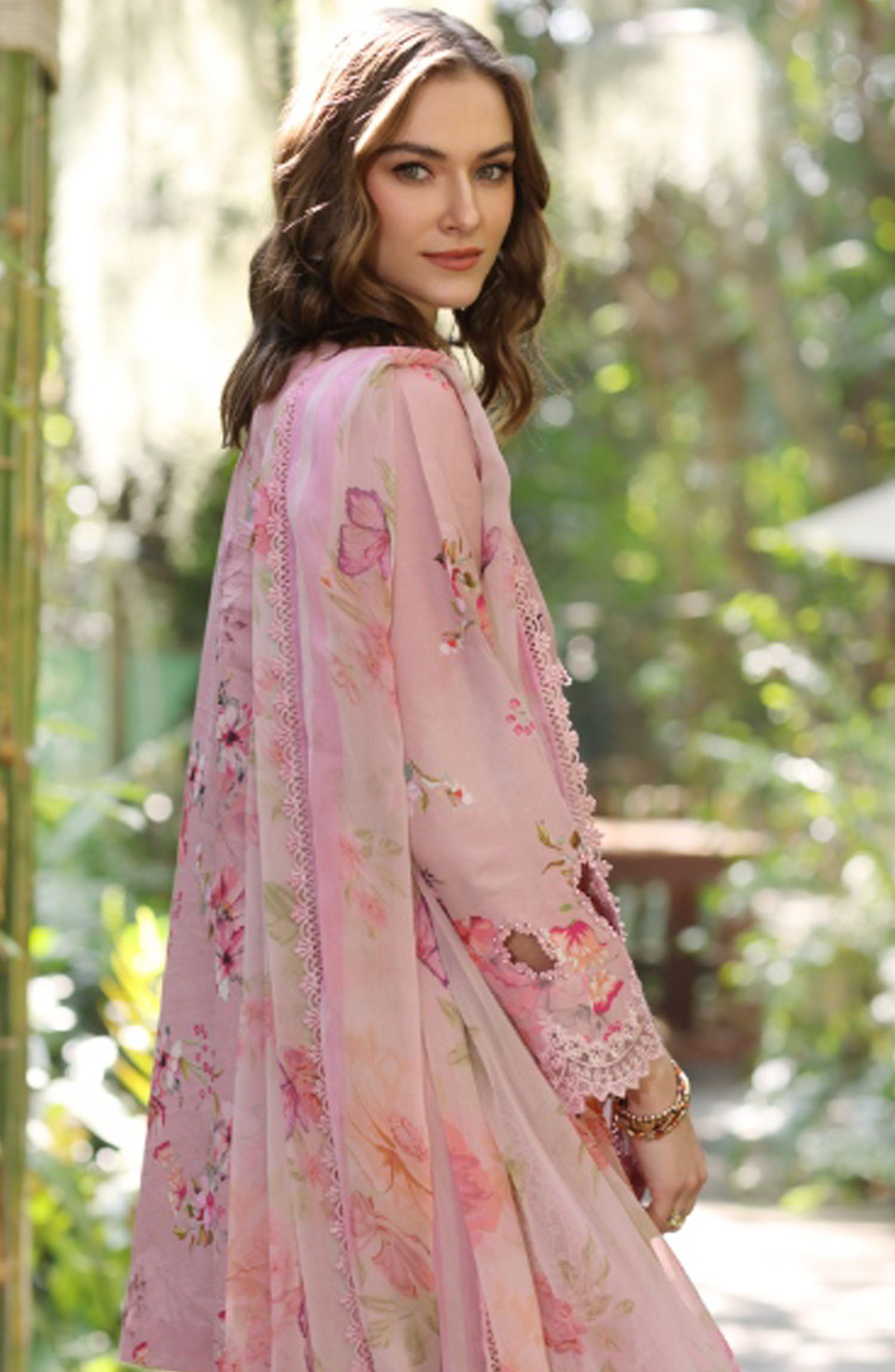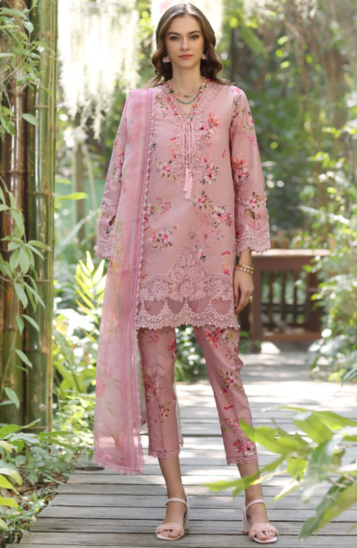 Noor by Saadia Asad Embroidered Lawn Unstitched 3 Piece Suit - D-08 A - SA25NELP - Pink - Summer Collection