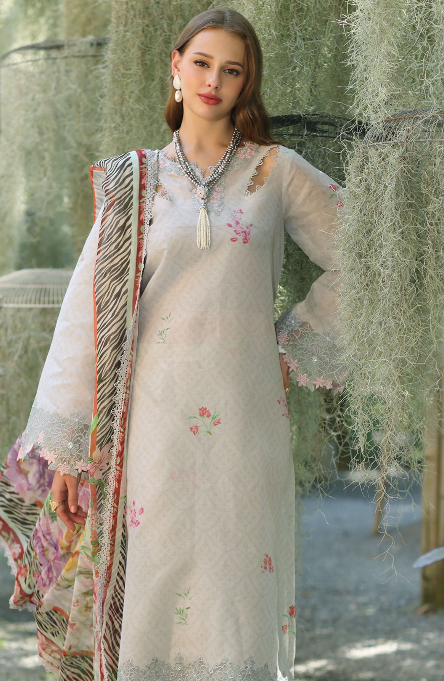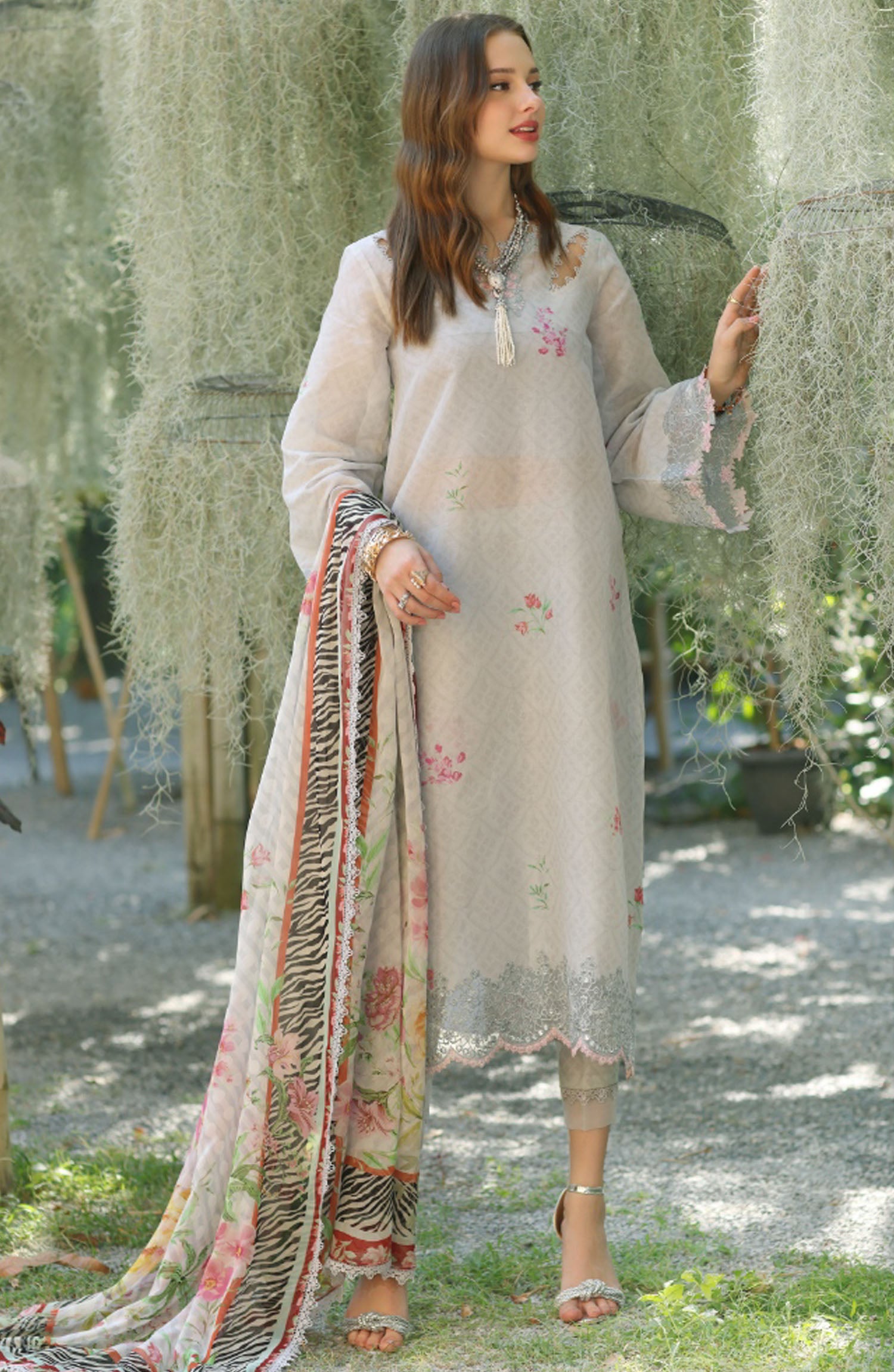 Noor by Saadia Asad Embroidered Lawn Unstitched 3 Piece Suit - D-10 A - SA25NELP - Grey - Summer Collection